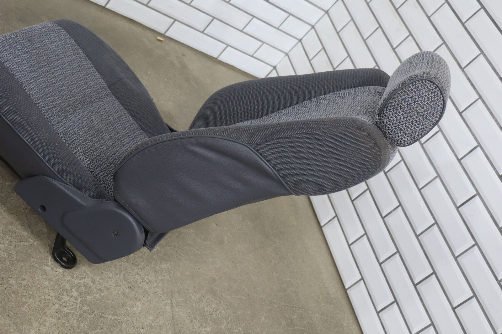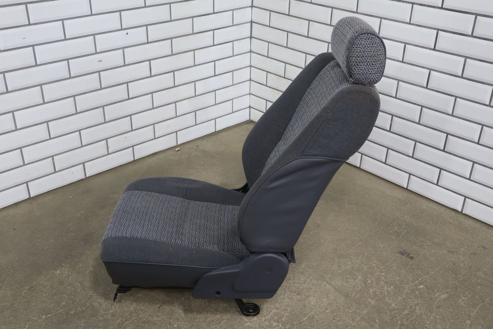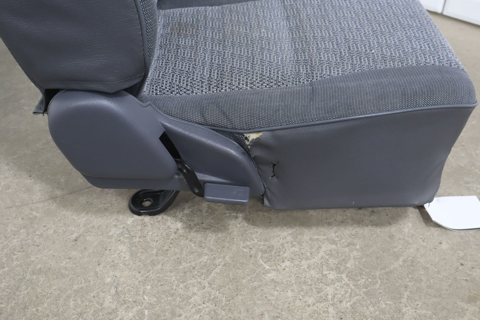 Rh Front Cloth Seat, Blue, Decent Staining Throughout, Decent Lower Bolster Wear, Mild Fade, Manual Adjustments