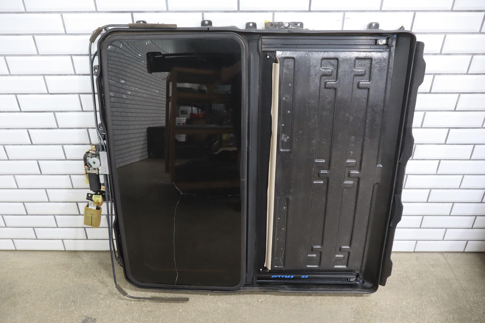 Marco de techo corredizo, incluye deslizadores, motor, vidrio del techo (el vidrio está roto), parasol, probado, funciona correctamente