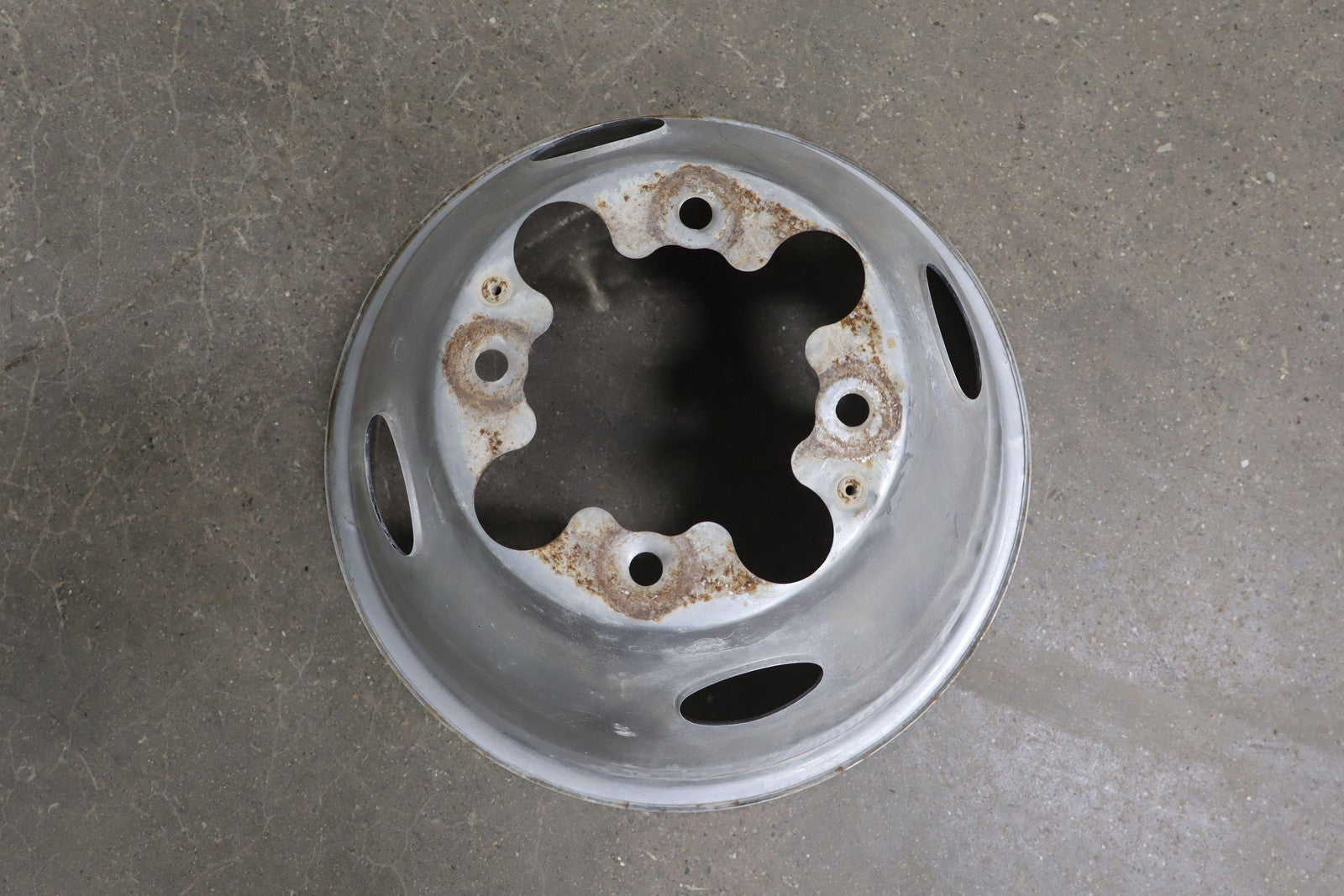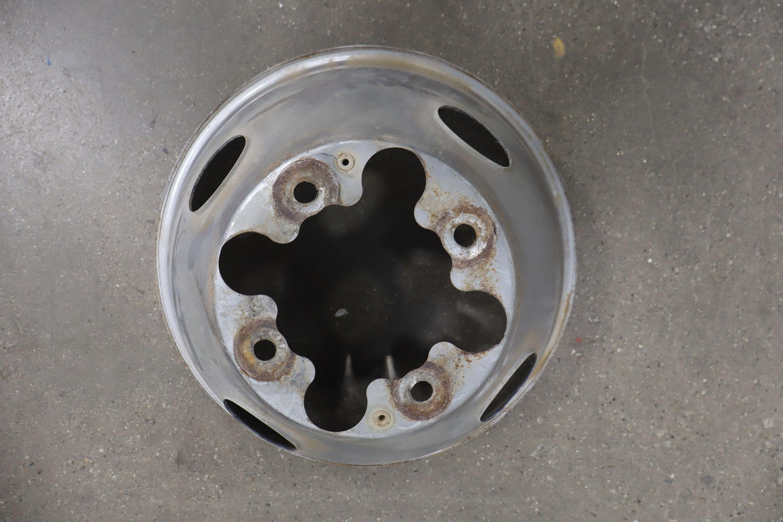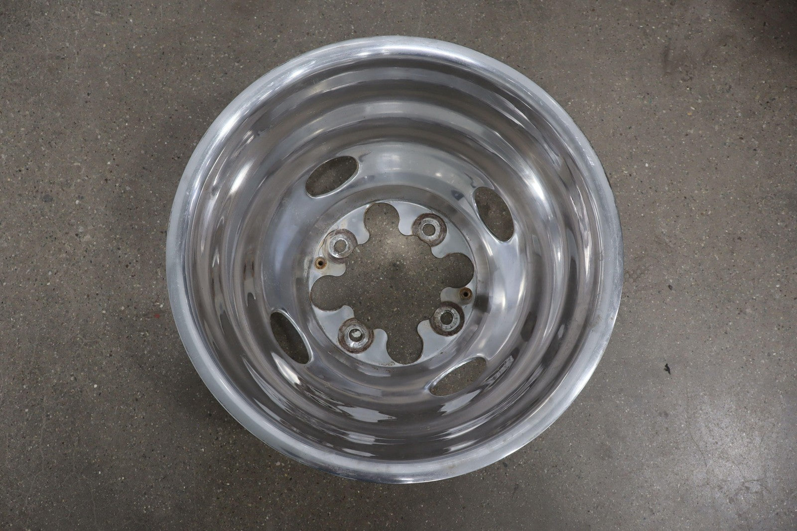 Important notes: Dually Wheel Set (12pc), 16x6.5 Steel Wheels, Includes 4 Chrome Wheel Caps, All Spun True, Some Weathering To Chrome