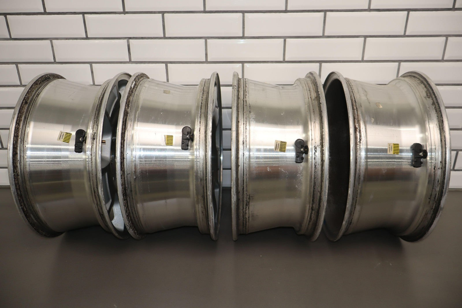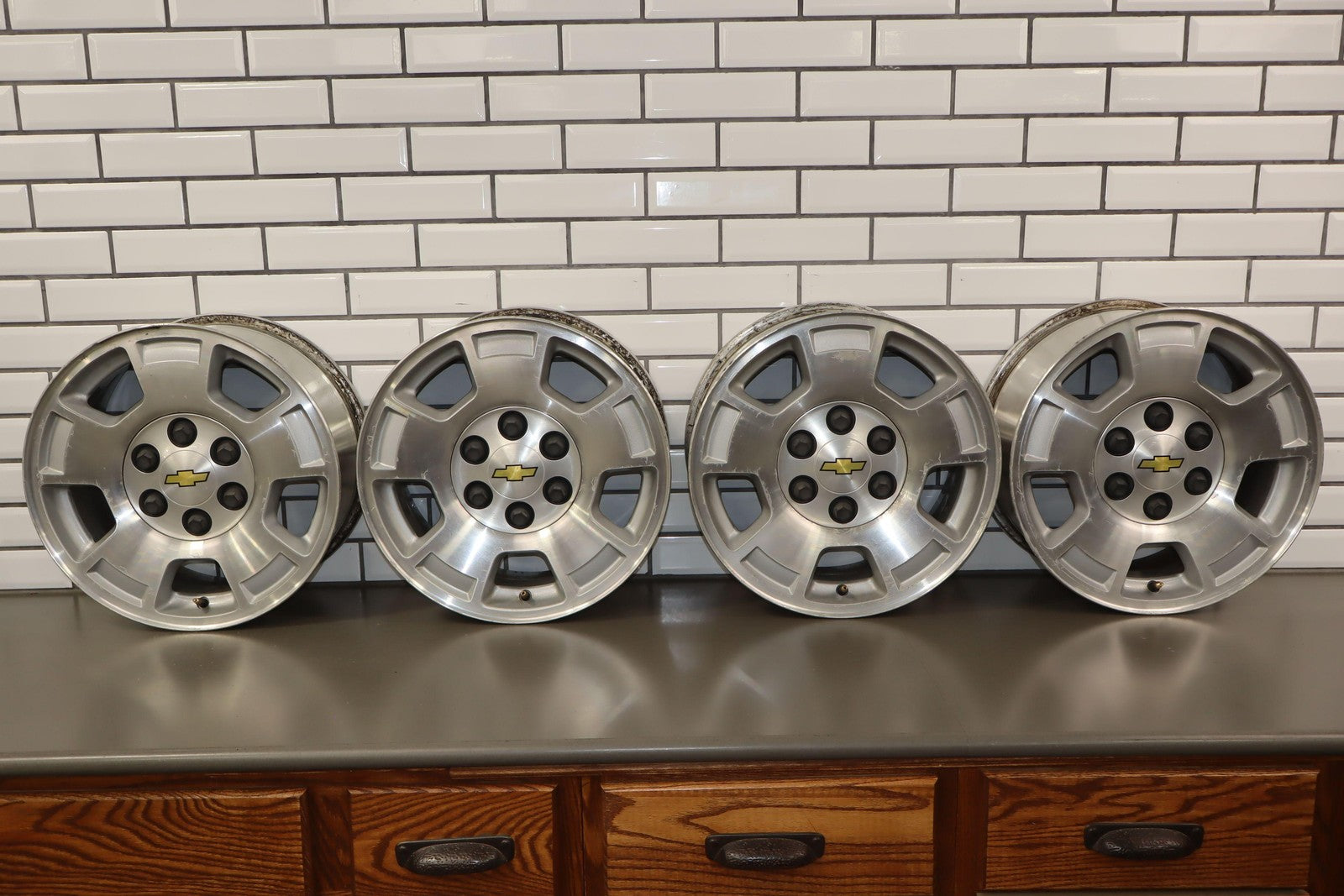 Set Of 4 Wheels & Center Caps, 17x7.5 Single Grooved 5 Spoke (p46), Mild Corrosion To Faces, All Spun True