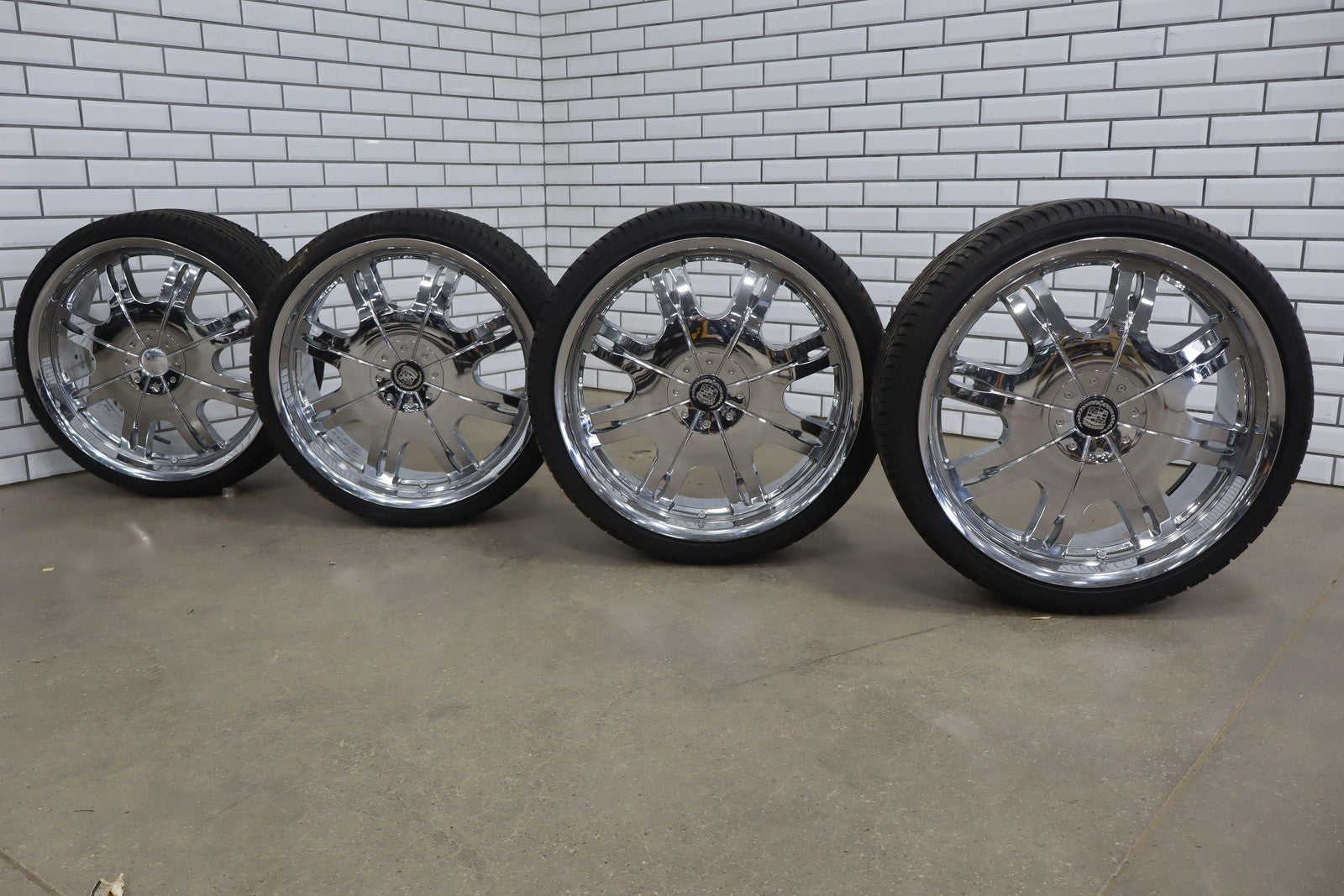 Set Of 4 22x8.5 Tsw Aftermarket Wheels-fullway Hp108 255/30zr22 Tires, 9-9-9-9/32, Dot 05/24, Chrome Peeling On Barrels