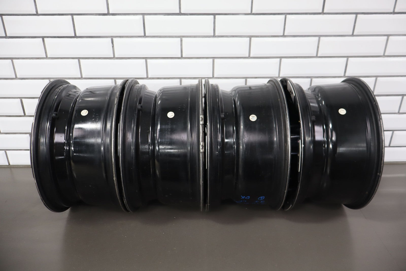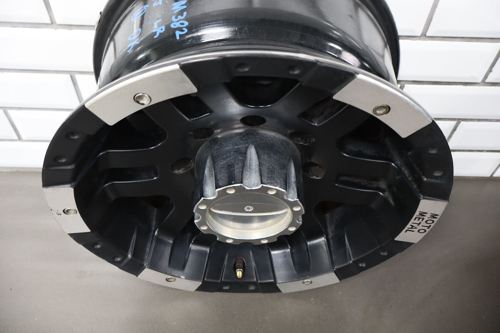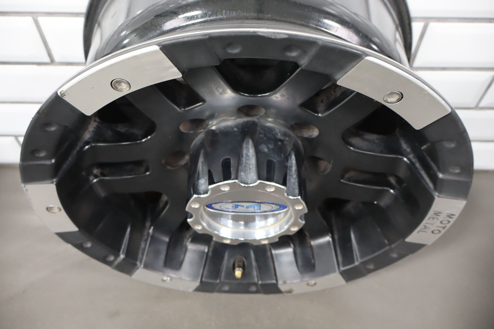 Set Of 4 Aftermarket Wheels, 16x8 Metal Moto M0951, Light Scratches, Mild Weathering, Some Brake Dust Staining, All Spun True