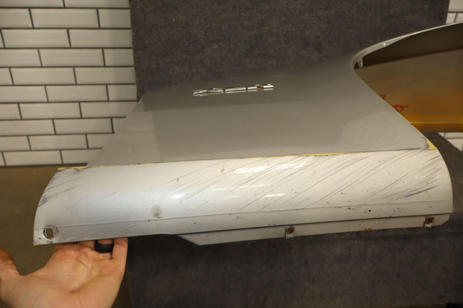 Rh, Light Platinum (67u), Heavy Scrapes At Bottom Of Dogleg, Decent Scratches Across Top