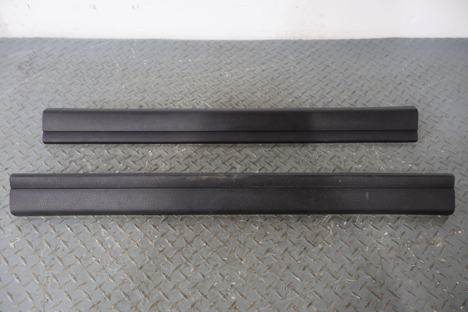 Par izquierdo y derecho, placas de umbral interiores, negro (bw), rayones/rayones leves, ambos montados de forma sólida
