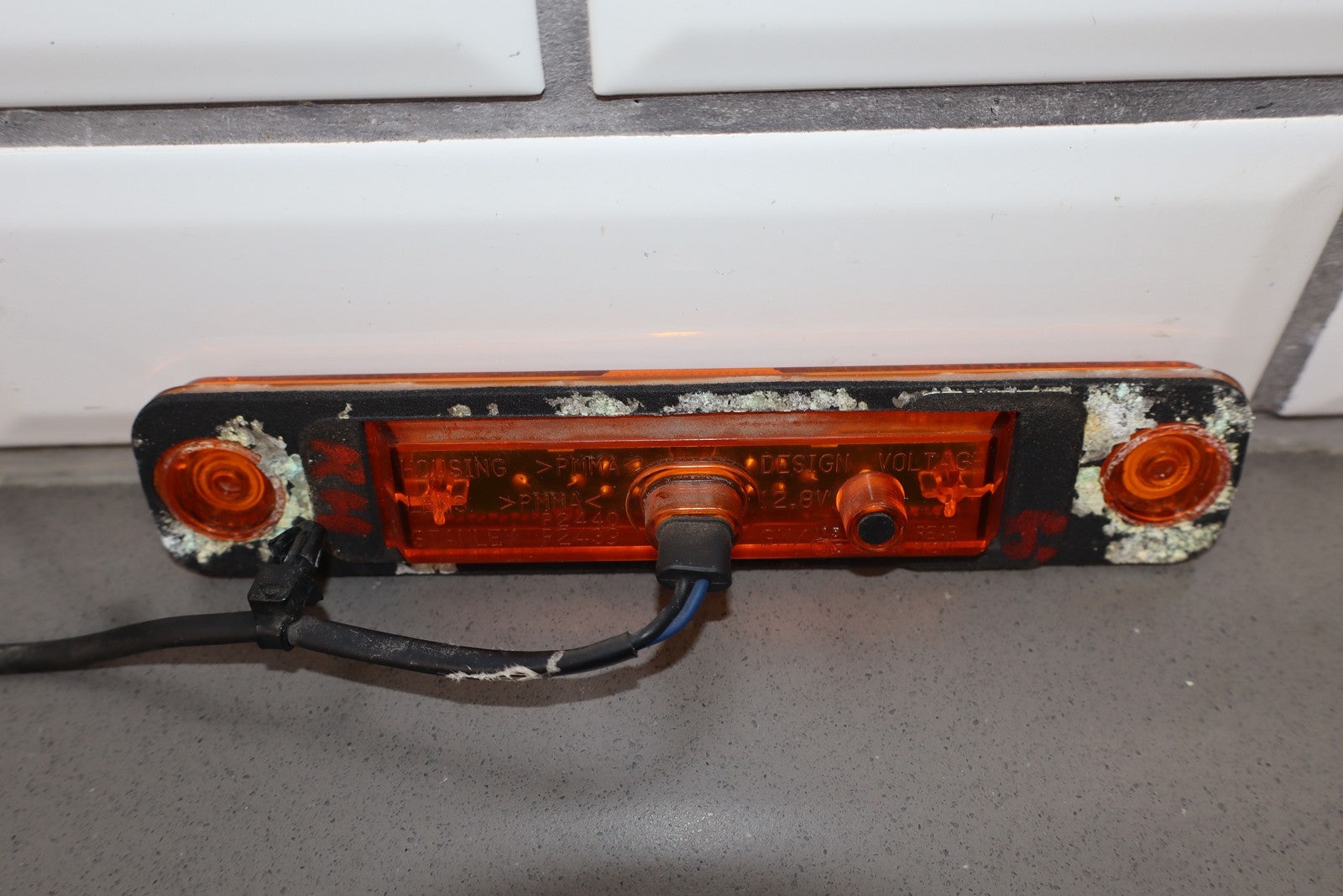 Rh Side Marker (hood Mounted), Clean Amber Lens, Includes Pigtail, Functions Properly