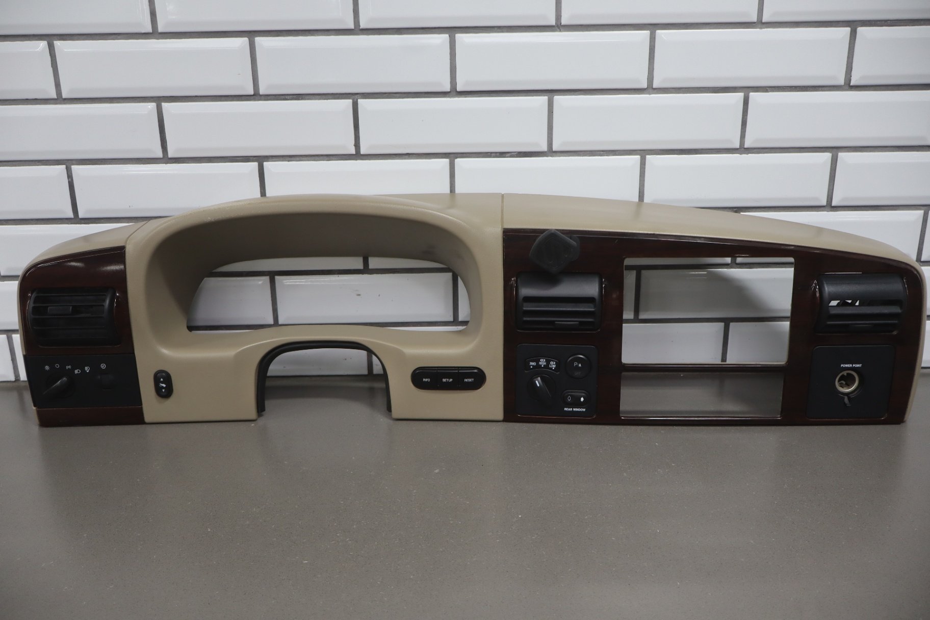 05 to 07 Ford F250 F350 SD Dash Cluster Radio Bezel Trim Panel Wood Grain OEM