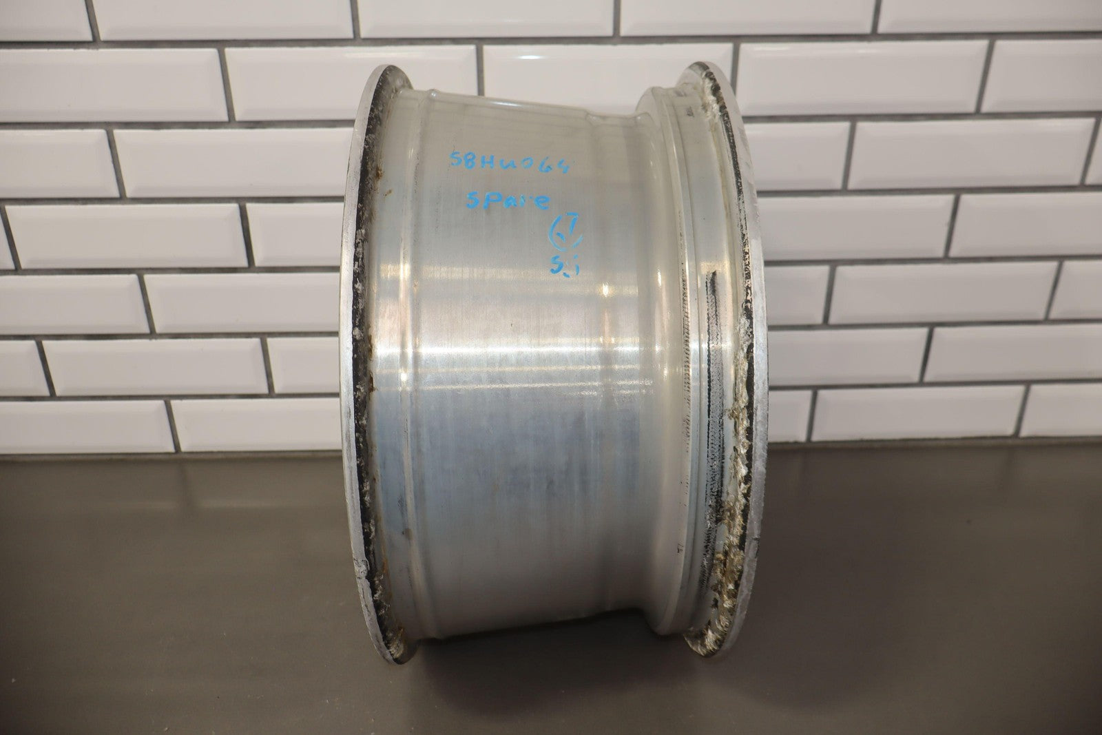 Spare, 17x8.5 Polished 7 Spoke Wheel (q9w), Decent Corrosion To Face/barrel, No Center Cap, Spun True