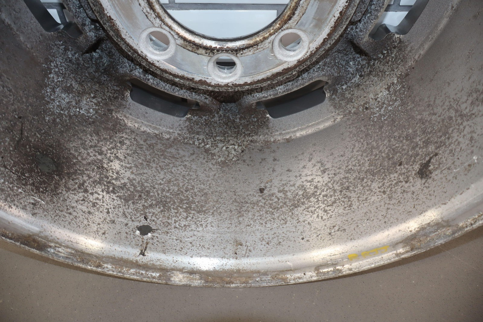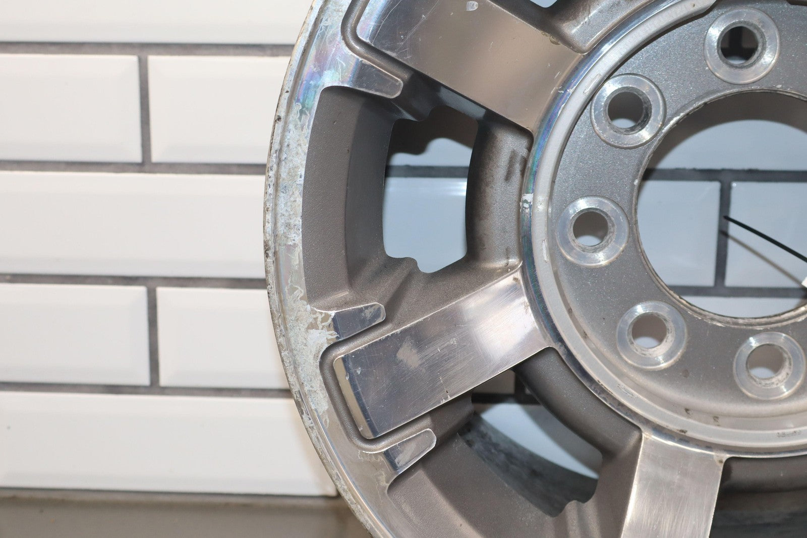 Rh Rear, 17x8.5 Polished 7 Spoke Wheel (q9w), Decent Corrosion To Face/barrel, No Center Cap, Spun True