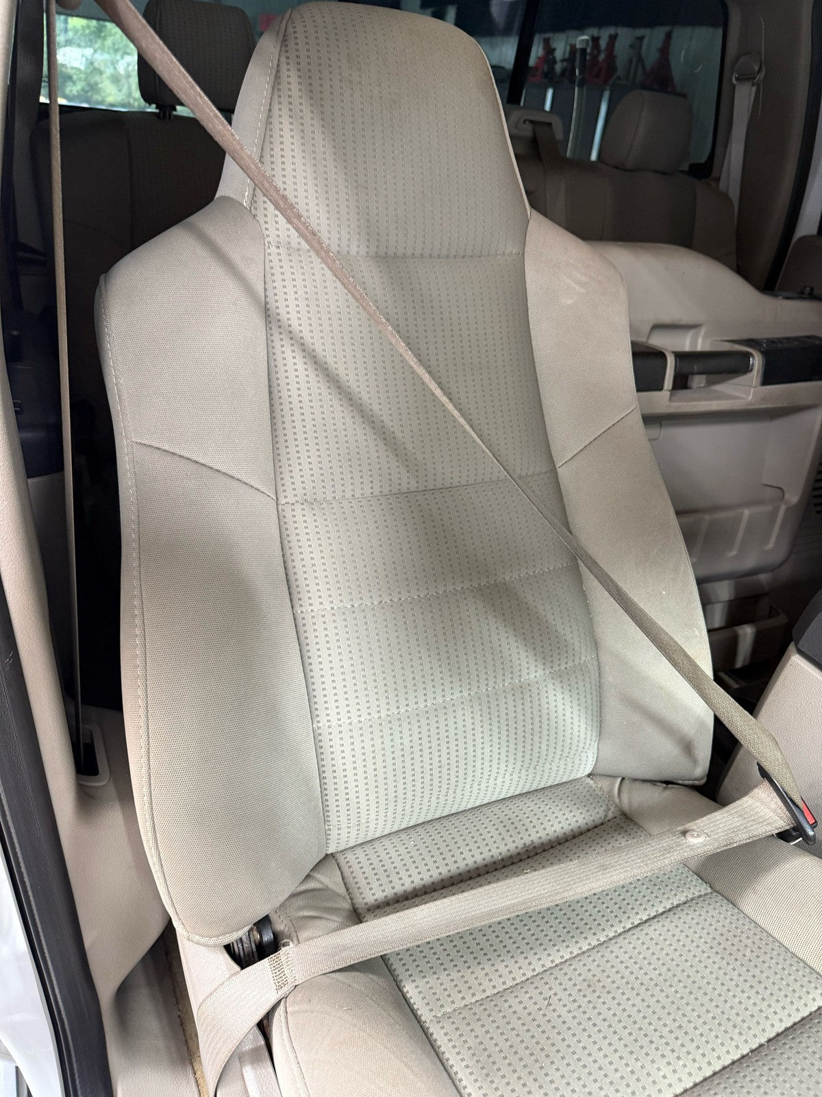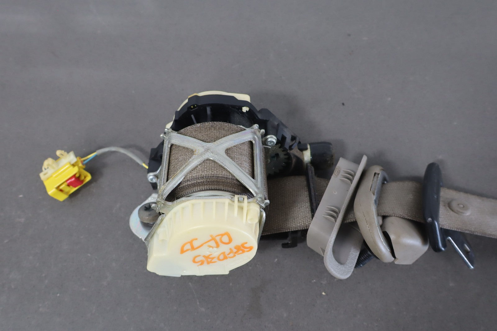 Rh Front Retractor, Crew Cab & Bucket Seat, Tan (2s), Mild Staining, Light Wear, Retracts Properly