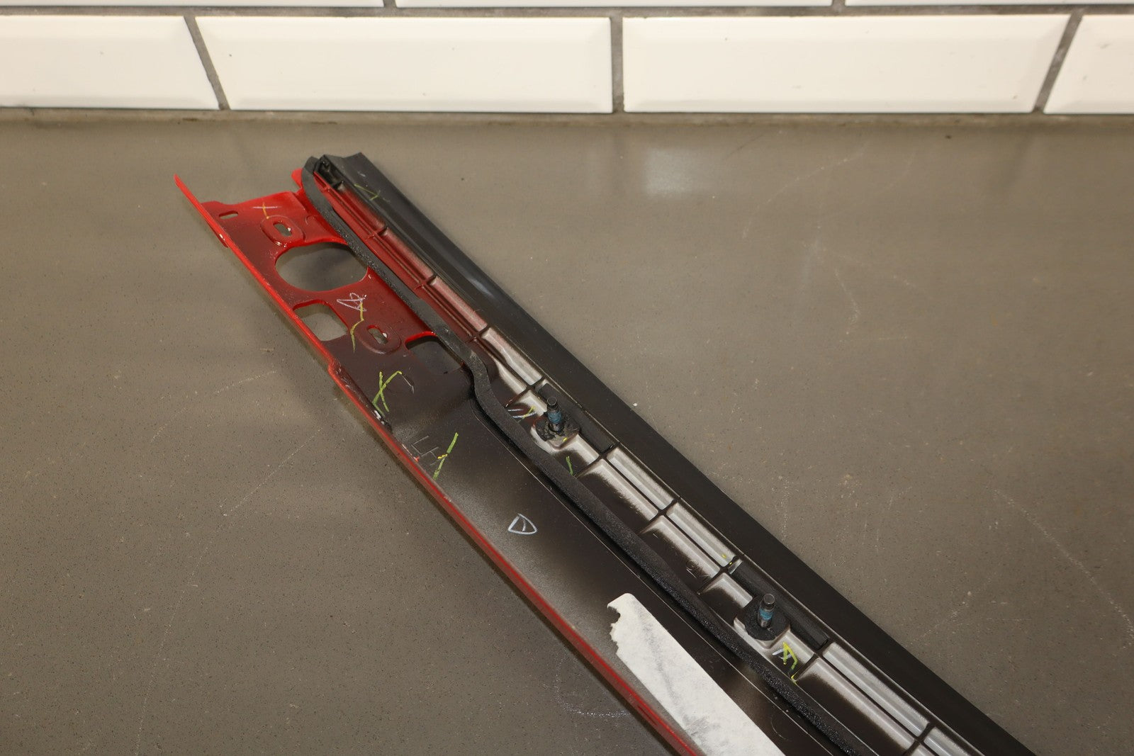 Lh Convertible Top Belt Moulding, Red Hot (g7c), Light Sun Fade, Minor Scuffs/scratches