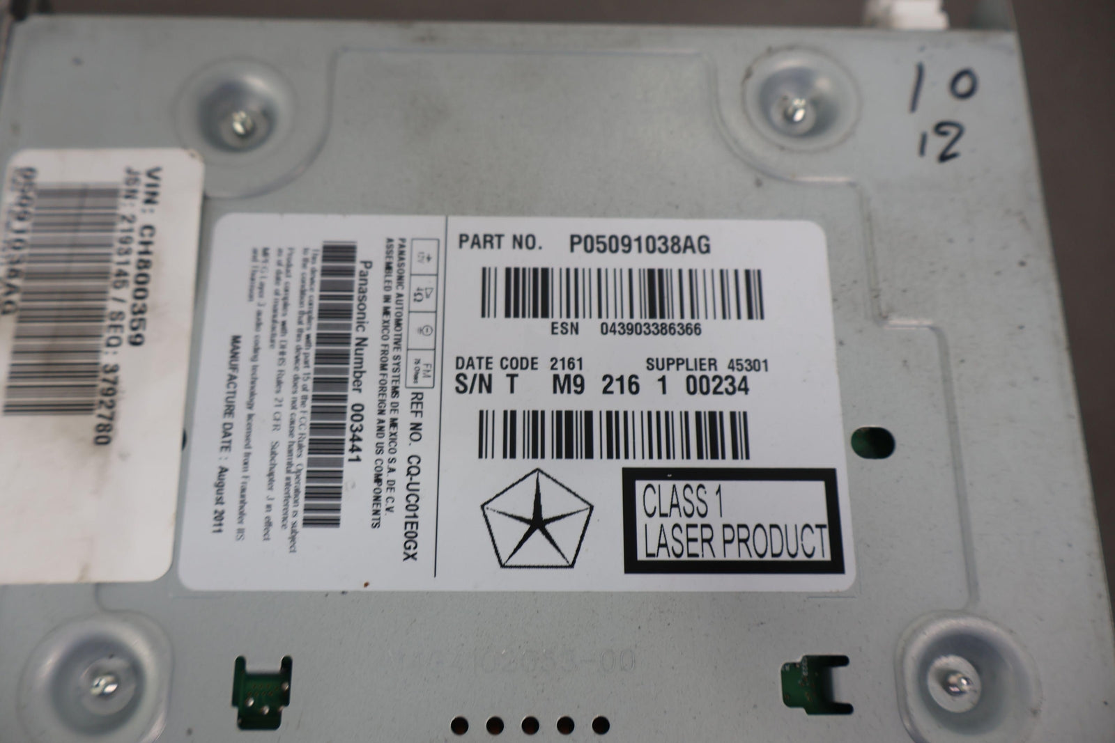 Am-fm-cd-dvd-mp3-wma-navigation Radio Receiver (opt Rb5), Tseted, Functions Properly, 5091038ag