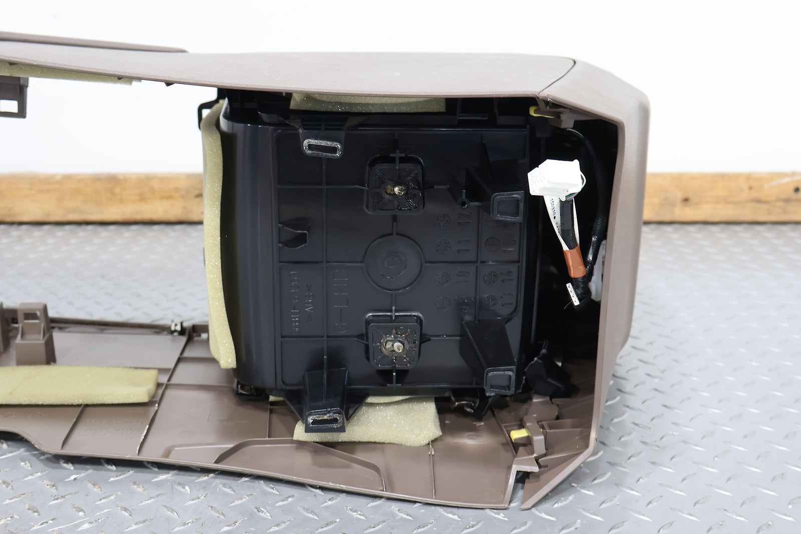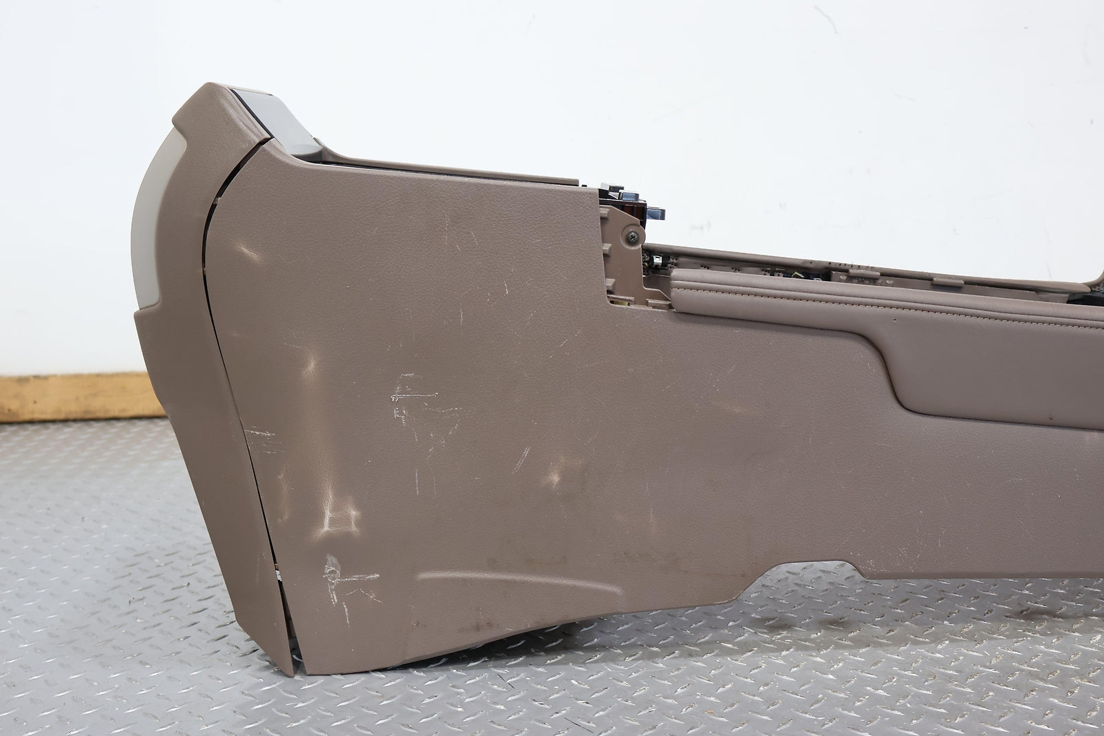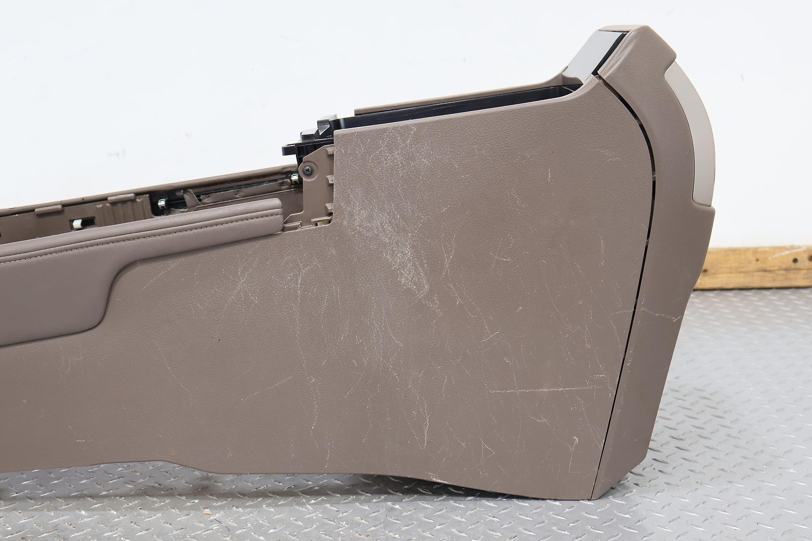 Bare Floor Console, Sepia (lb40), Includes Rear Ac Controls, Mild Staining, Decent Scuffs On Rh Side, Mounted Solid