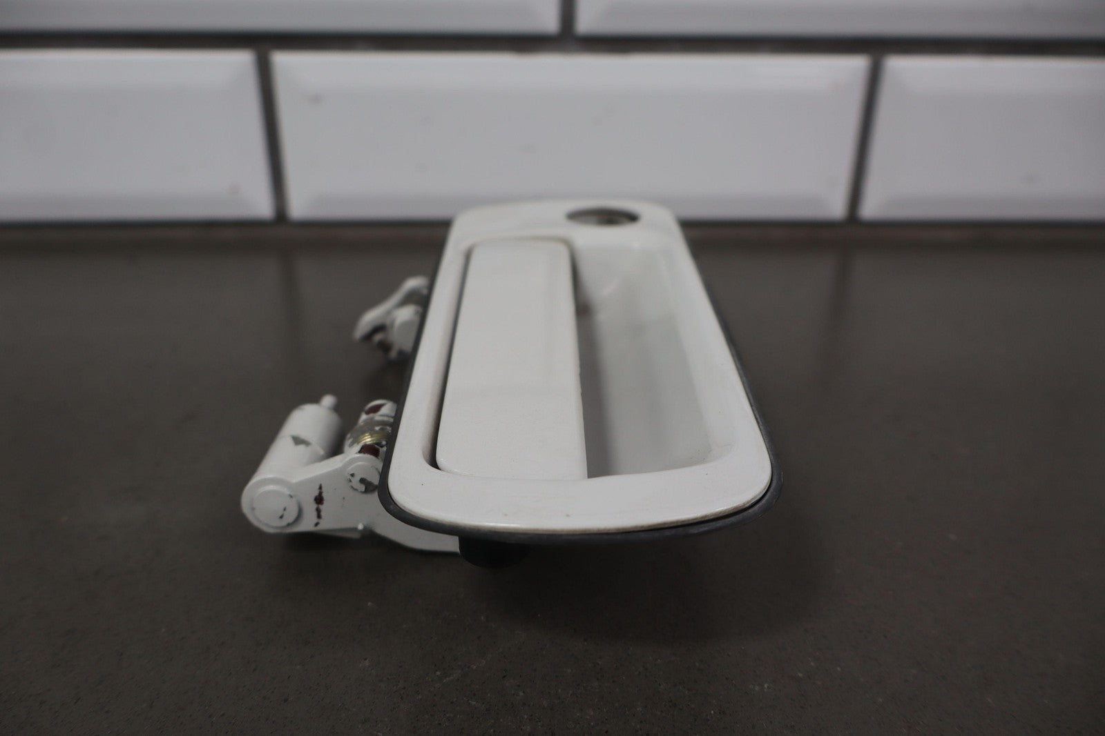 Lh-rh Pair, Outer Door Handles, Super White (040-respray), No Lock Cylinders, Couple Paint Chips, Both Function Properly