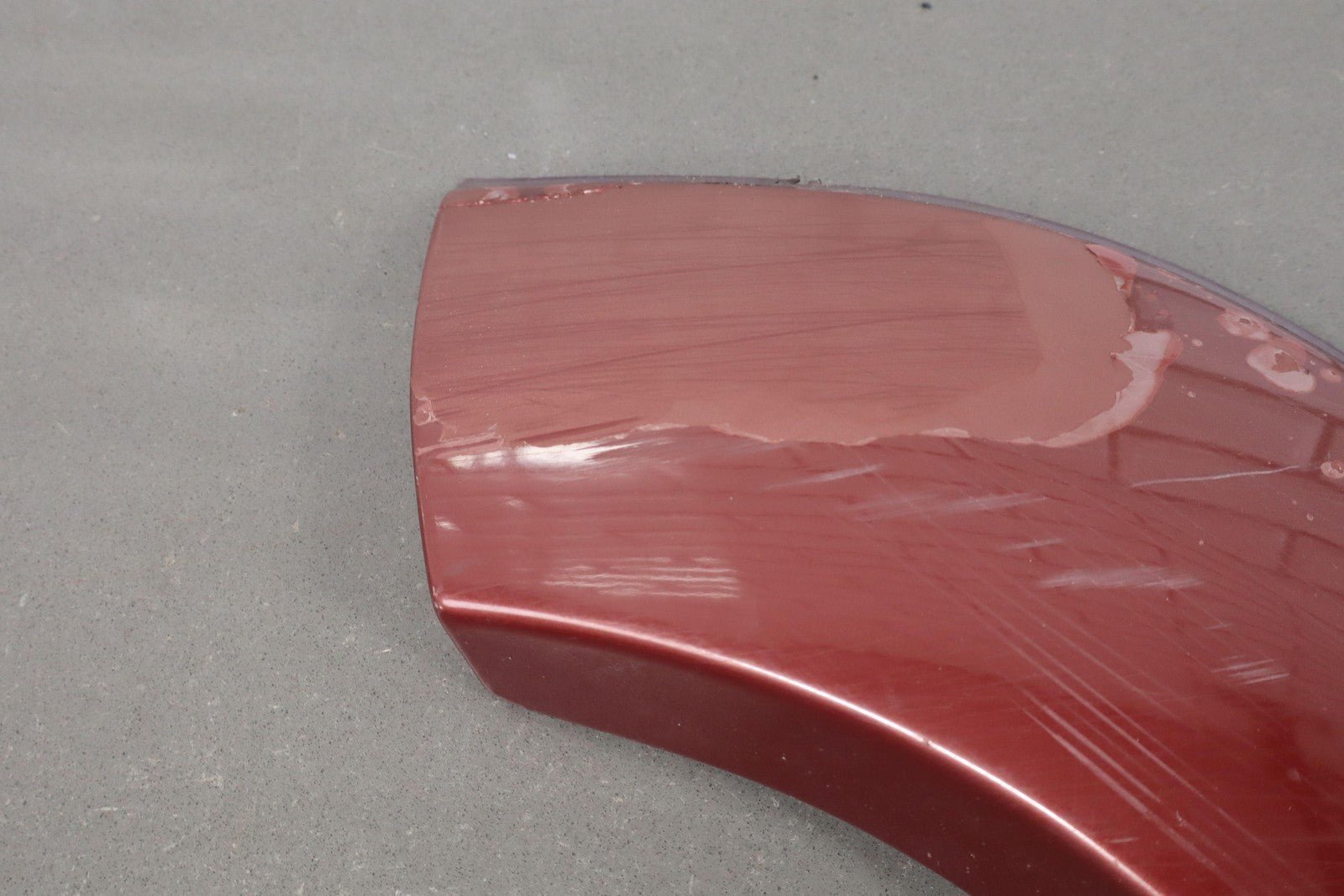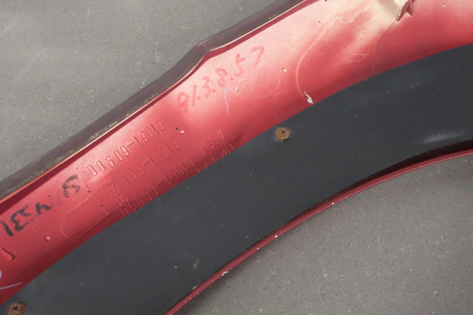 Trasero derecho, rojo perlado medio (3h4), capa transparente descascarillada, salpicada de impactos de piedras, múltiples raspaduras/arañazos, 61061-60010