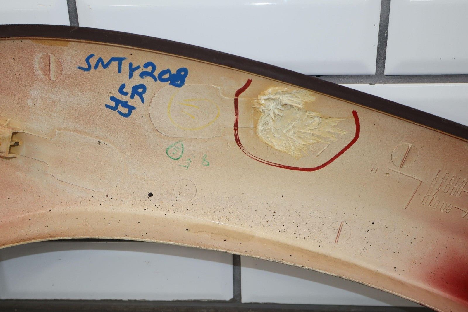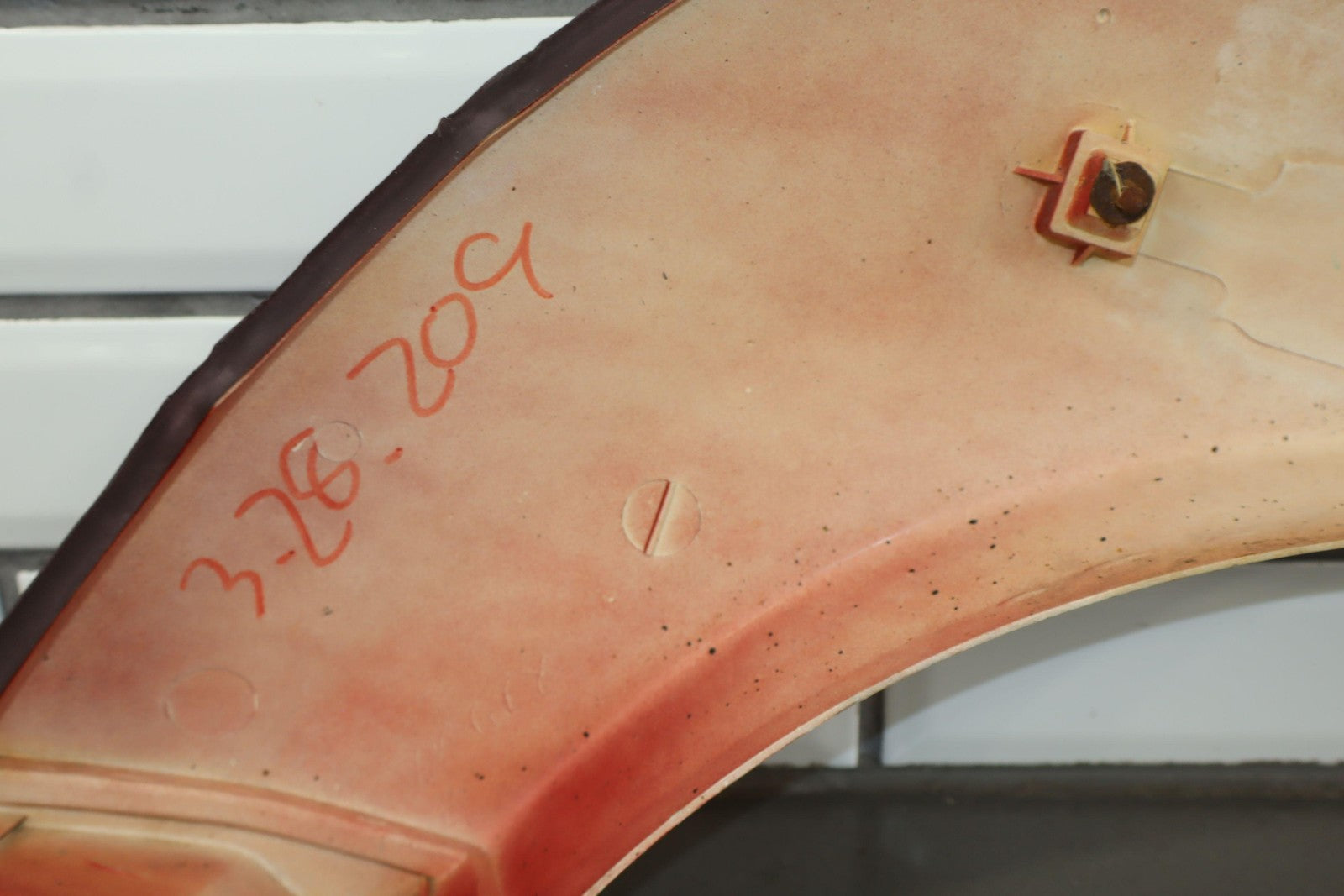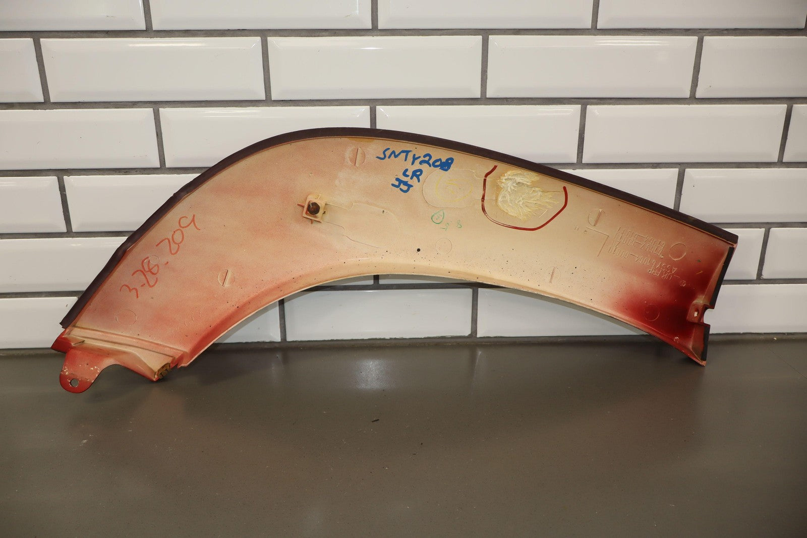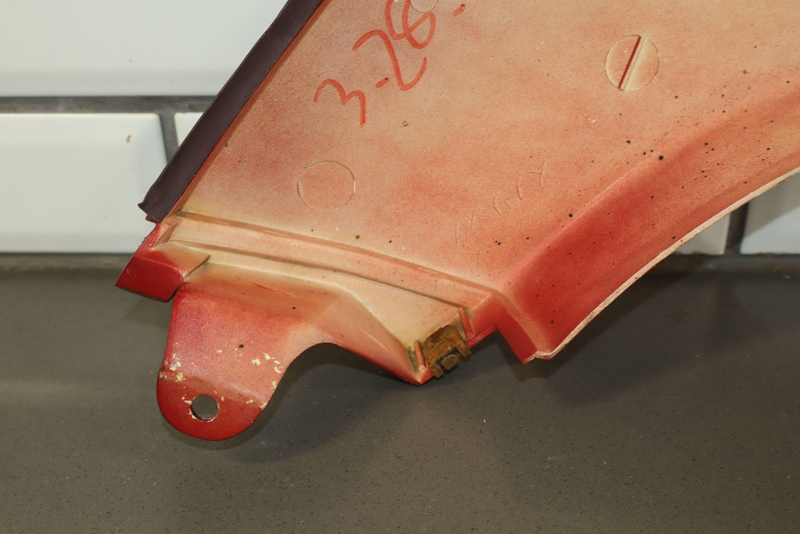 Lh Rear Flare, Medium Red Pearl (3h4), Multiple Light Scratches, Missing Mount (red), Sun Fade