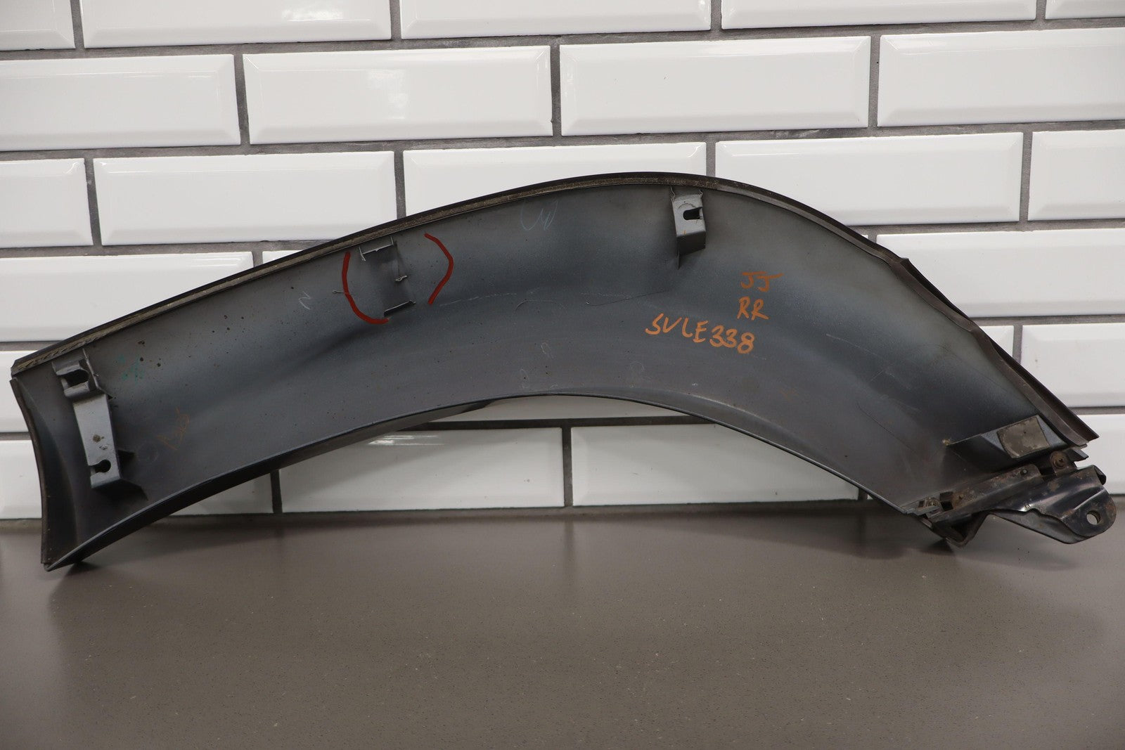 Rh Rear Wheel Arch, Dark Gray, Multiple Knicks/scratches Throughout, 1 Missing Tab (red)