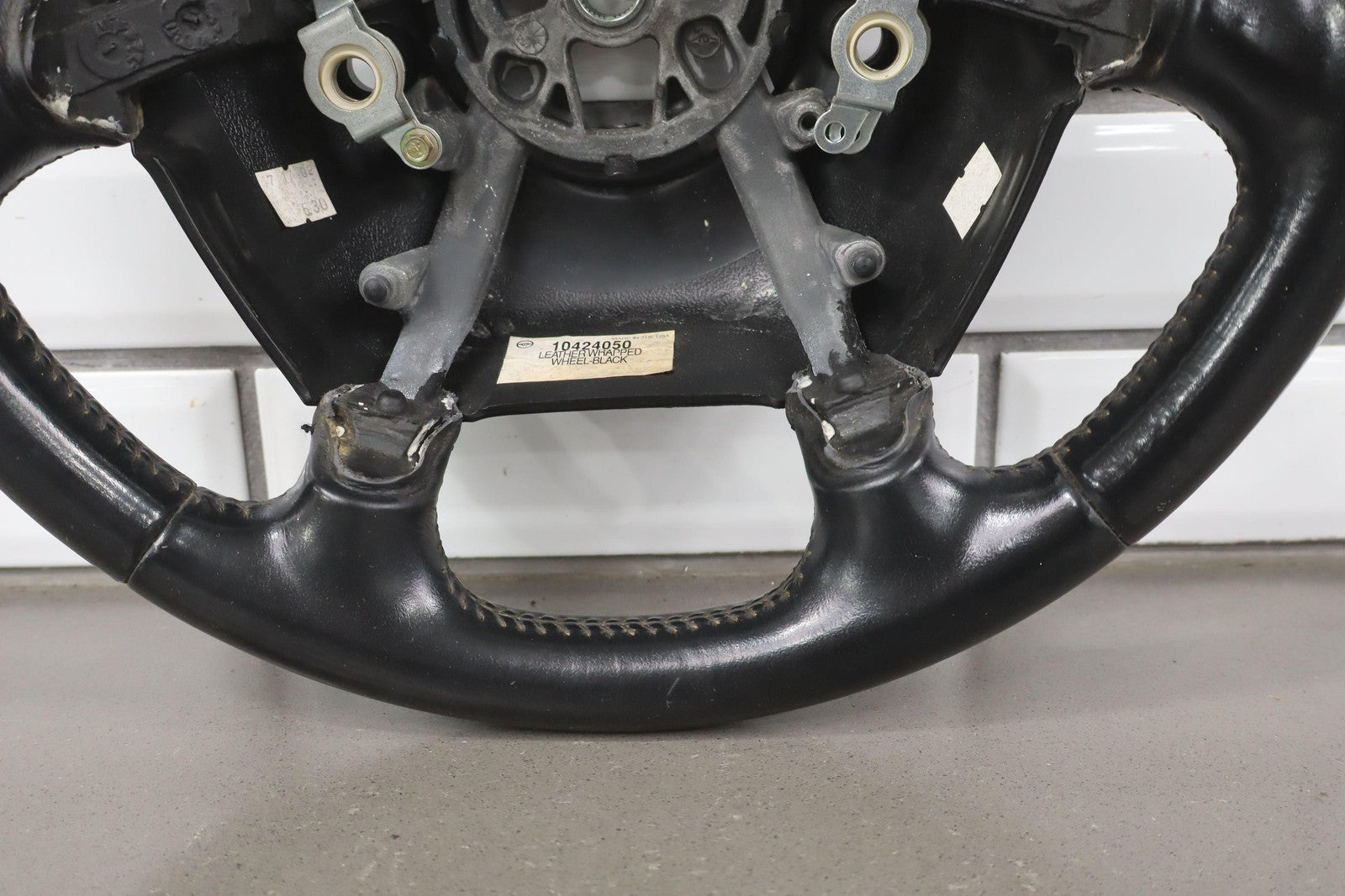 Leather Steering Wheel, Black (193), Decent Wear Throughout, Multiple Heavy Scrapes