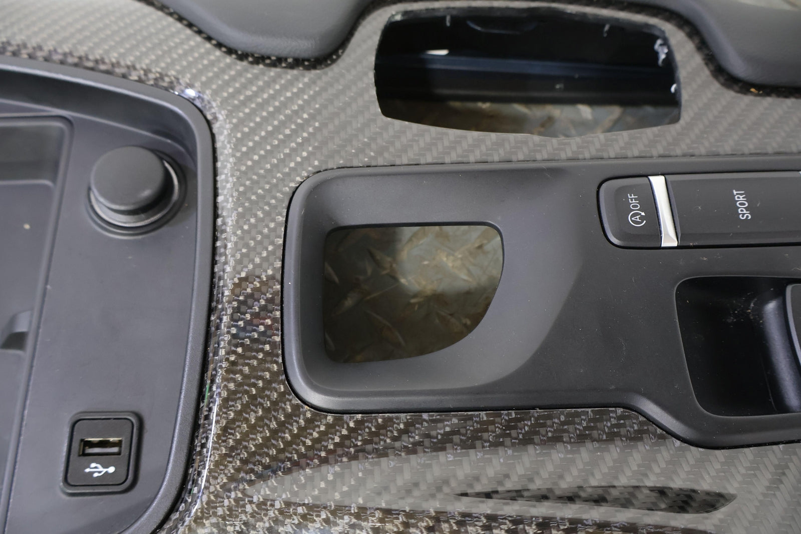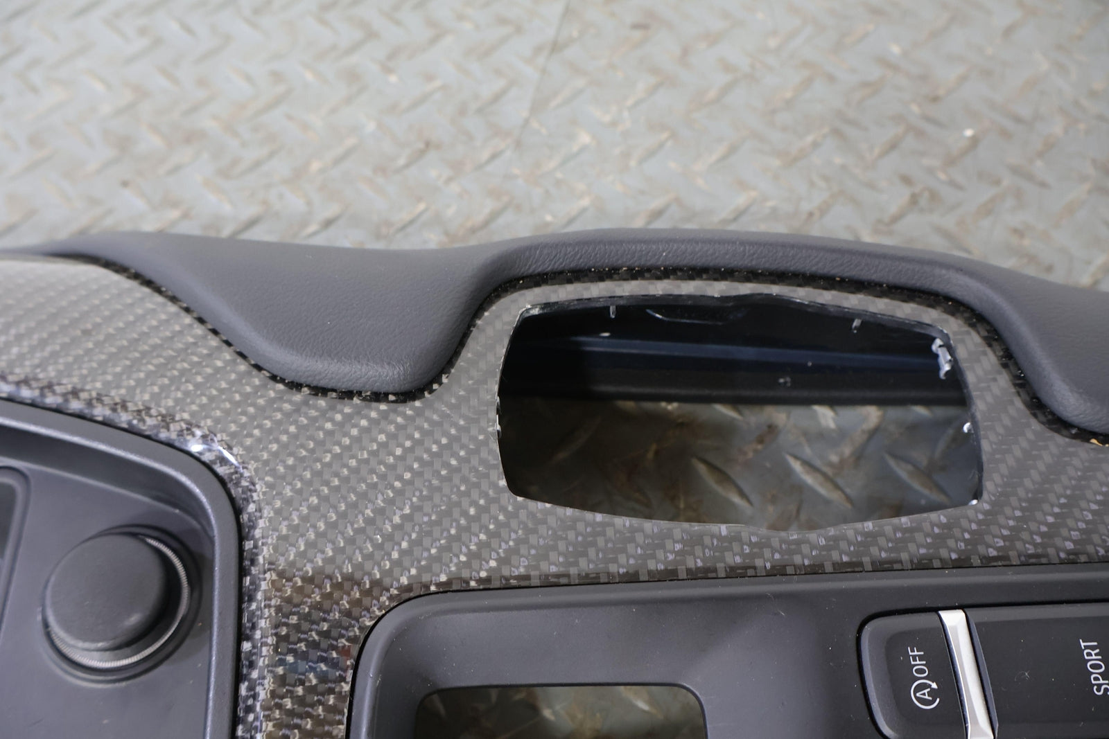 Carbon Fiber Upper Console Trim, Includes Front Cubby-park Brake Switch W/bezel, Minimal Scuffs, Mounted Solid