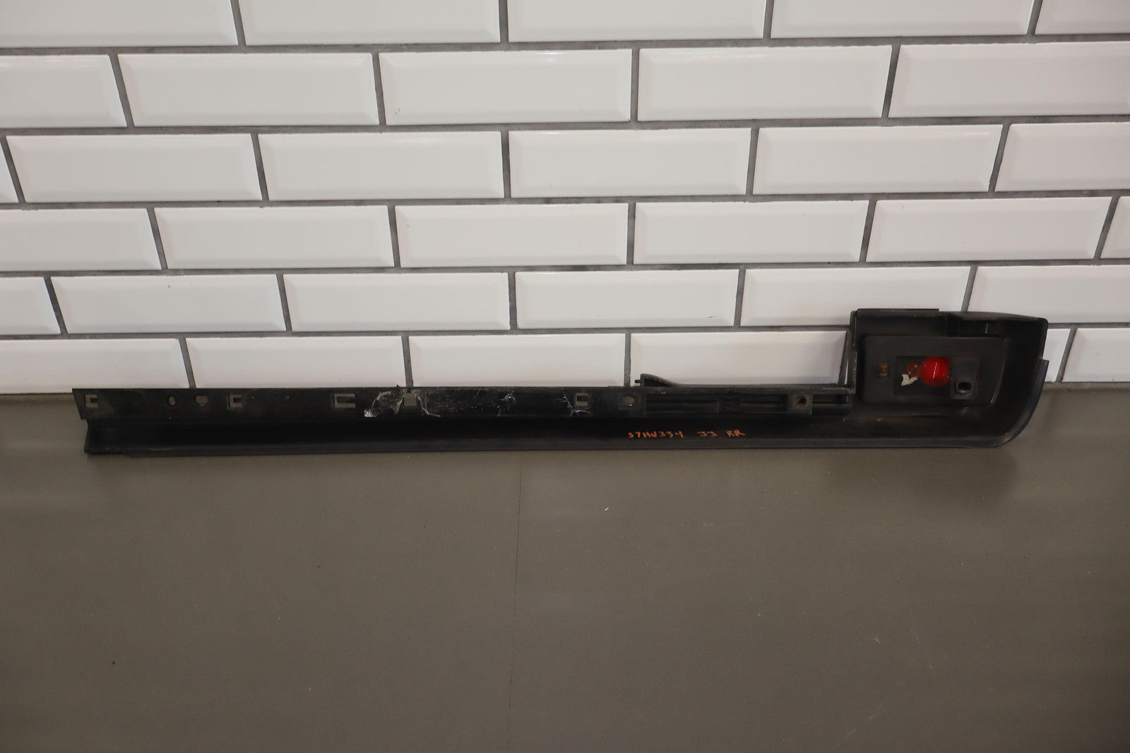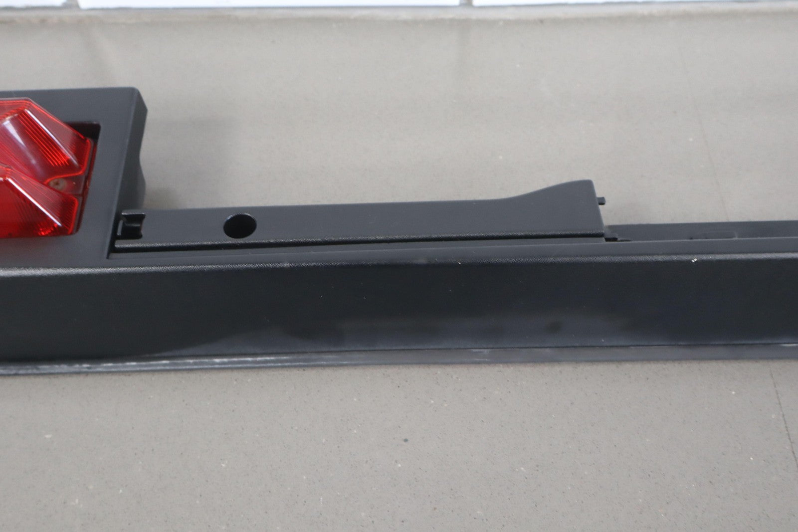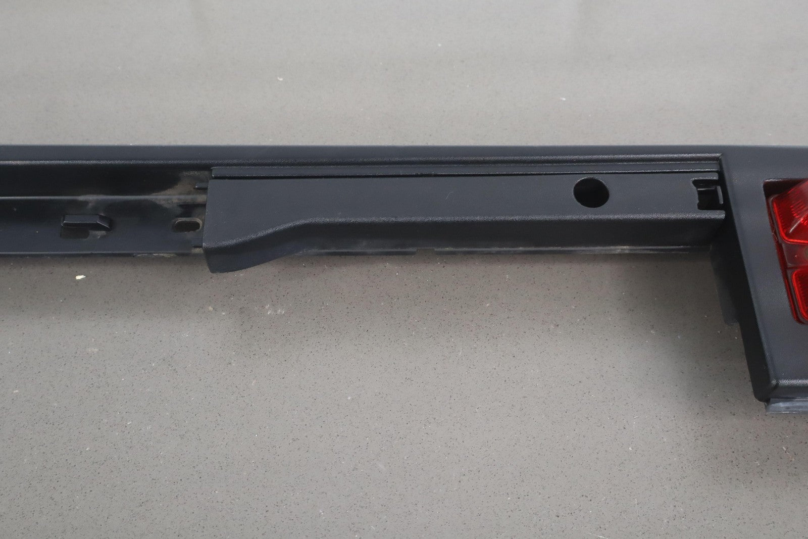 Lh Rear Roof Moulding (rear Door To Hatch), Black Textured Plastic, Mild Sun Fade, Includes Red Light Lens, 1 Missing Lock Tab