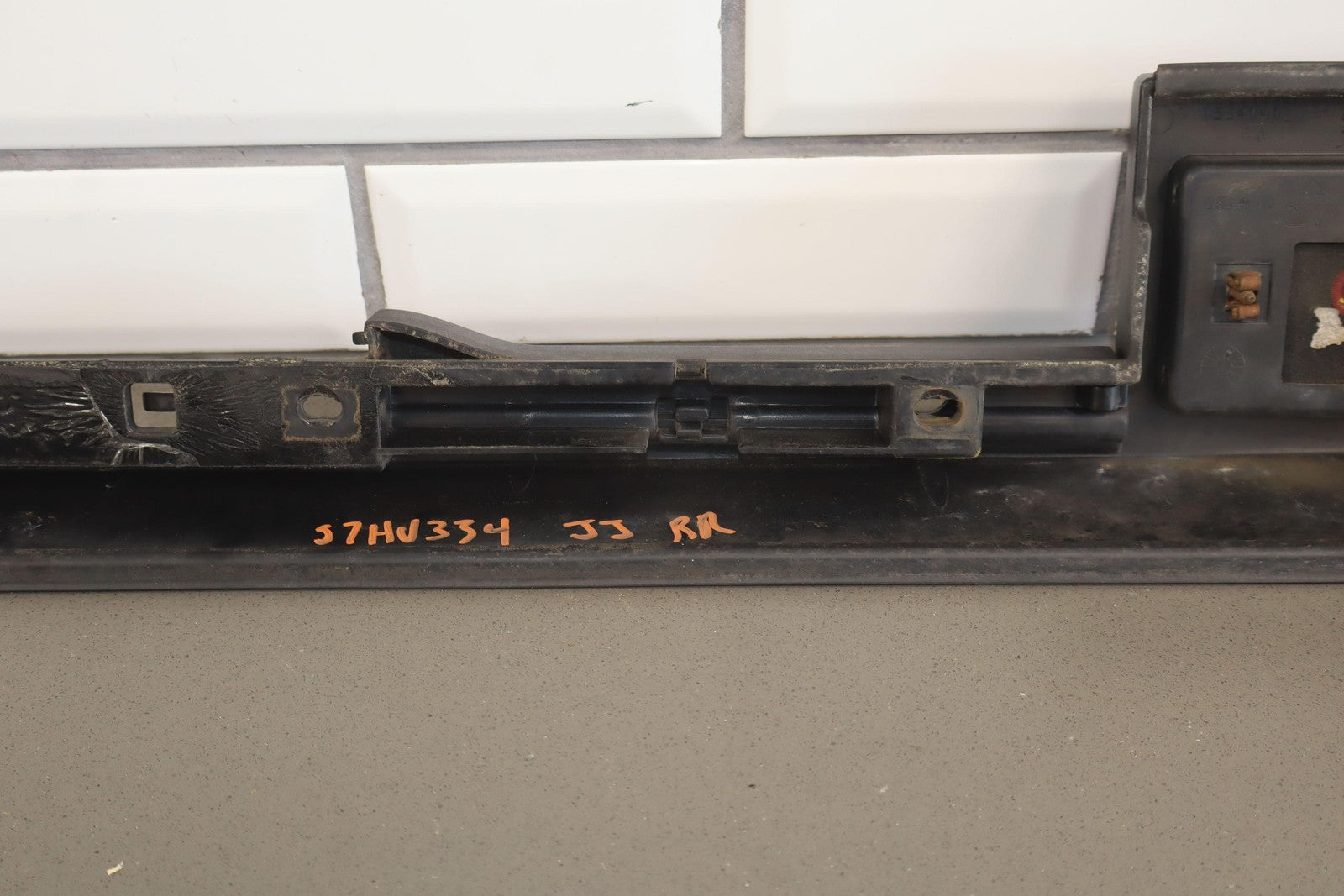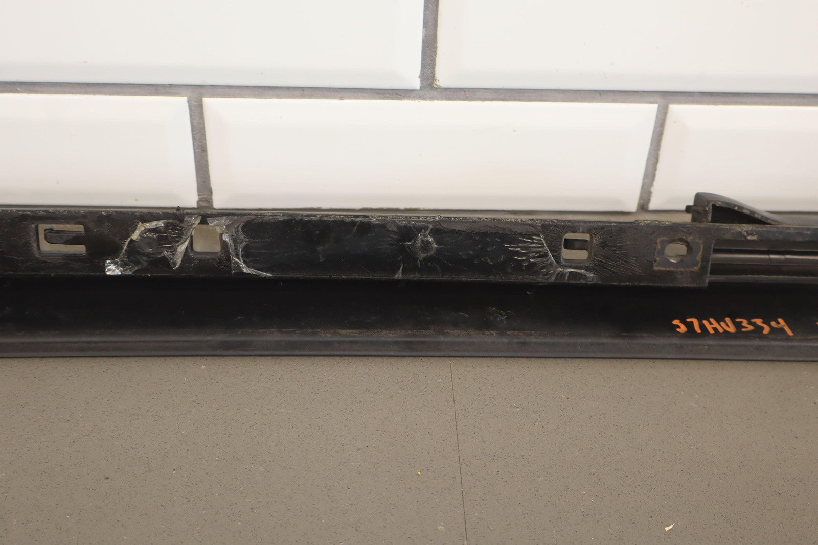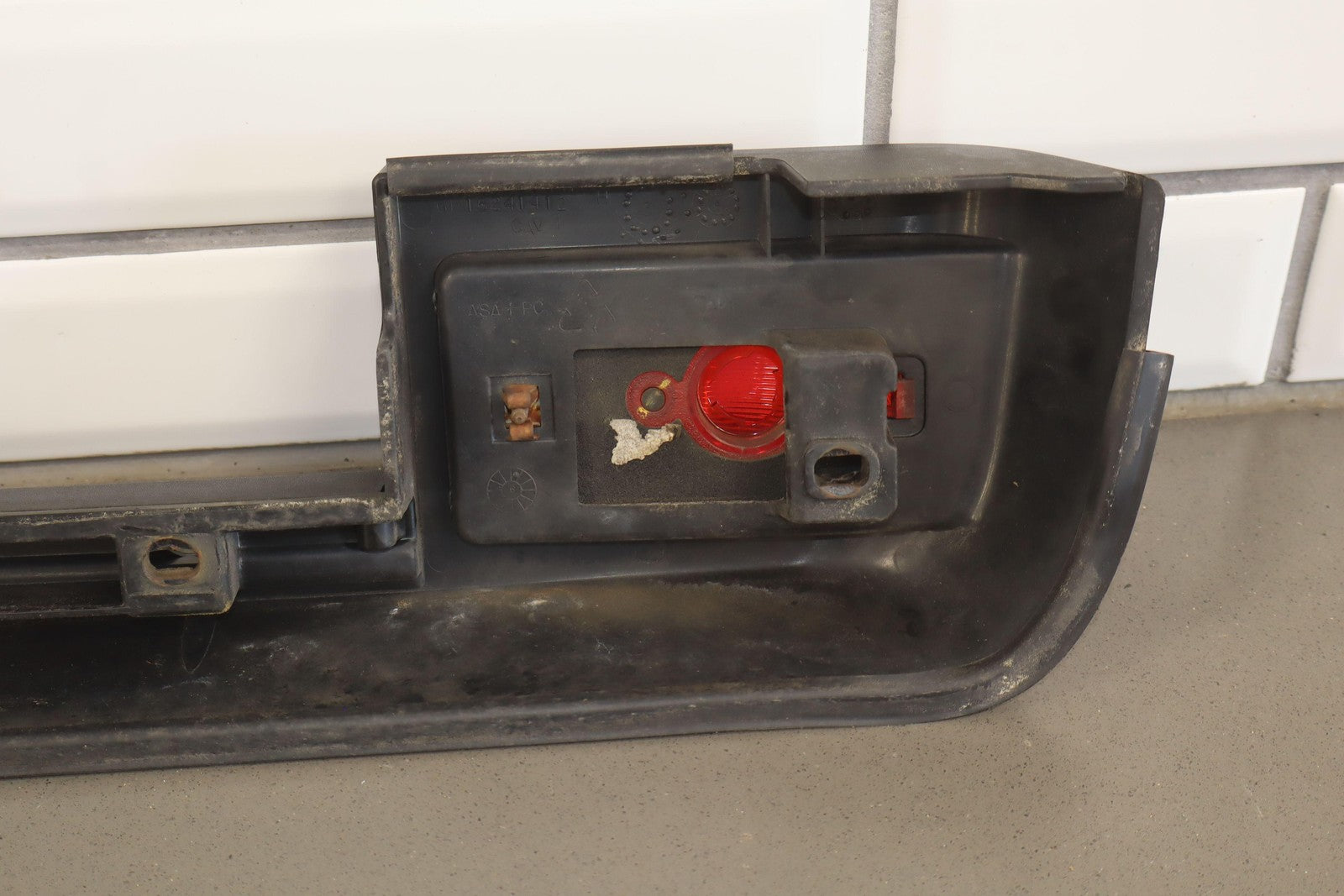 Lh Rear Roof Moulding (rear Door To Hatch), Black Textured Plastic, Mild Sun Fade, Includes Red Light Lens, 1 Missing Lock Tab