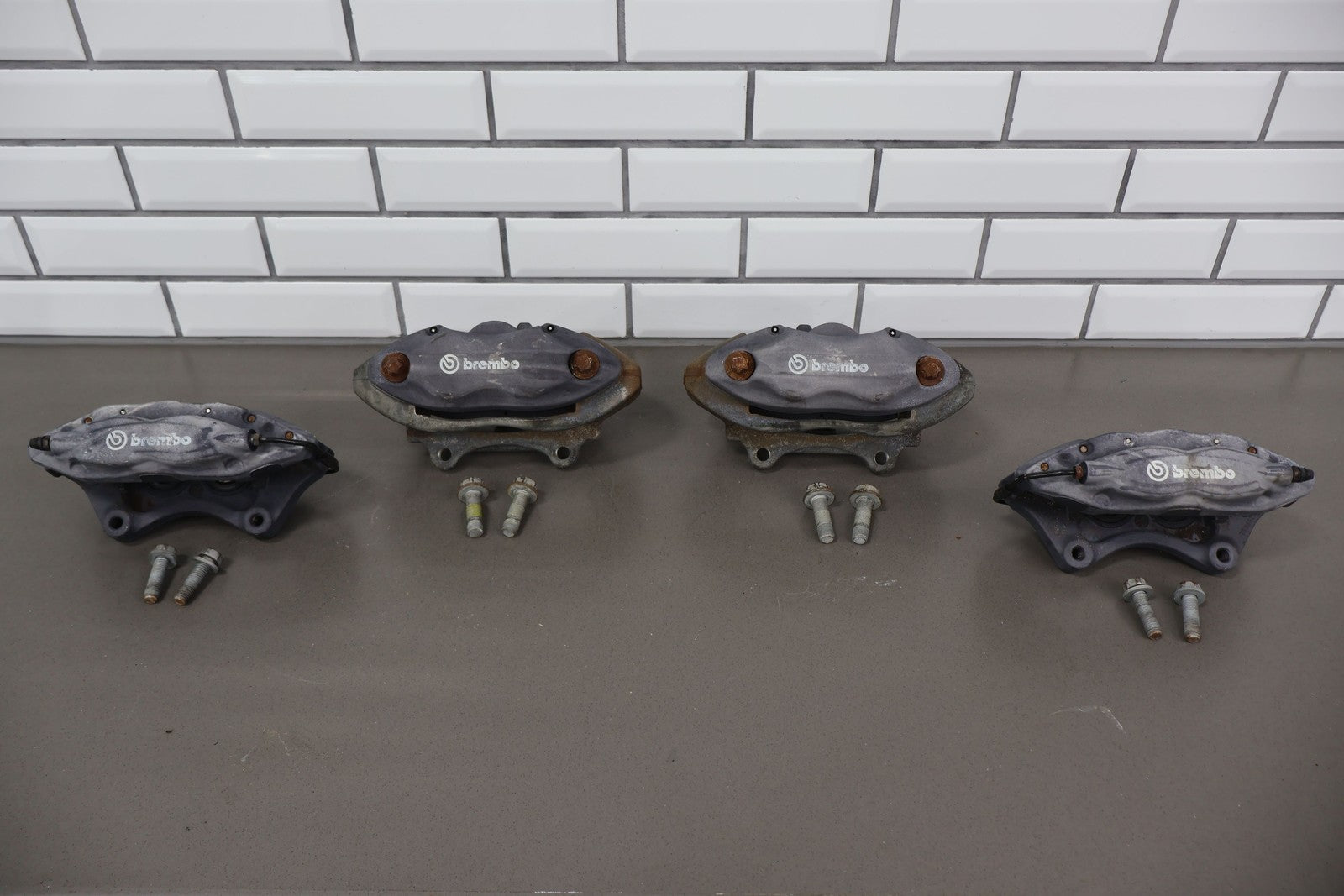 Important notes: Lh-rh/front-rear Brembo Caliper Set (4pc), 4 Piston (opt Br4), Weathered Finish On All