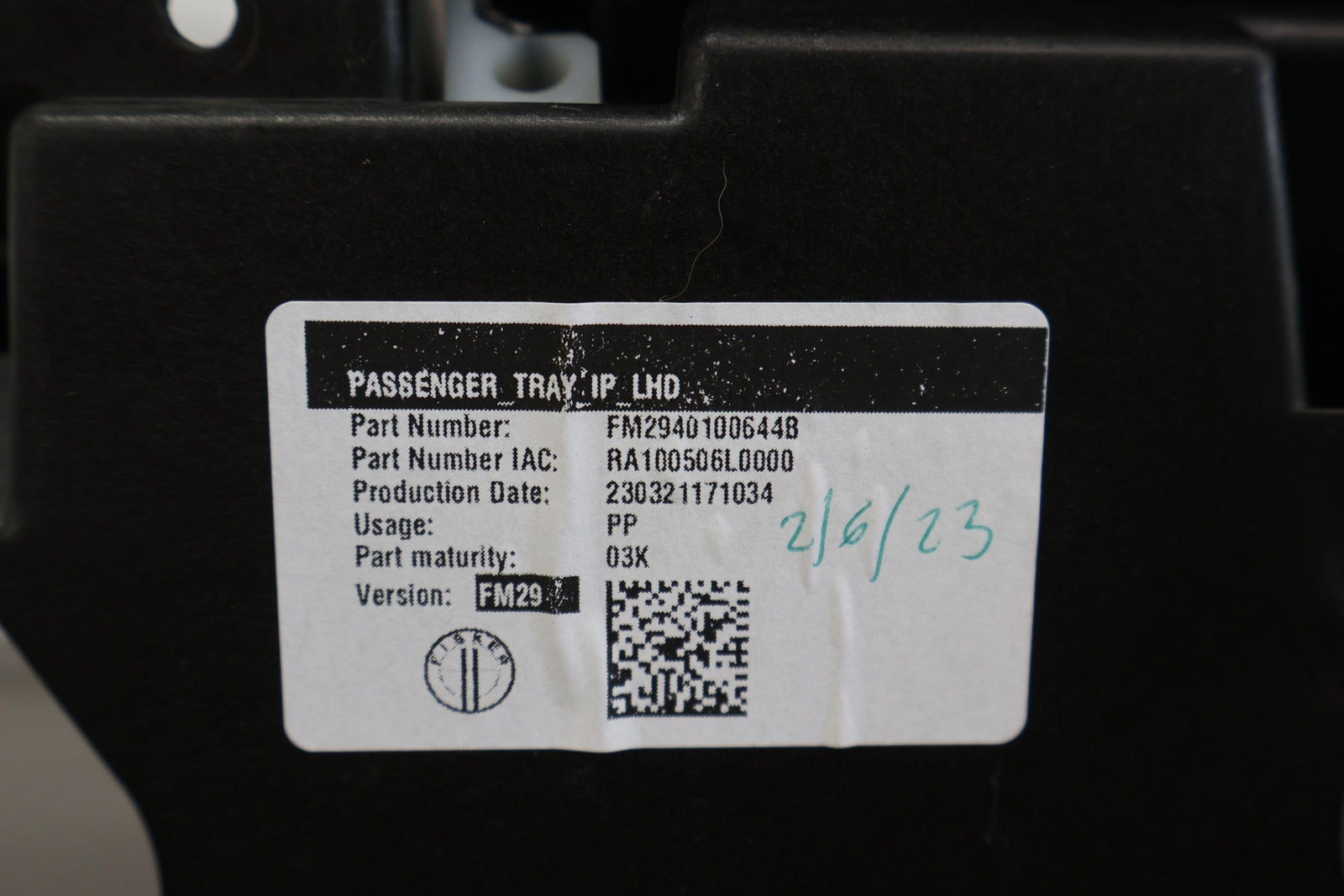 Rh Dash Mounted Retractable Tray, Mounted Solid, Functions Properly, Fm2940100644b