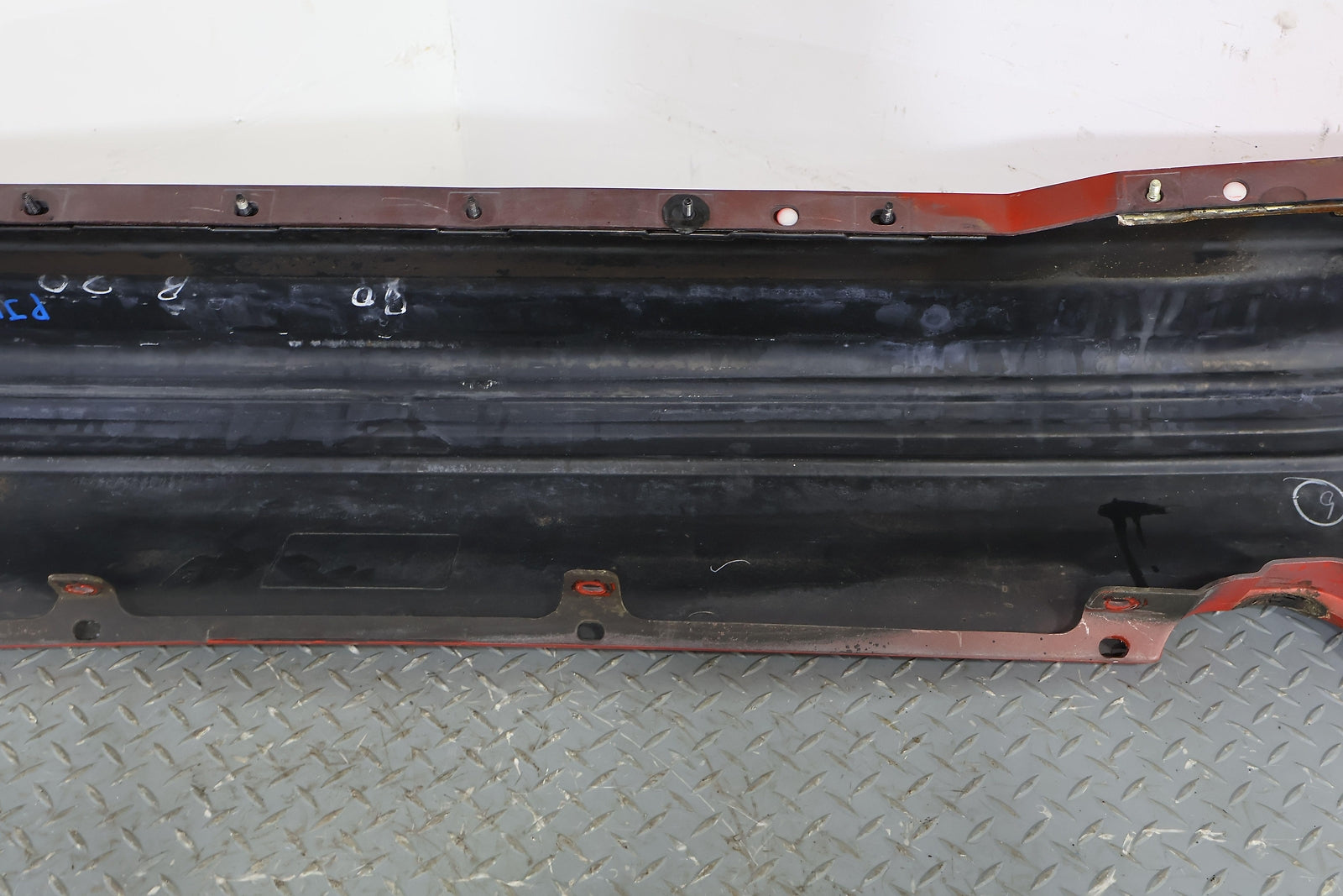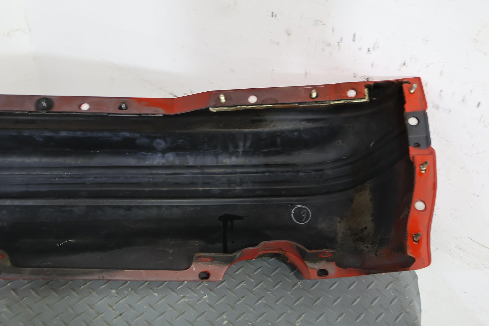 2 Exhaust Cutout, Sunrise Red (rh), Heavy Sun Fade, Includes Corner Markers, Lower Lip Warped, Mounted Solid