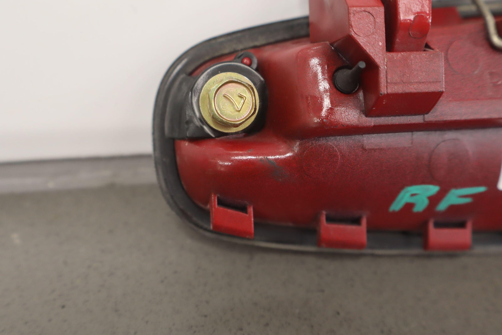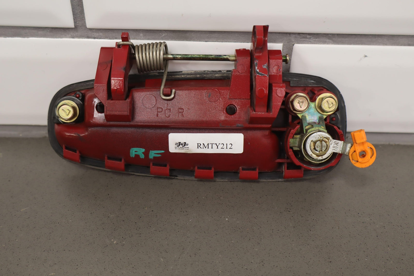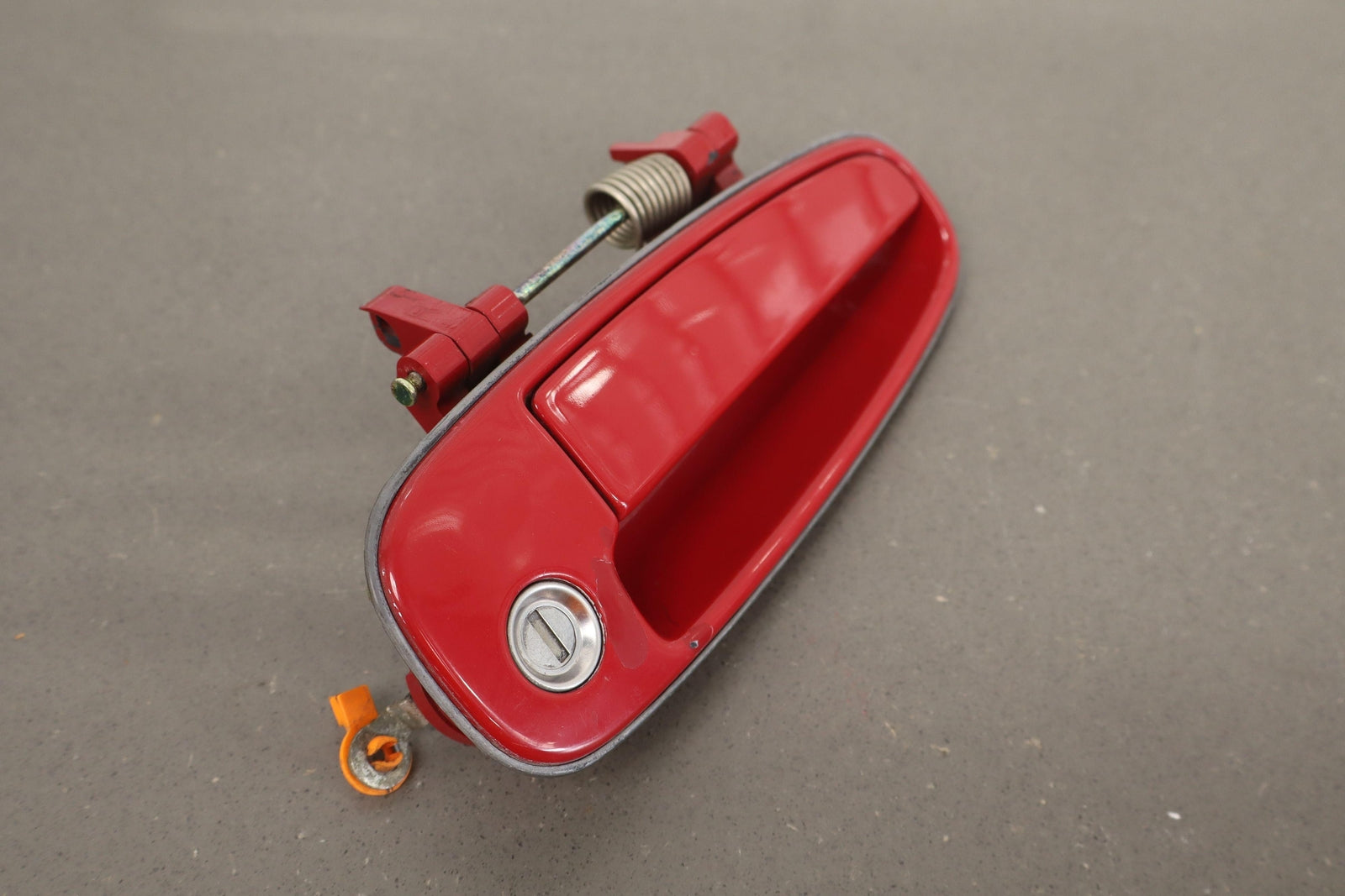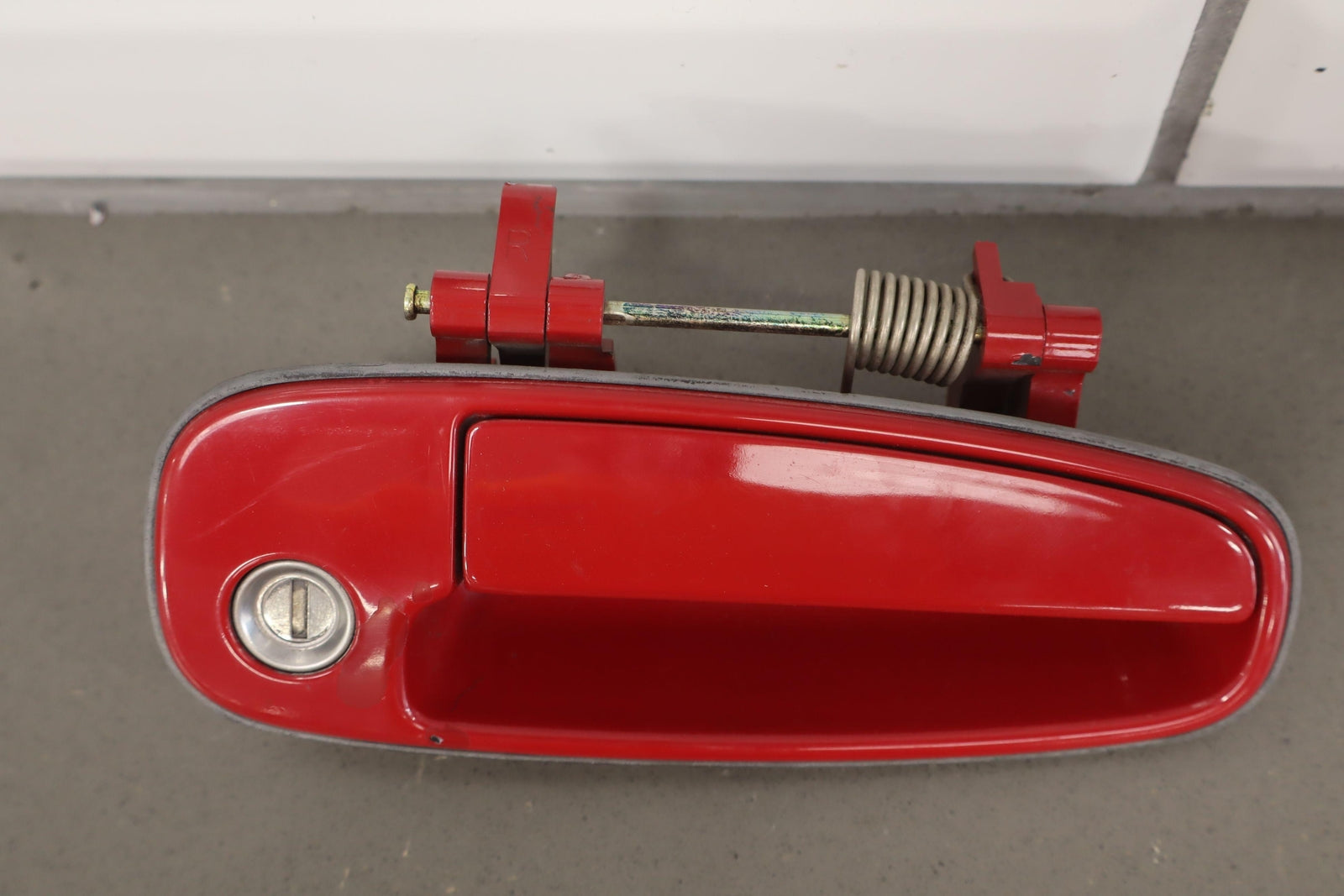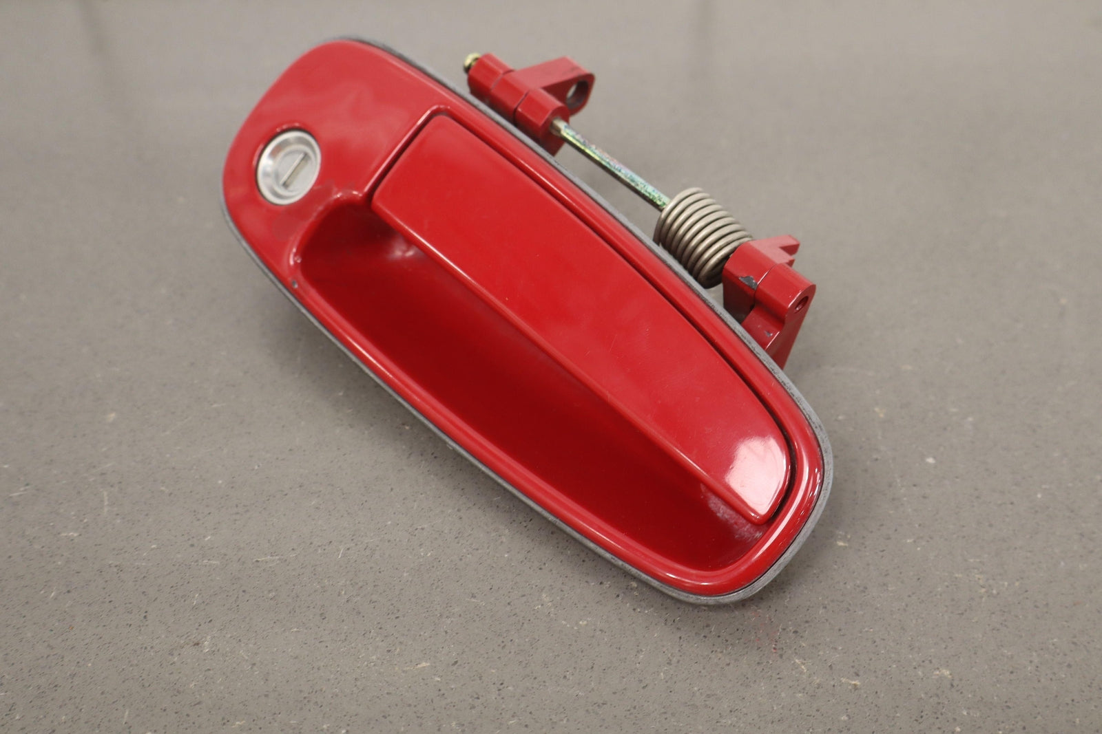 Rh Outer Door Handle, Super Red 2 (3j6), Clear Coat & Paint Chips, Scfuffs/scratches, Functions Properly, Mounted Solid