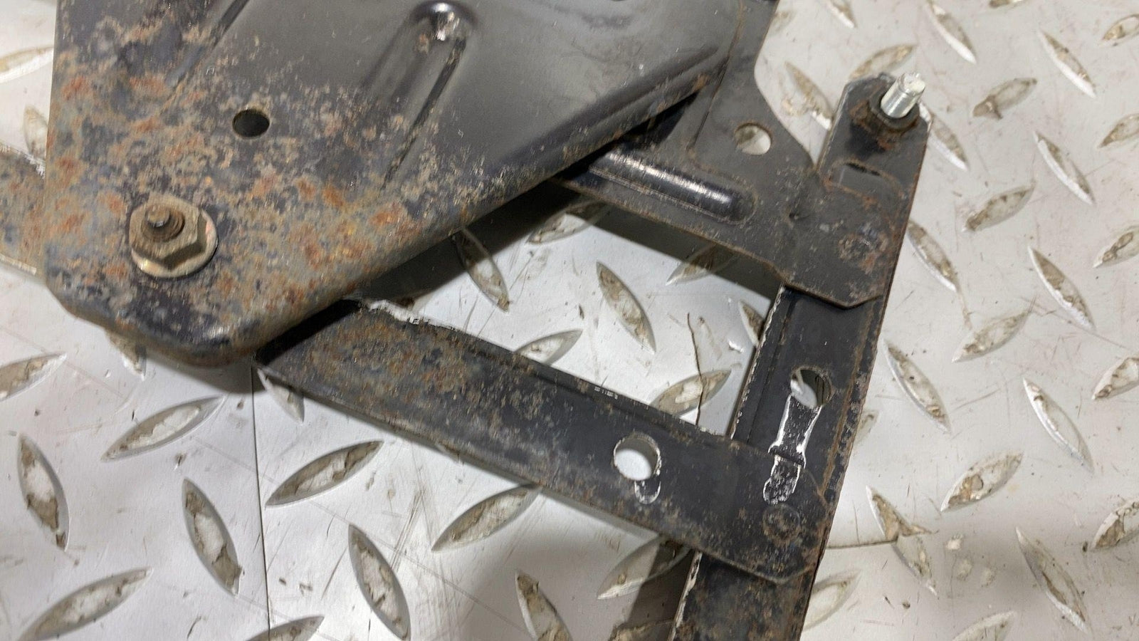 Rear License Plate Bracket, Lightly Weathered Finish, Mounted Solid