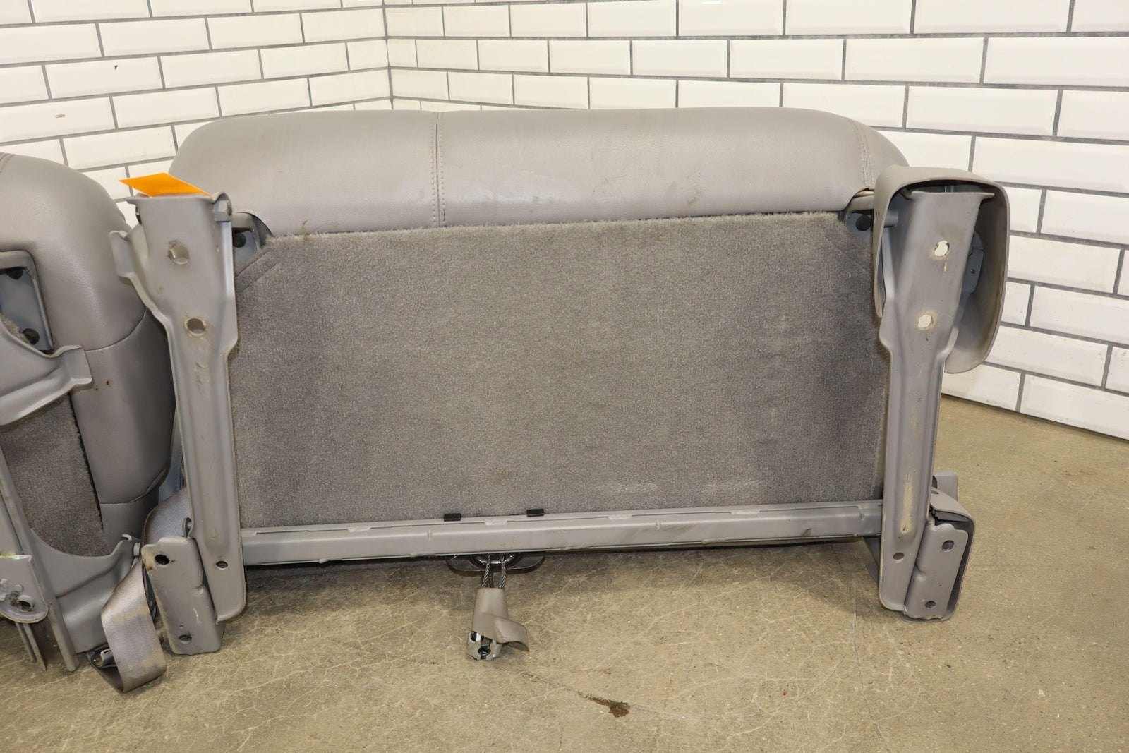 2nd Row Leather Bench Seat, Gray (132), Light Staining, Minimal Signs Of Wear, Mild Aging To Leather
