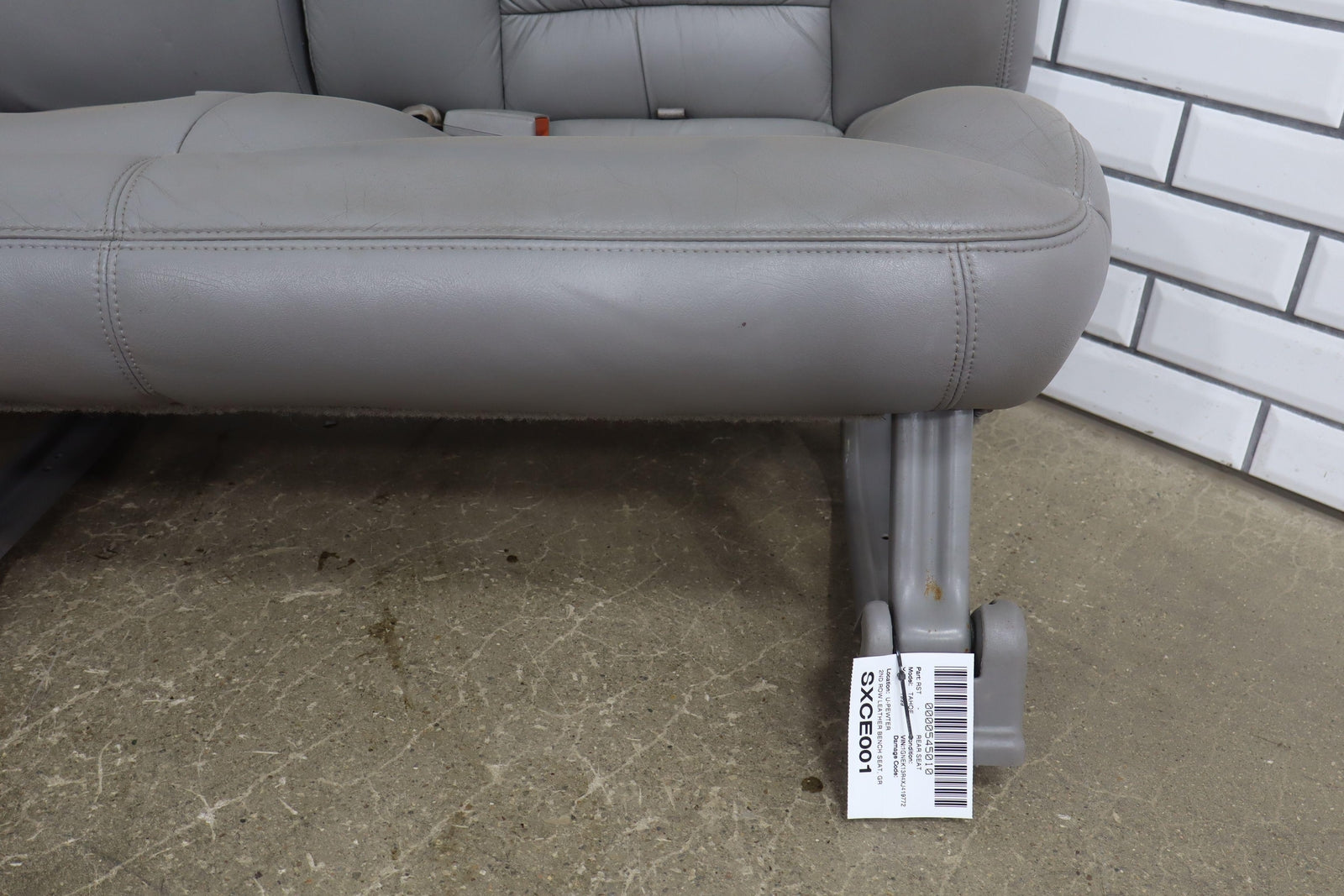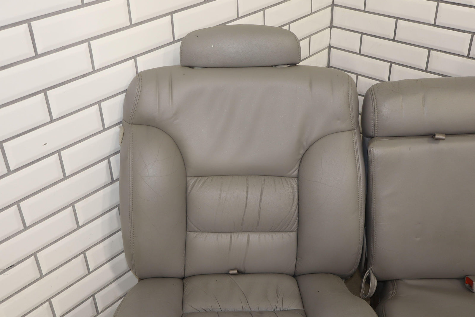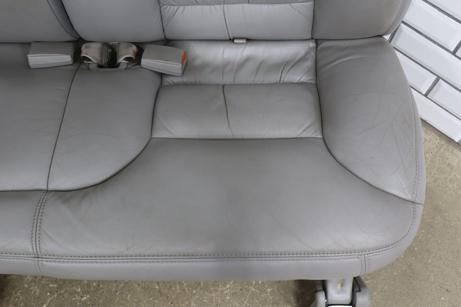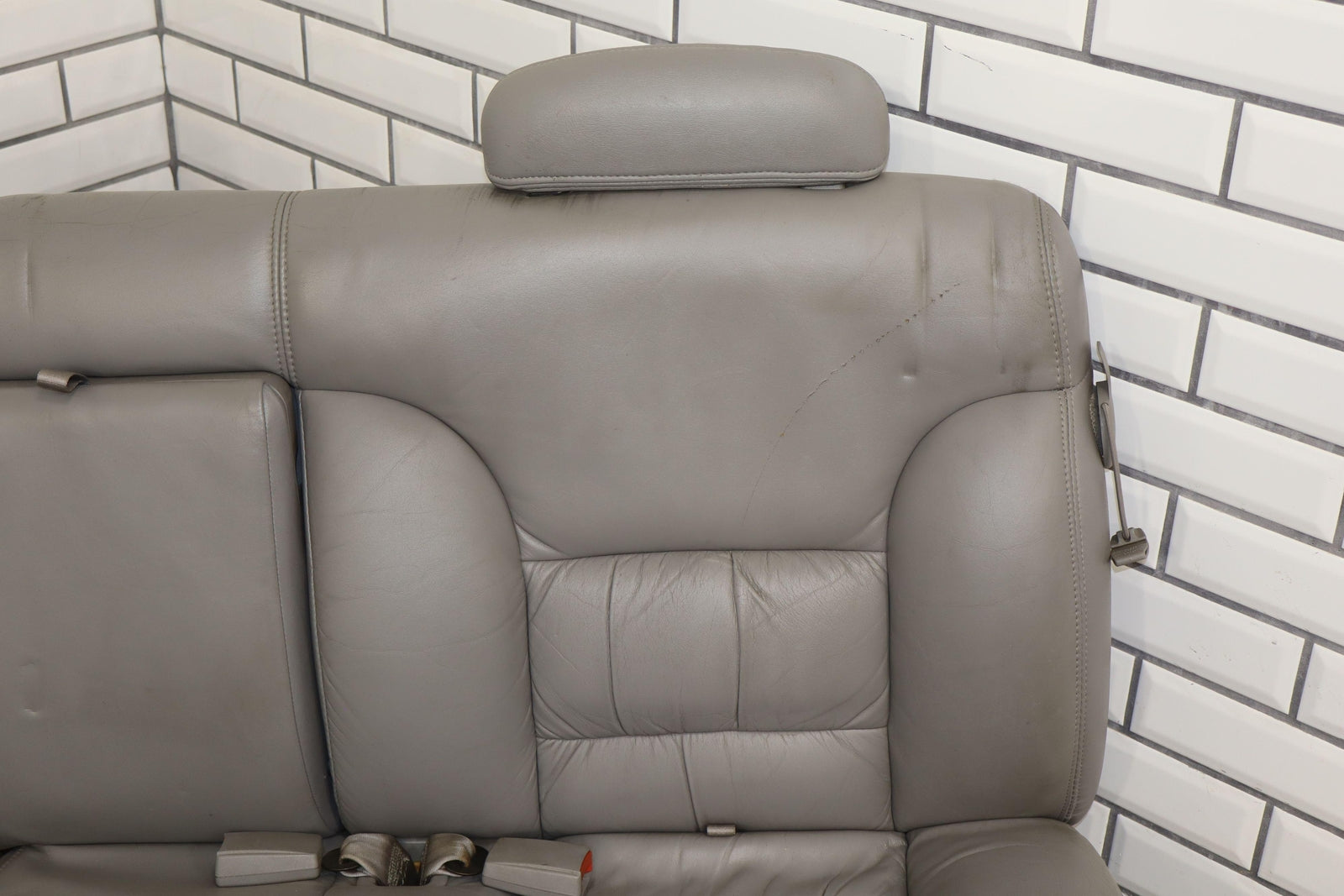 2nd Row Leather Bench Seat, Gray (132), Aged Leather, Decent Staining