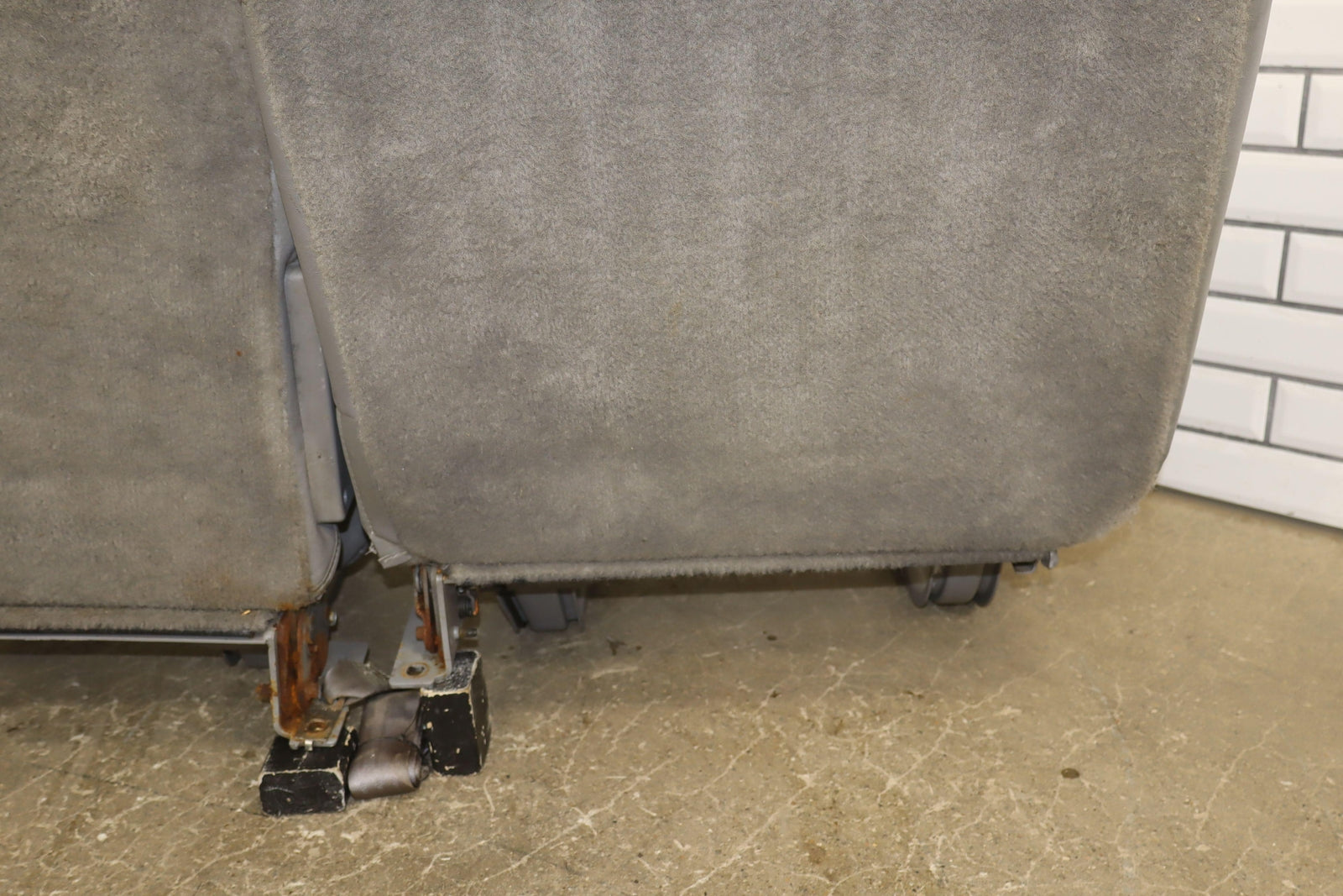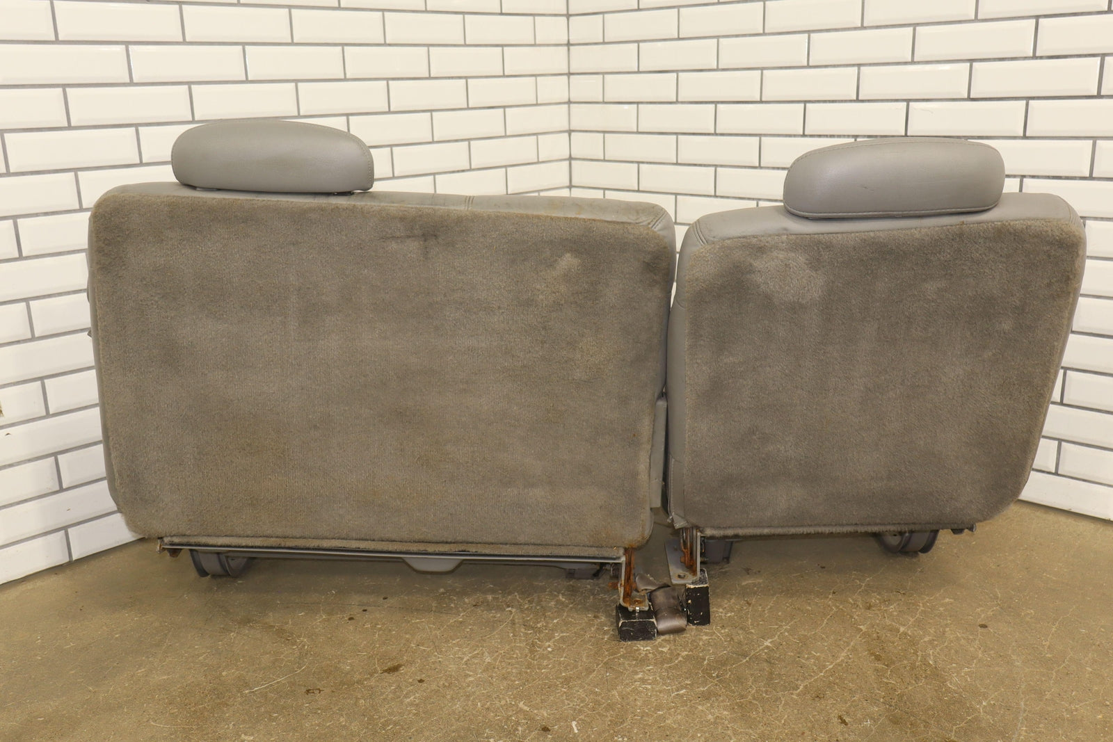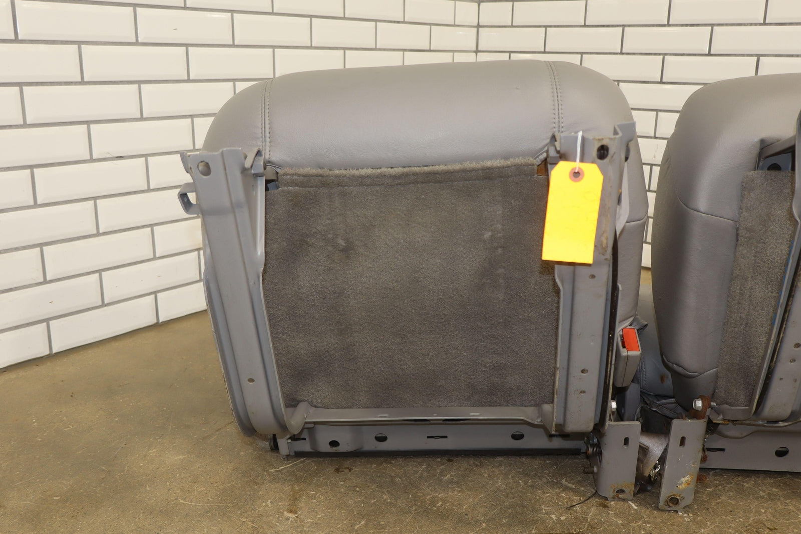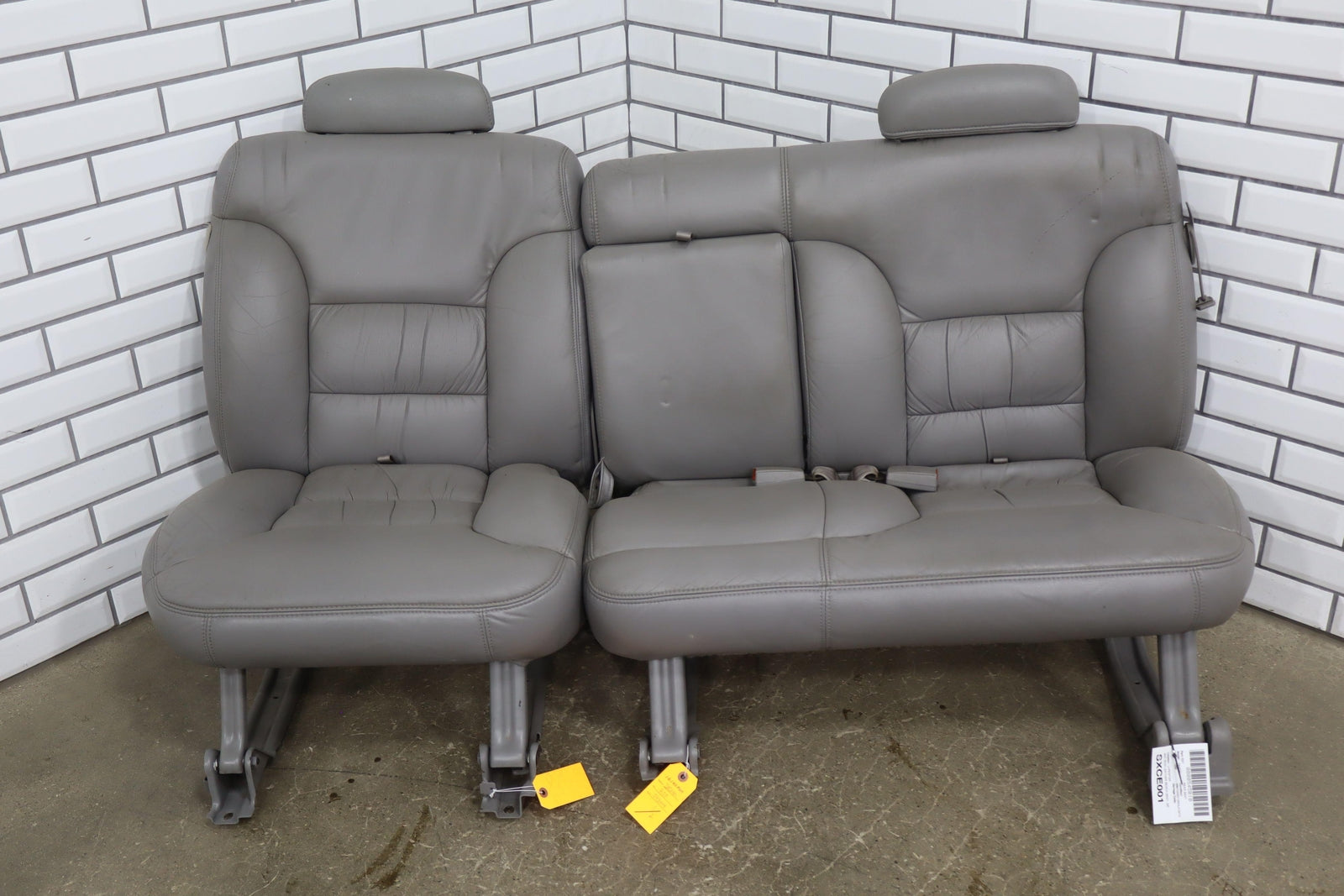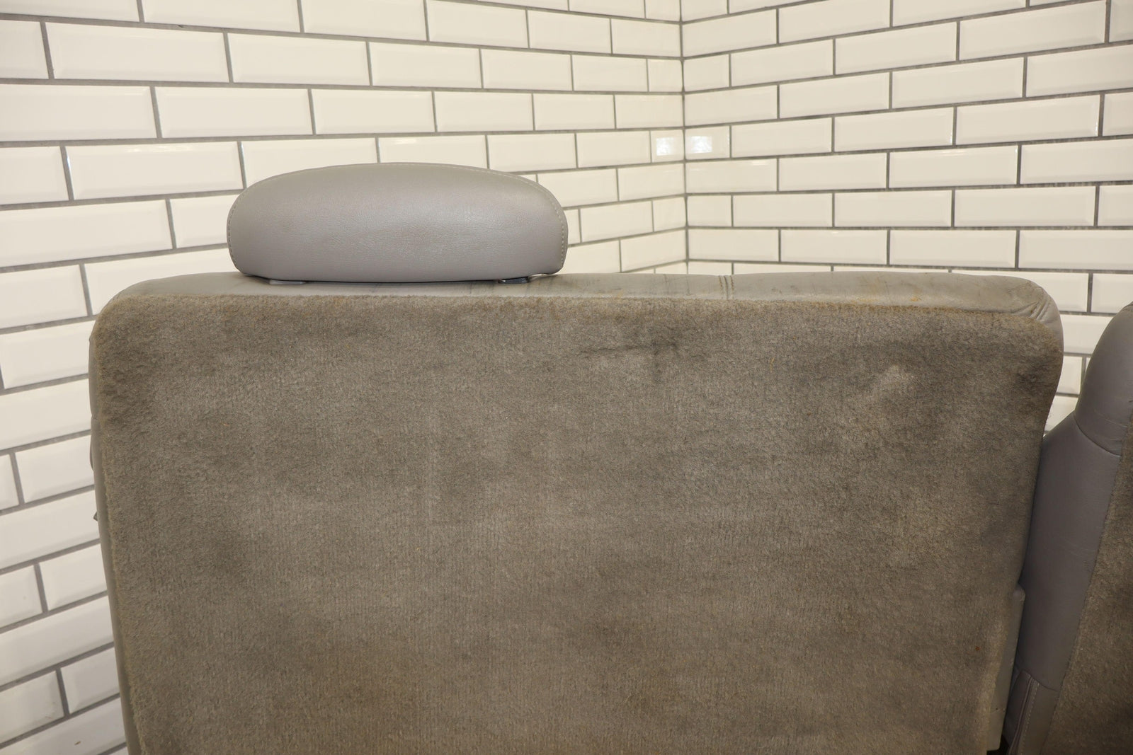 2nd Row Leather Bench Seat, Gray (132), Aged Leather, Decent Staining