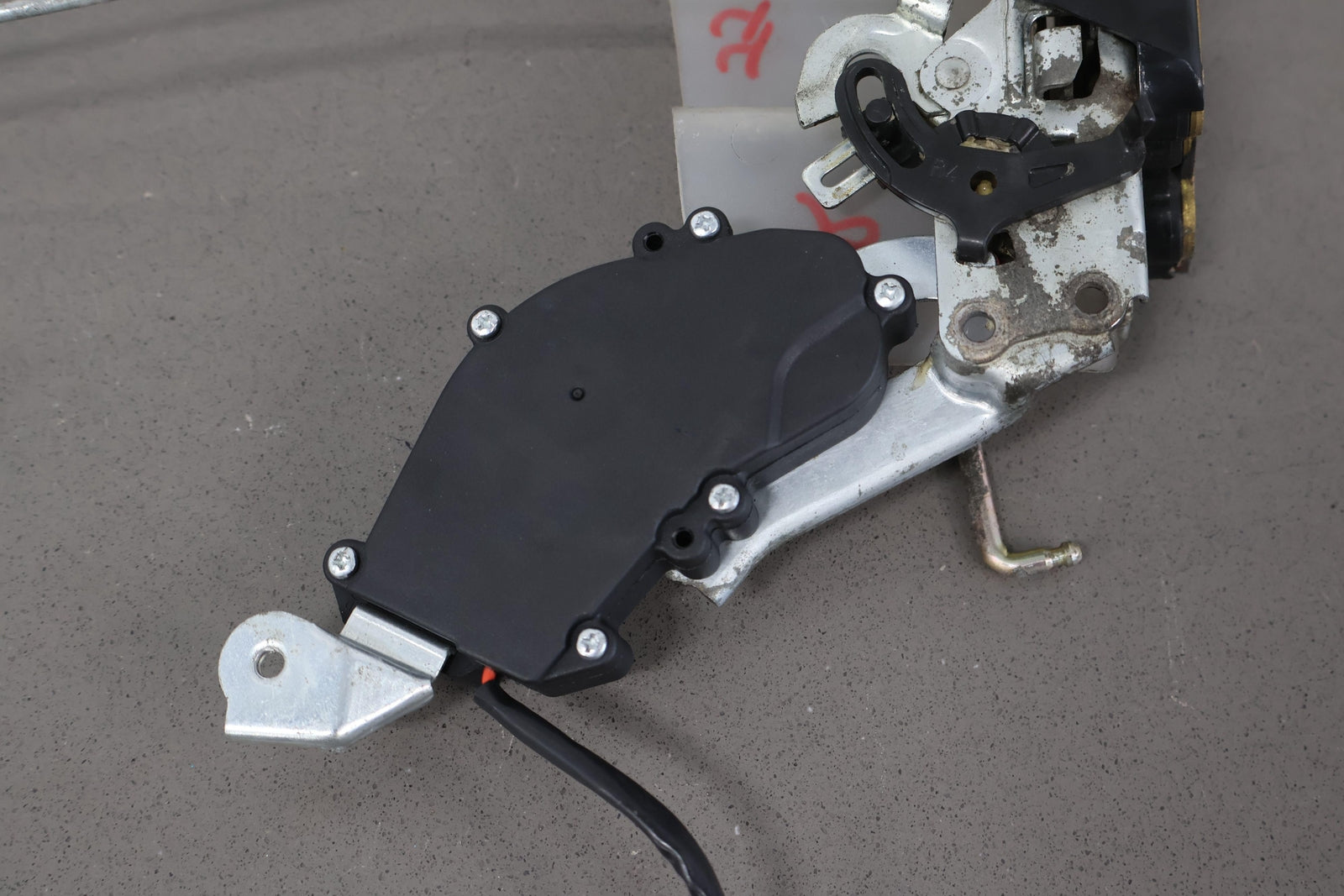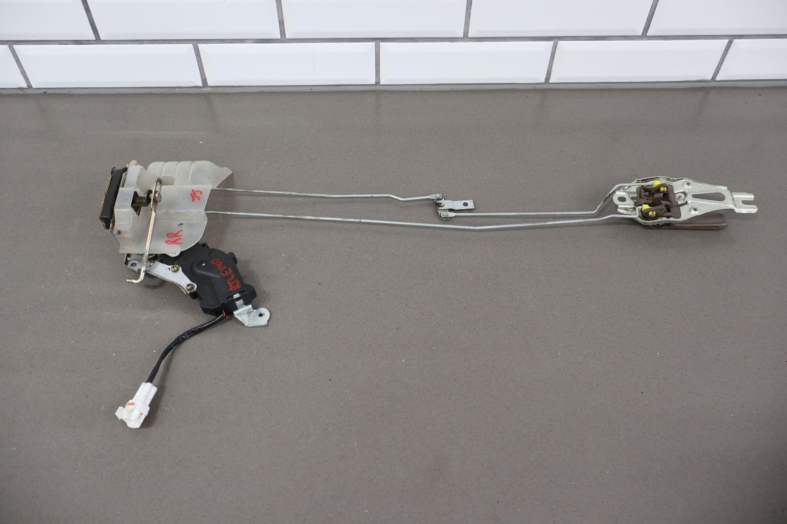 Rh Rear Door Latch, Includes Rods-inner Handle, Mounted Solid, Functions Properly