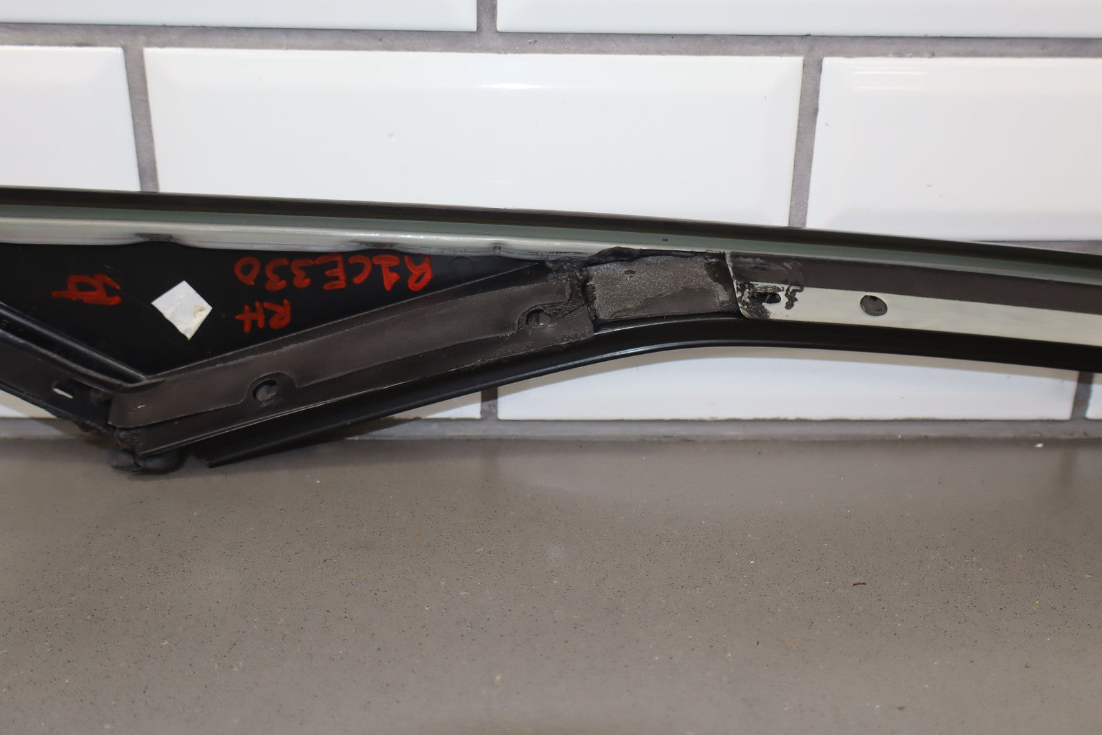 Important notes: Rh Exterior A Pillar Trim, Black Textured Plastic, Mild Sun Fade