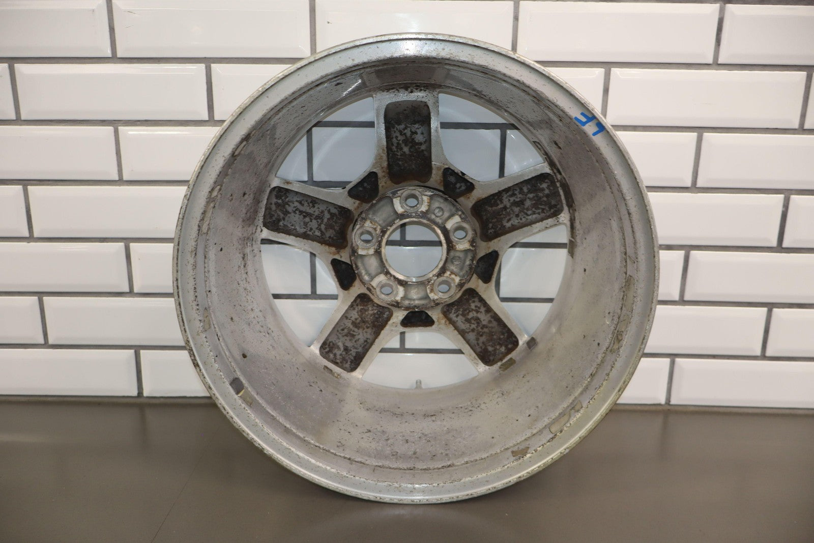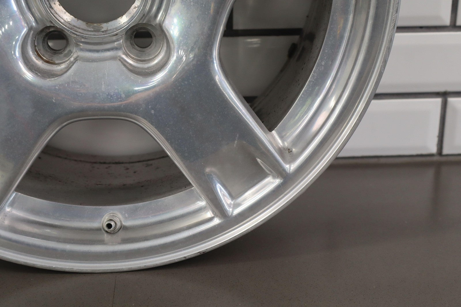 17x8.5 Polished 5 Spoke Wheel, Mild Weathering, Light Scratches, Spun True