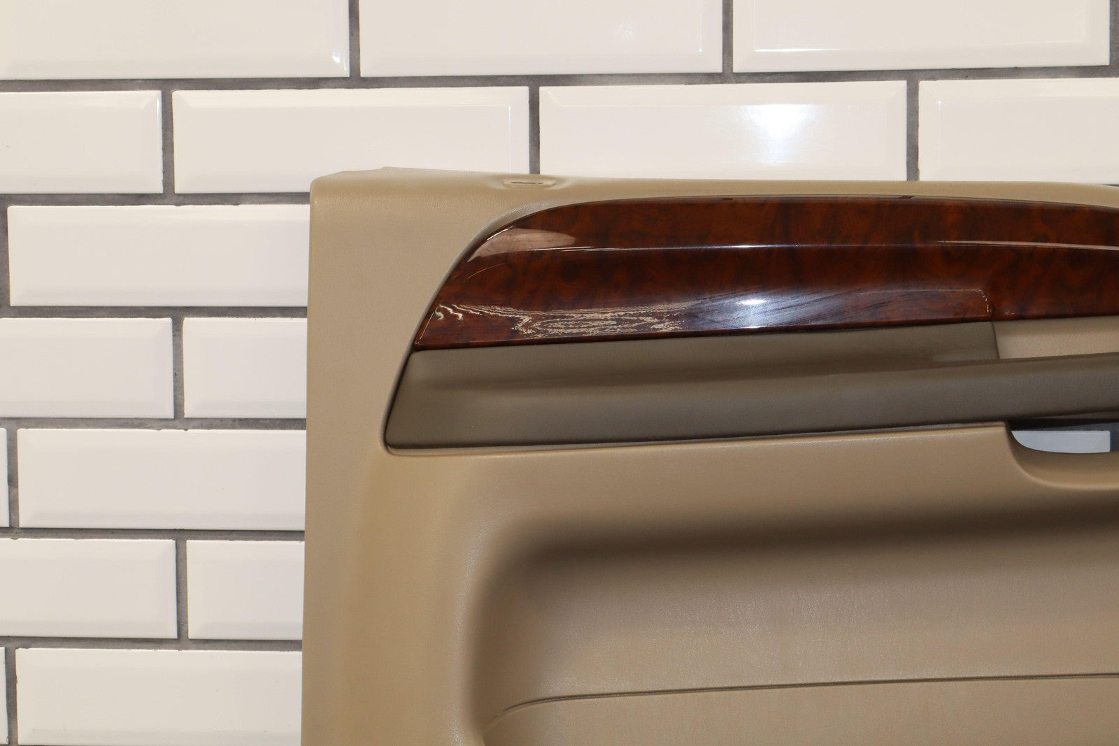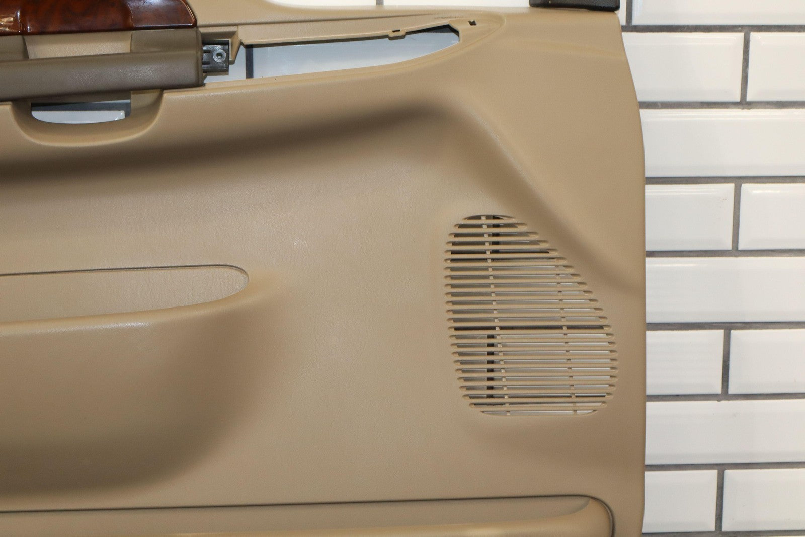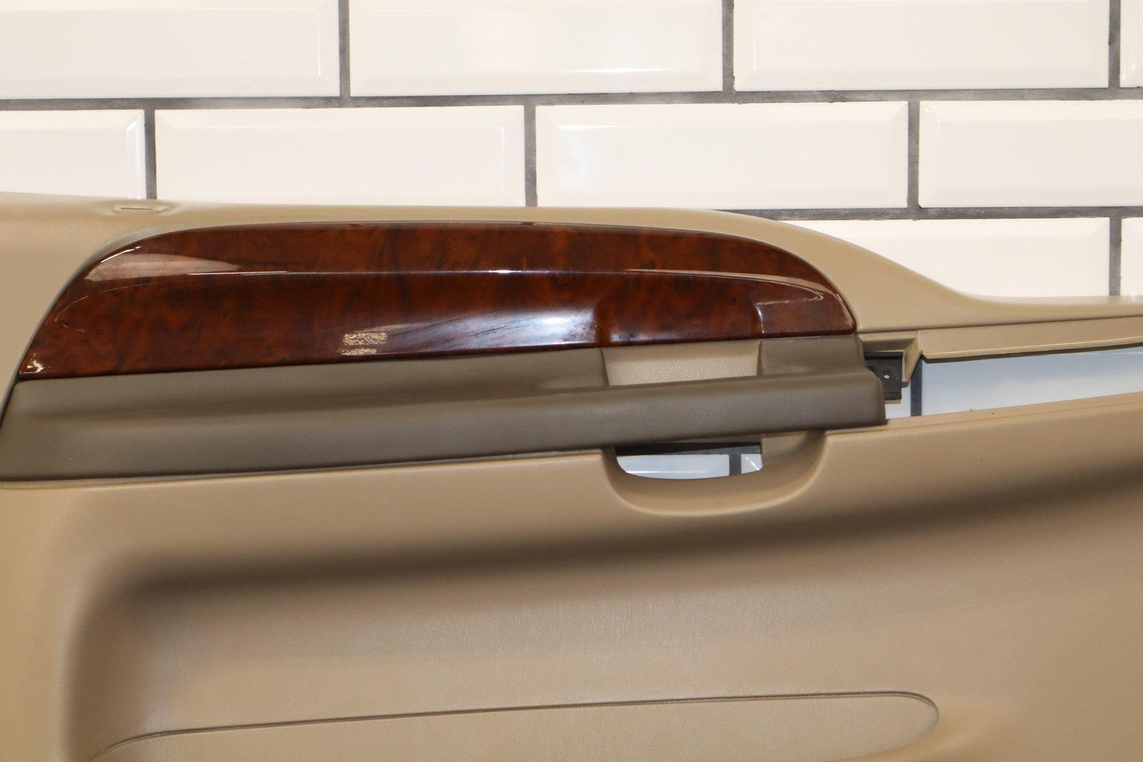 Lh Front, Medium Parchment W/woodgrain (4h), Includes Window Master Switch, Mild Fade Across Top, Light Signs Of Wear