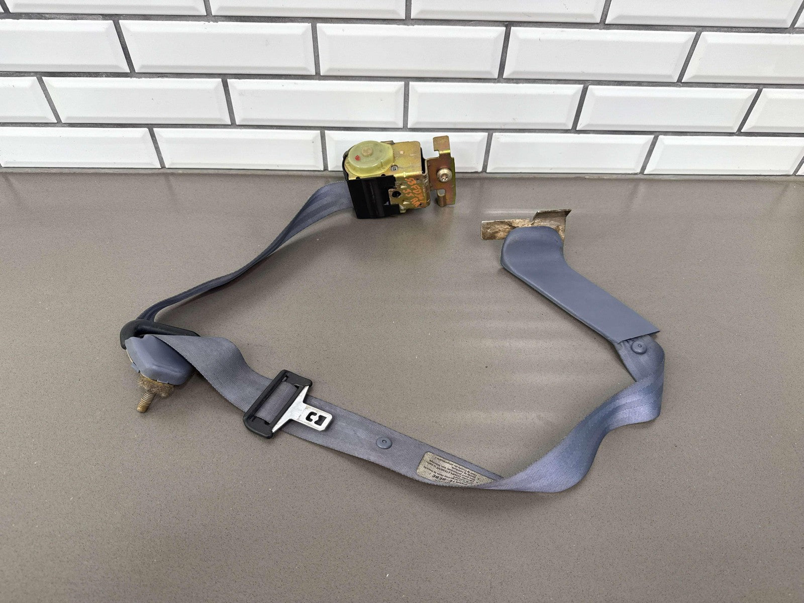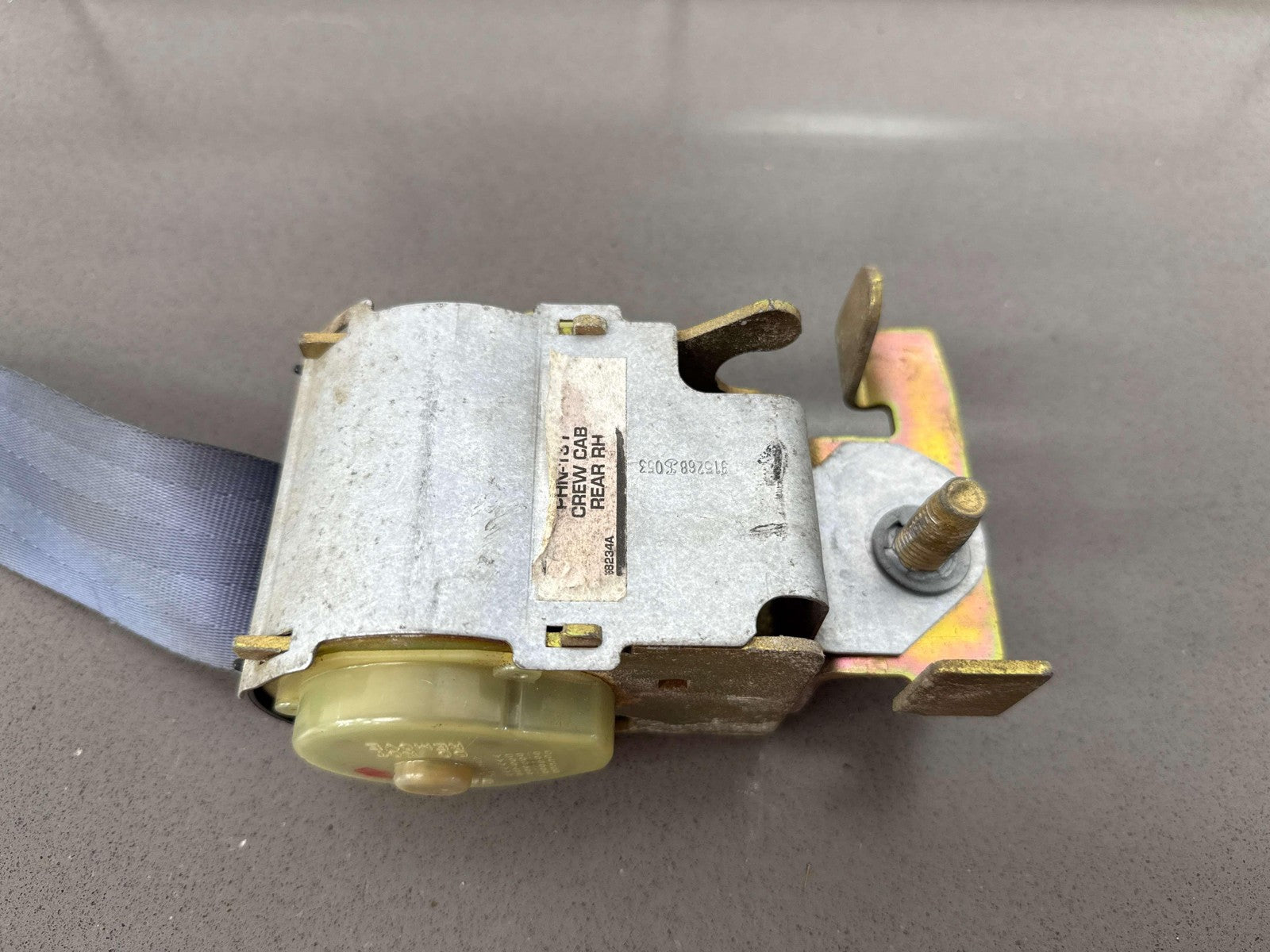 Rh Rear Retractor, Crew Cab, Denim Blue (2d), Mild Fade, Some Staining, Light Wear, Retracts Properly