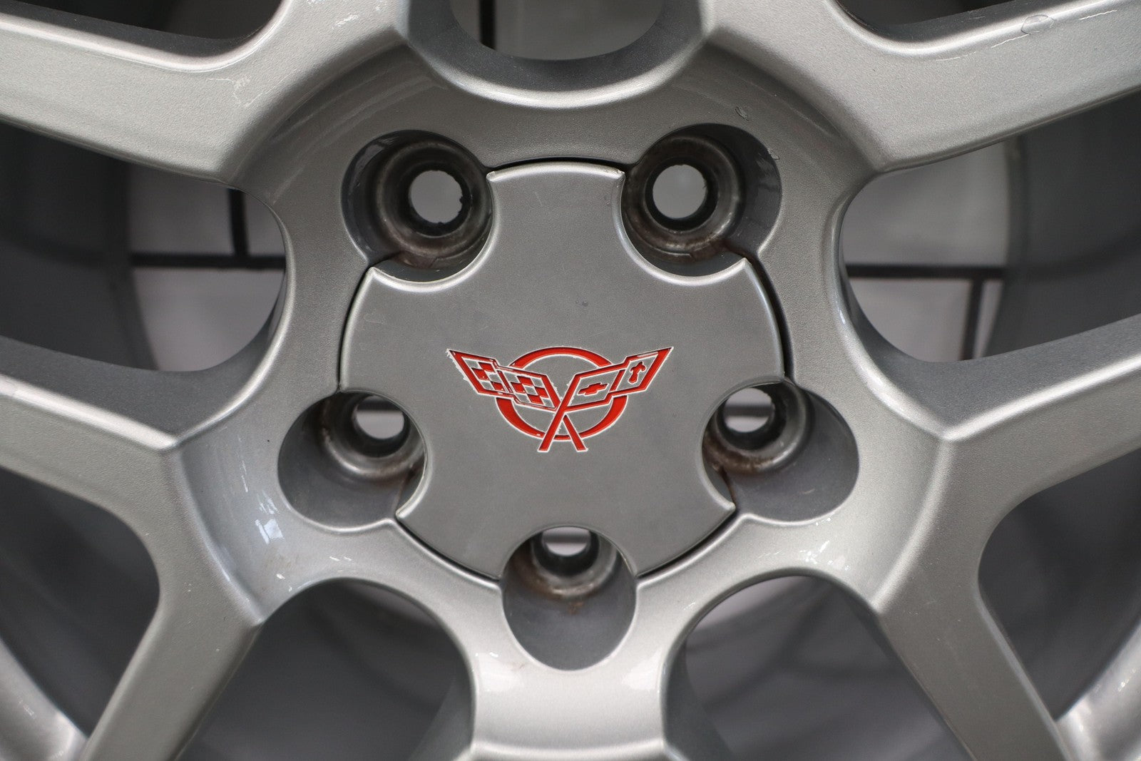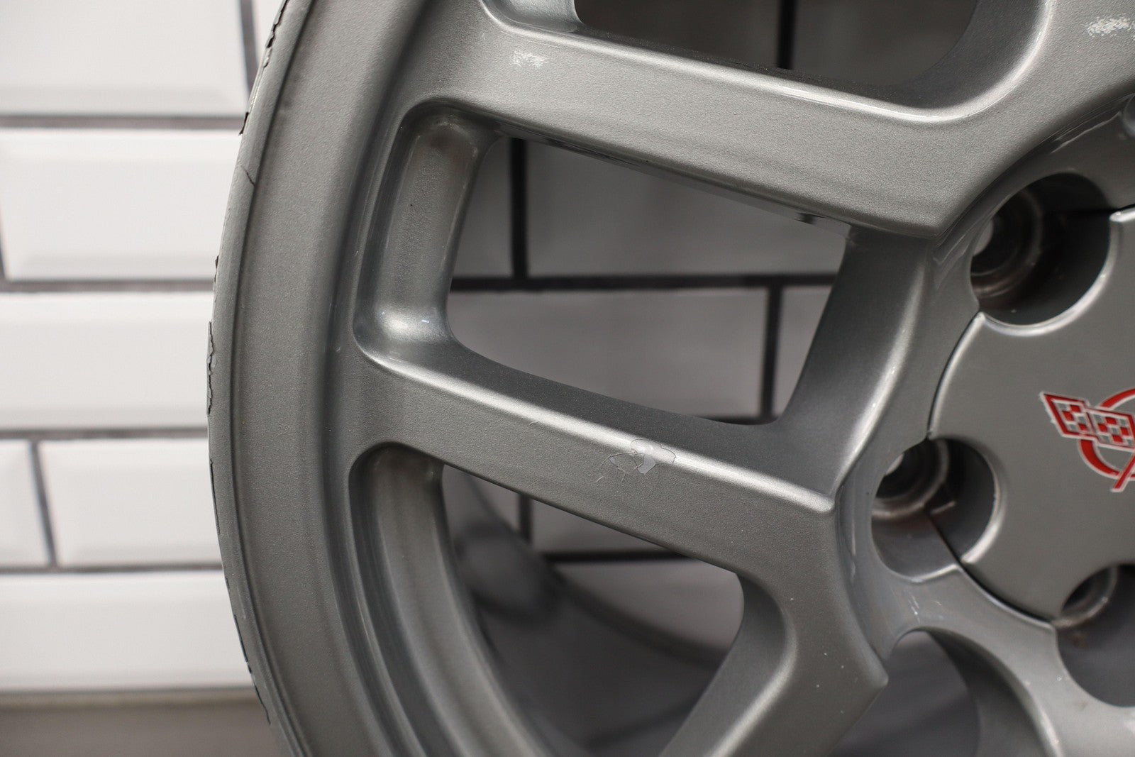 Lh Front, 17x9.5 Split 5 Spoke Wheel (z06-p12), Silver, Light Curb Rash, Heavy Finish Peel, Spun True