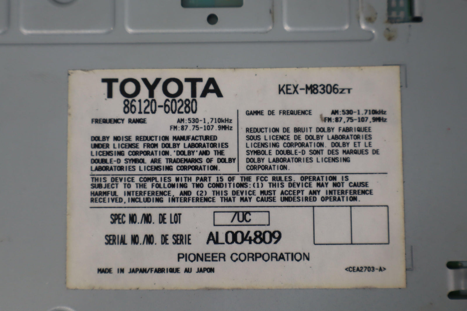 Dash Mounted Cassette Player, Clean Lettering, Tested, Functions Properly