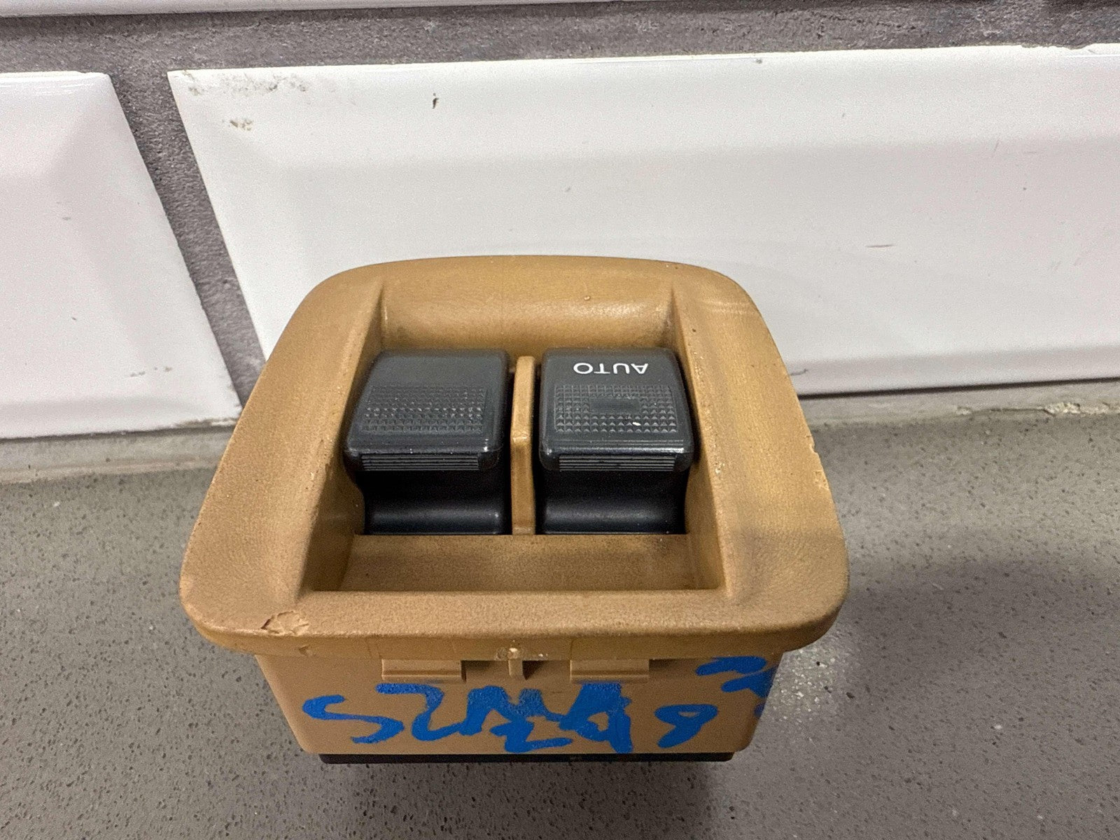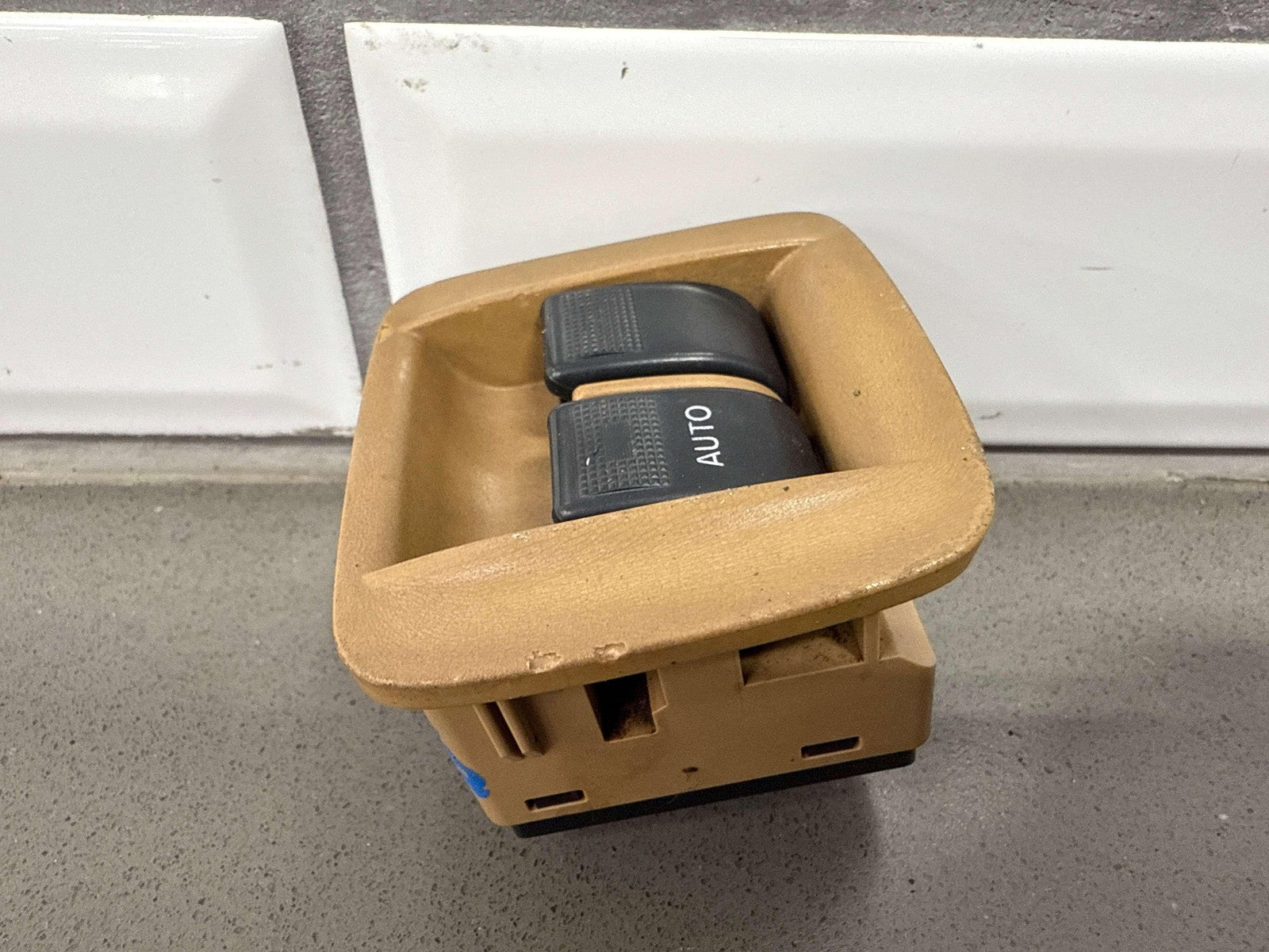 Console Mounted Window Master Switch, Tan Bezel (chips), 1 Tab Missing (red), Functions Properly