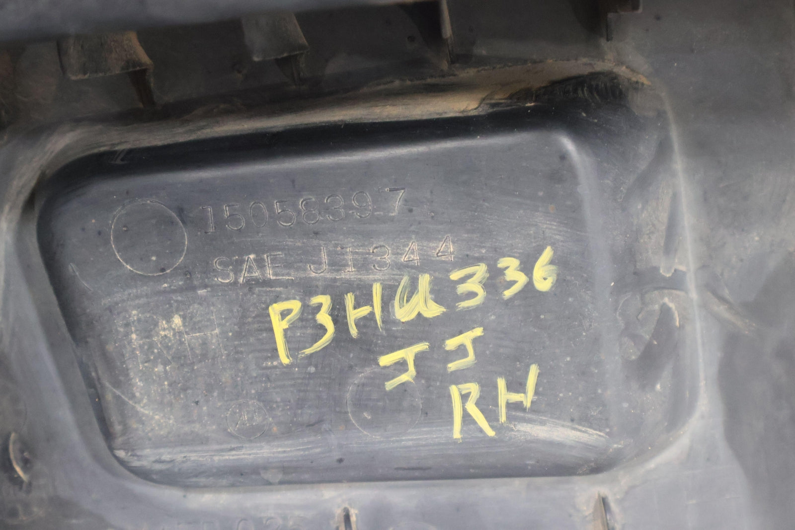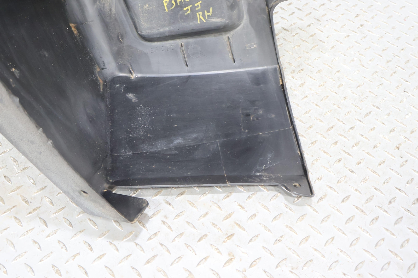 Rh Bumper Cover End Cap, Black Textured Plastic, Decent Sun Fade, Heavy Gouge To Front, Mounted Solid