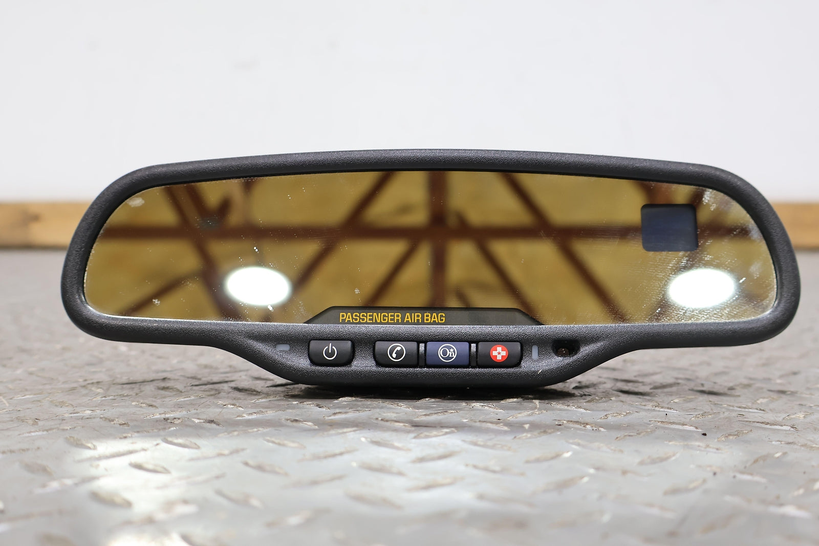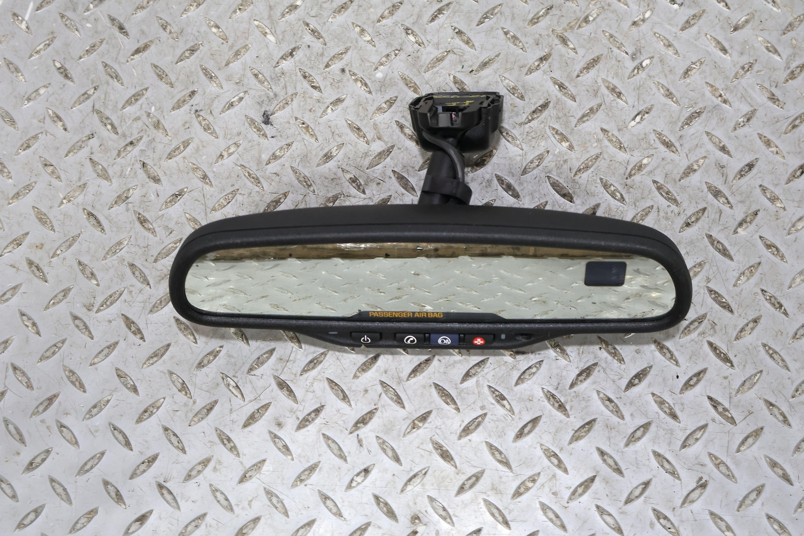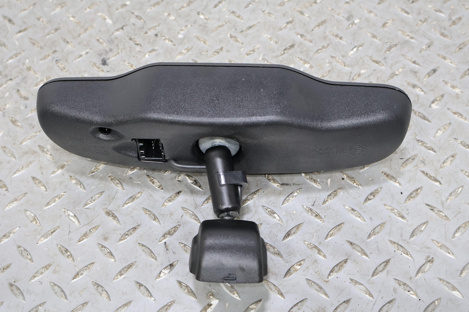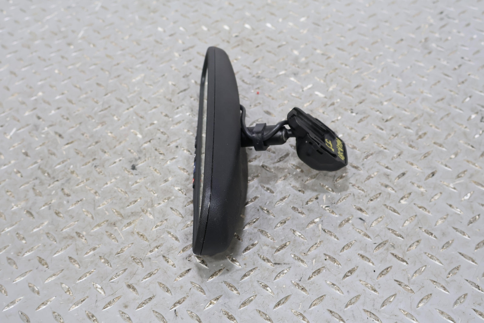 Black Textured Plastic Frame, Clear Mirror Glass, Clean Button Lettering, Mounted Solid, Functions Properly