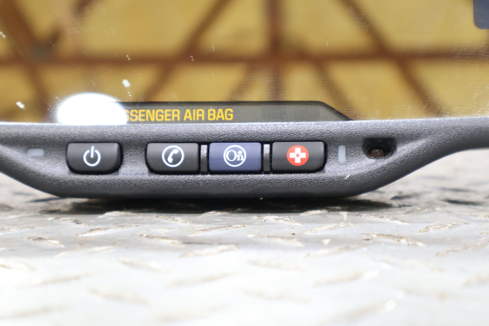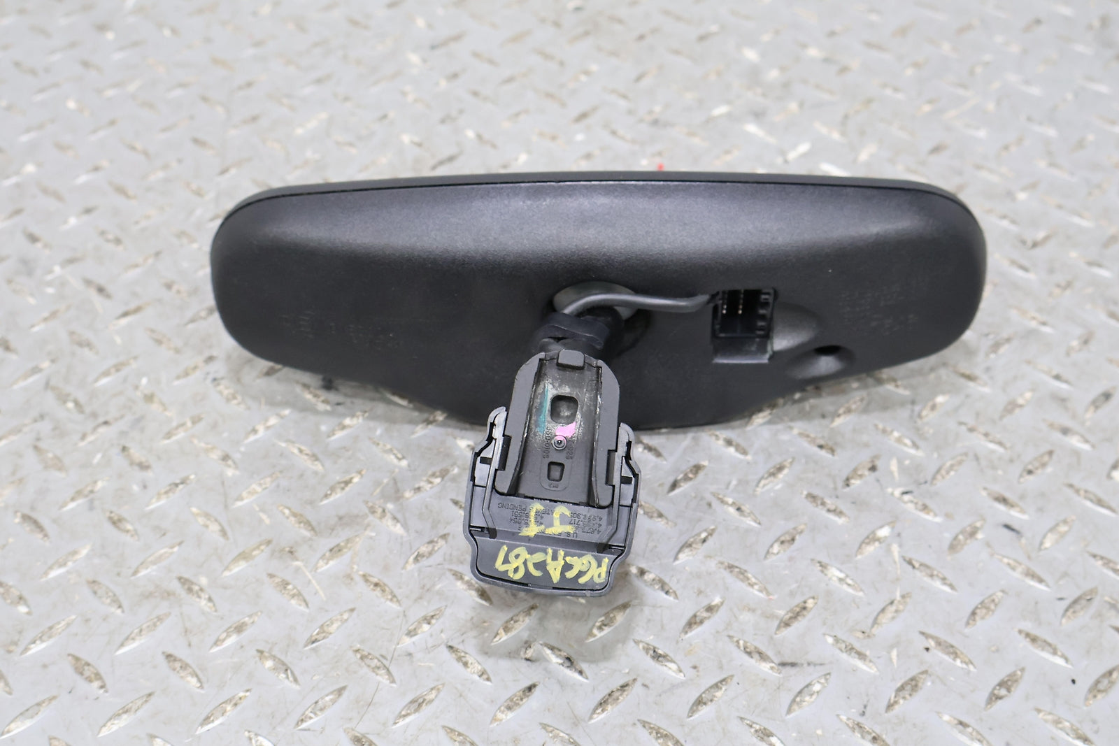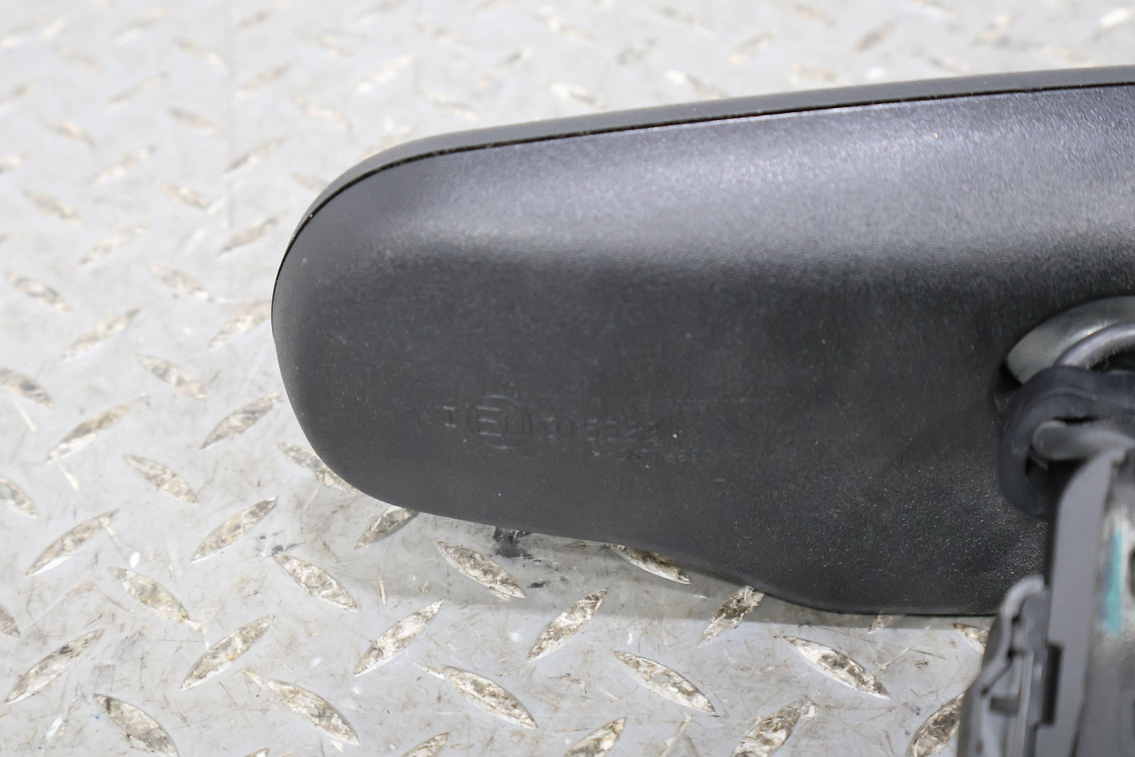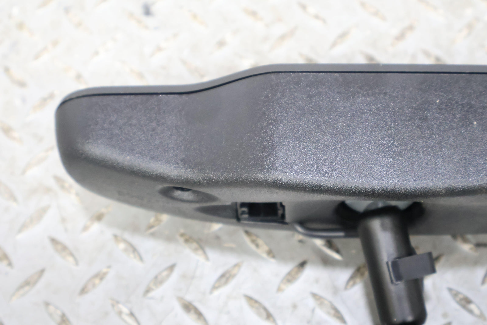 Black Textured Plastic Frame, Clear Mirror Glass, Clean Button Lettering, Mounted Solid, Functions Properly