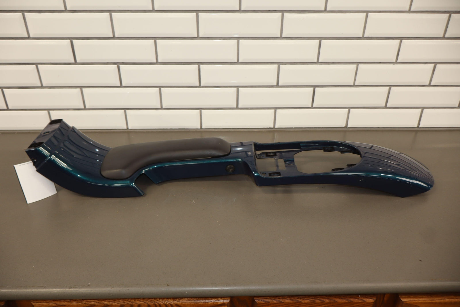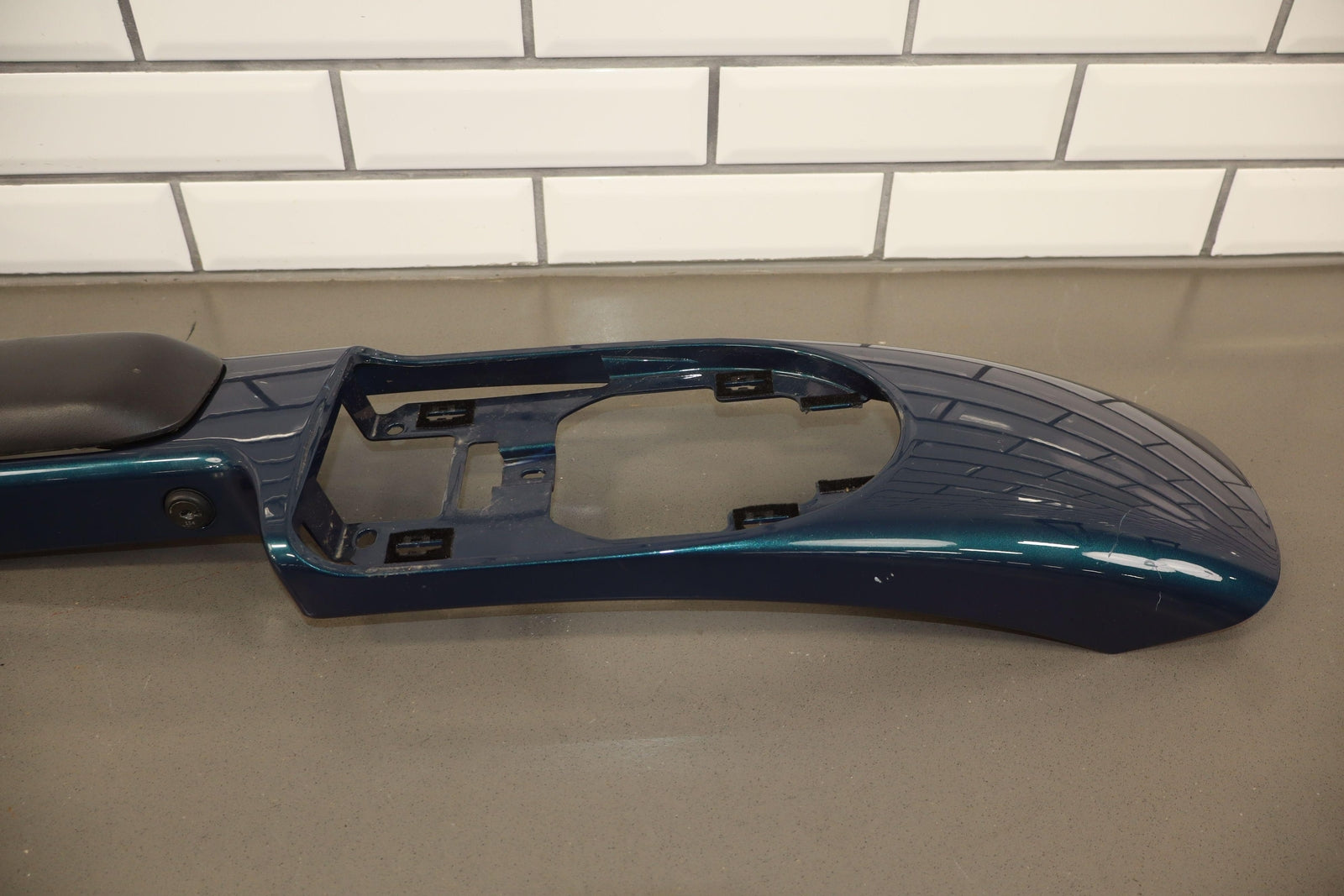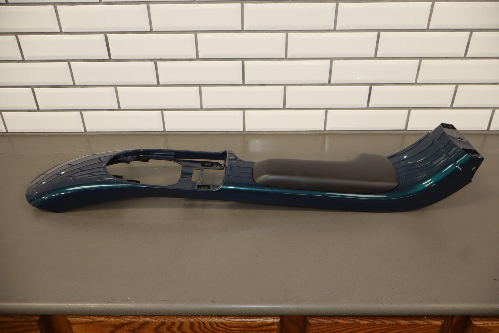 Floor Console, Aqua Blur Metallic (26u), Includes Waterfall Trim-console Lid, Couple Decent Scratches, Lid Latch Works Properly