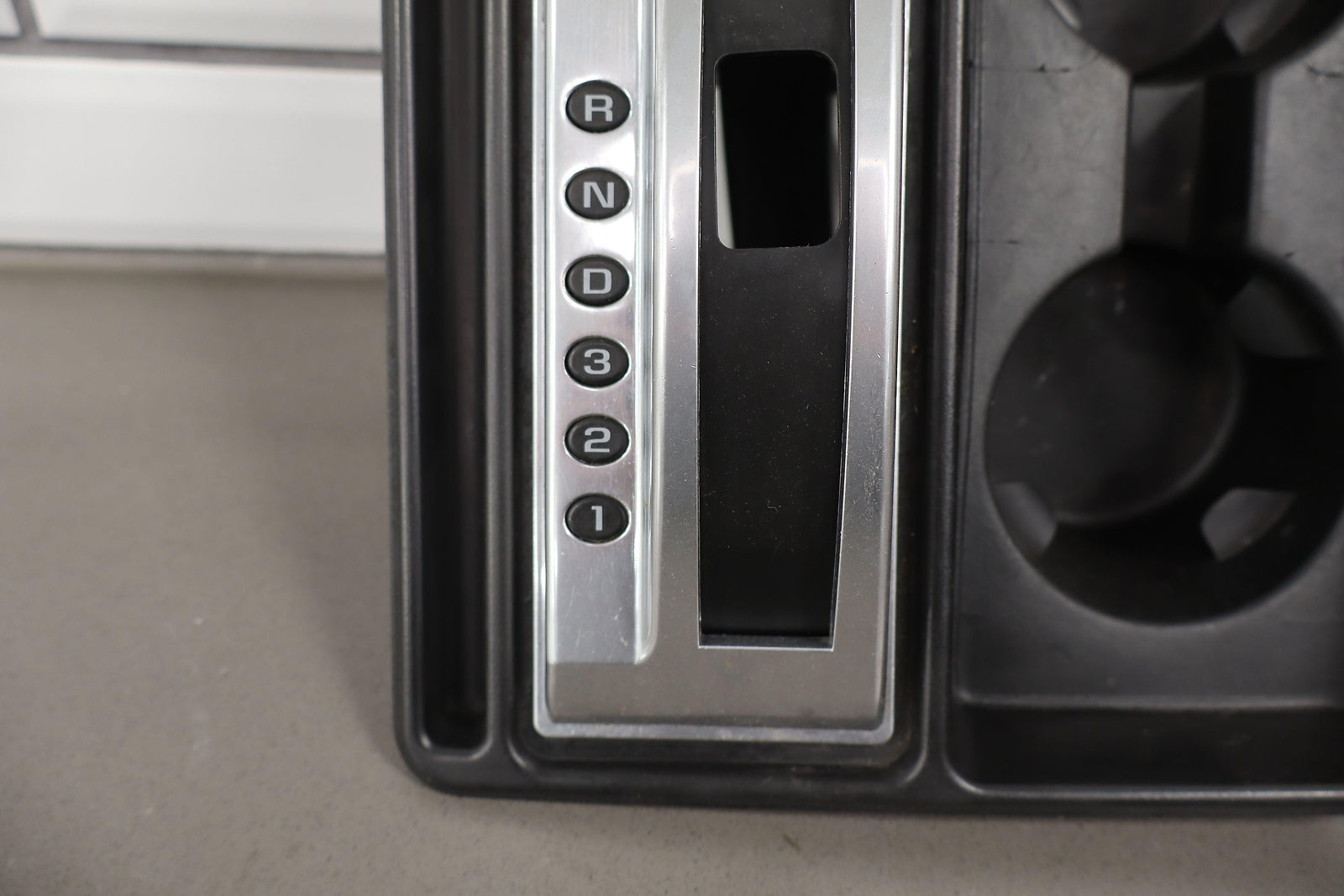 Important notes: Floor Shifter/cupholder Bezel, Black, Clean Lettering, Mnor Scratches To Chrome