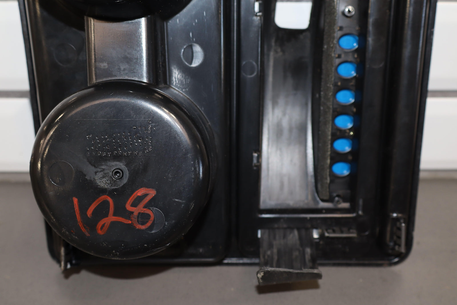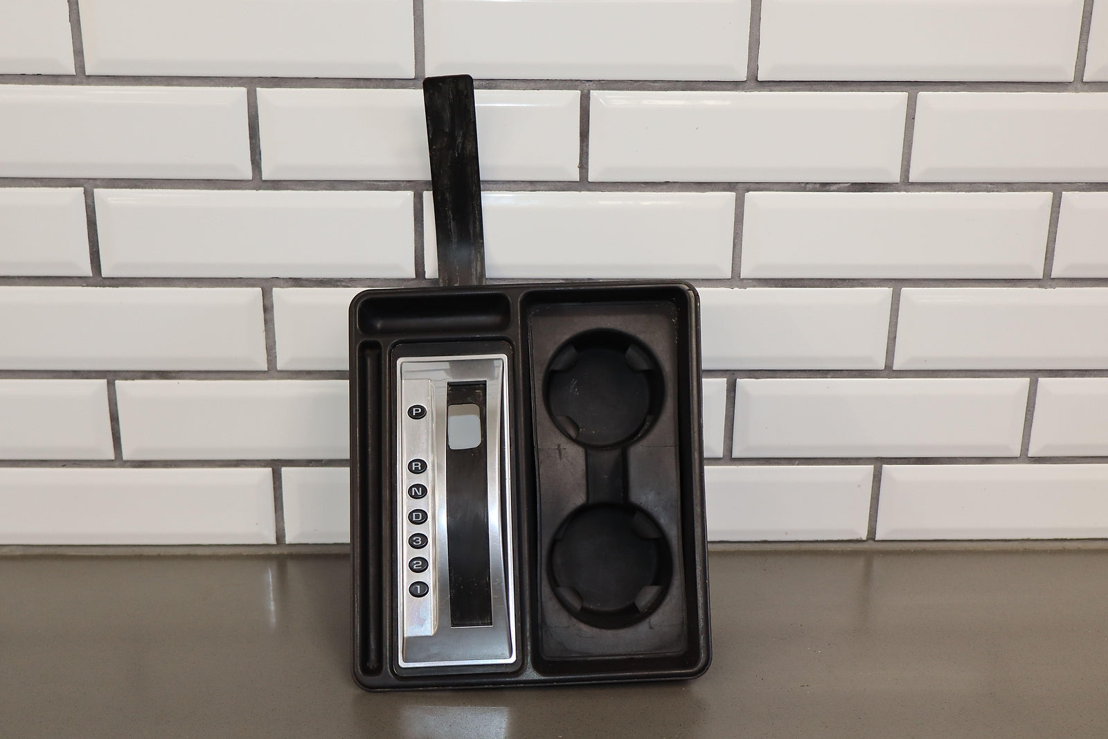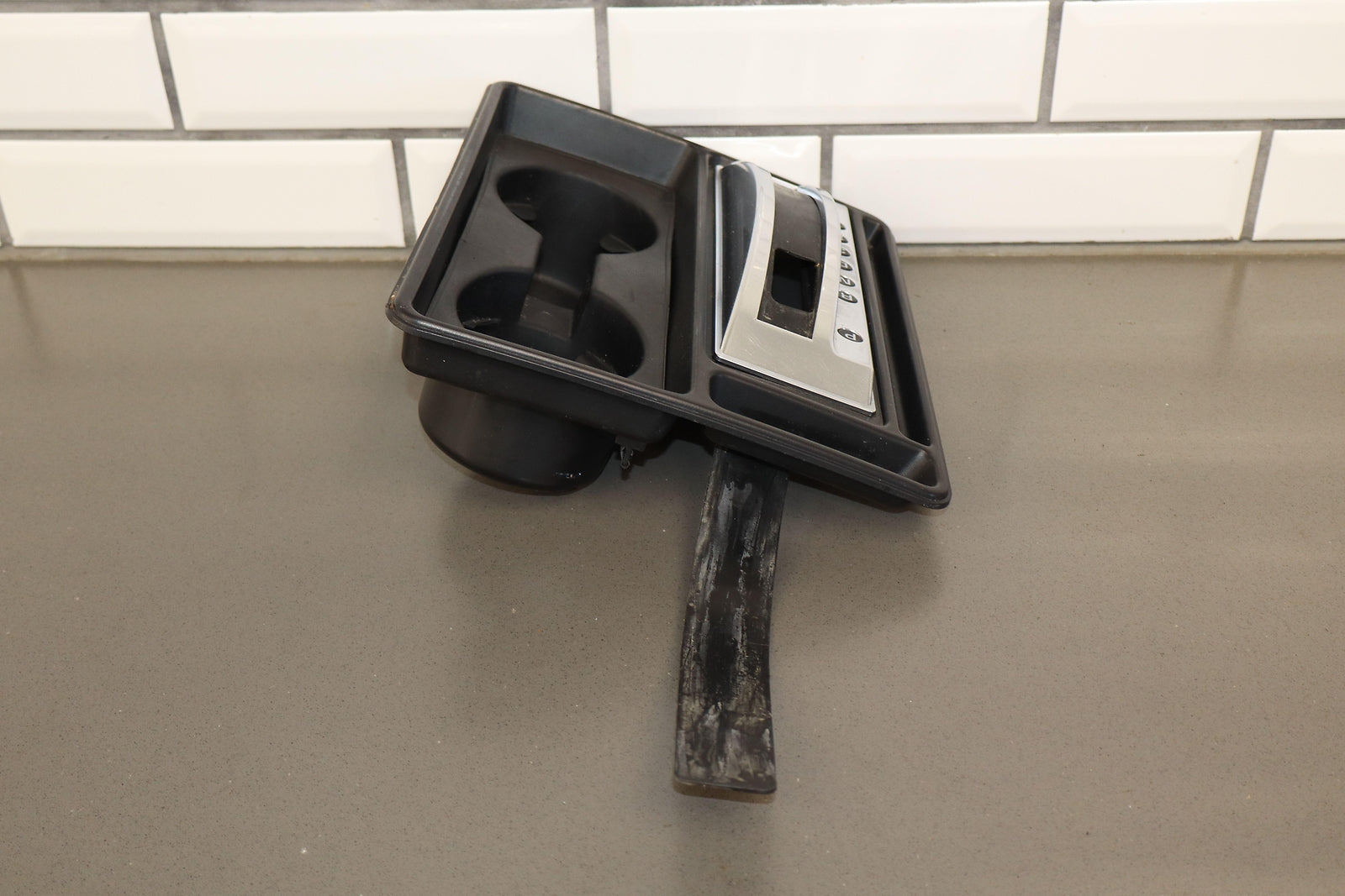 Important notes: Floor Shifter/cupholder Bezel, Black, Clean Lettering, Mild Weathering To Chrome