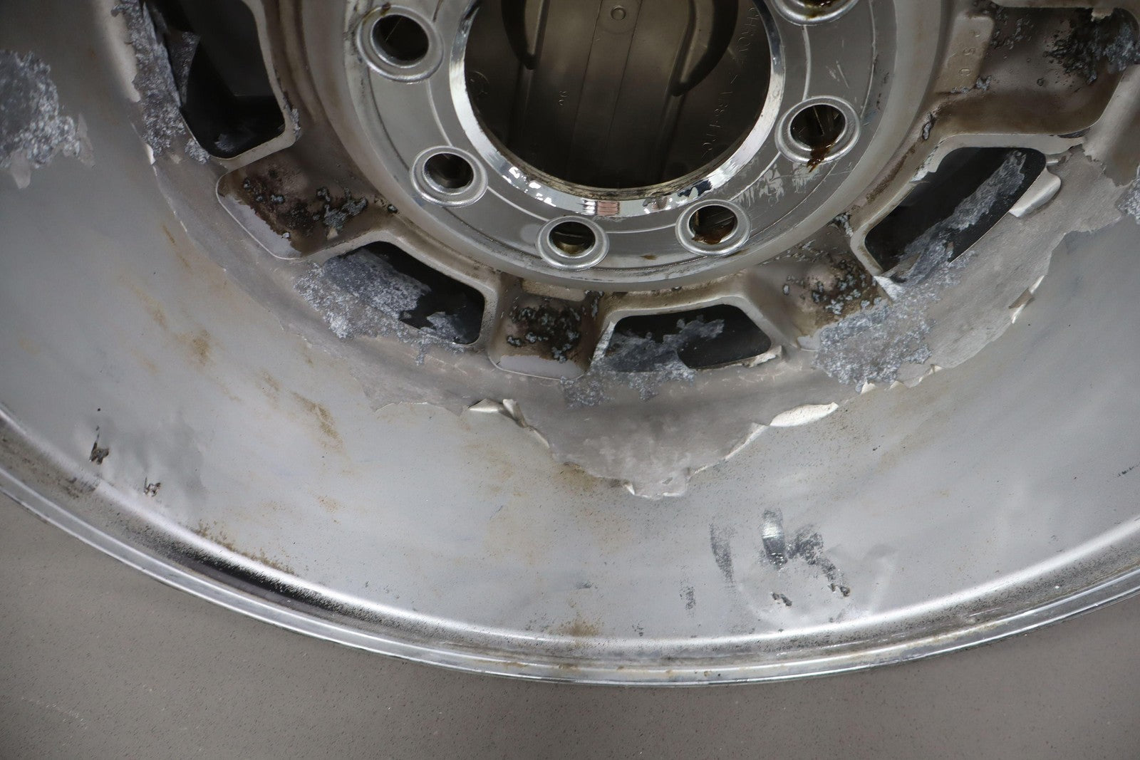 Important notes: Lh Rear, Chrome 17x8.5 7 Spoke Wheel, Includes Center Cap, Heavy Chrome Peel Throughout, Spun True