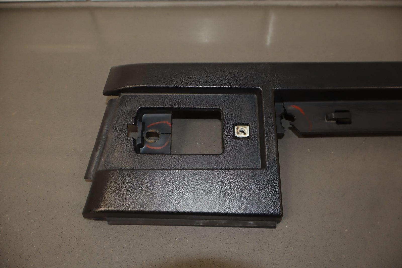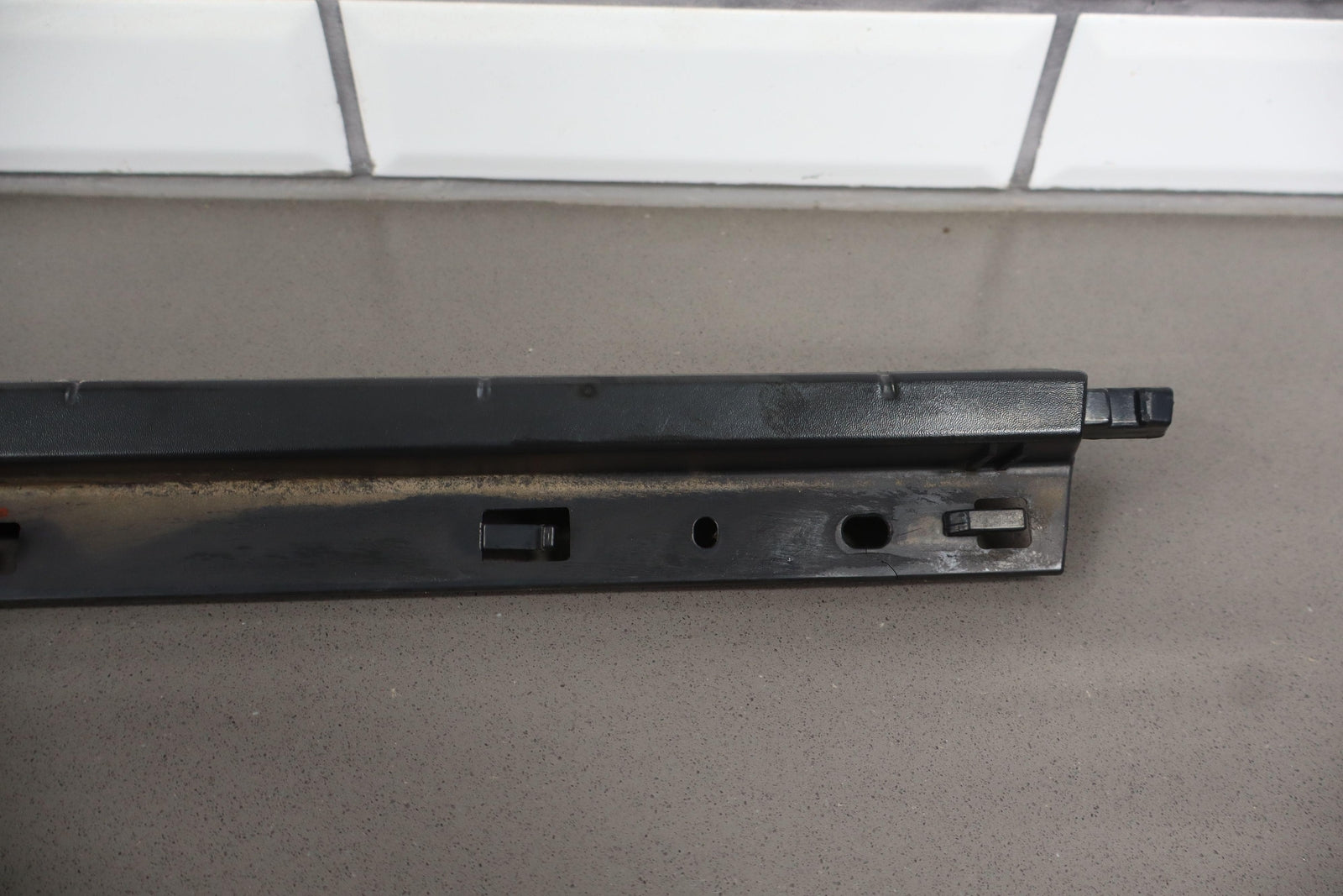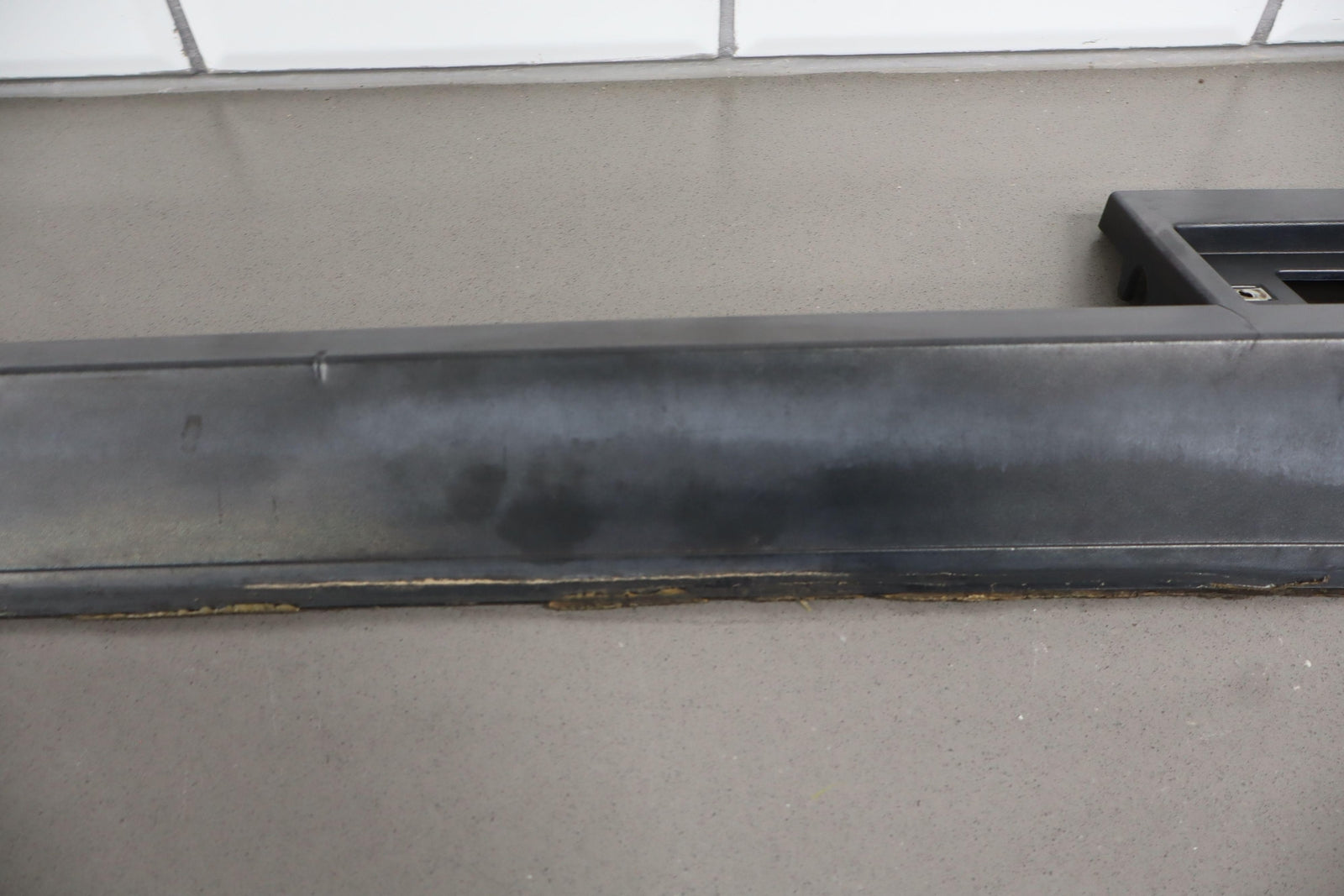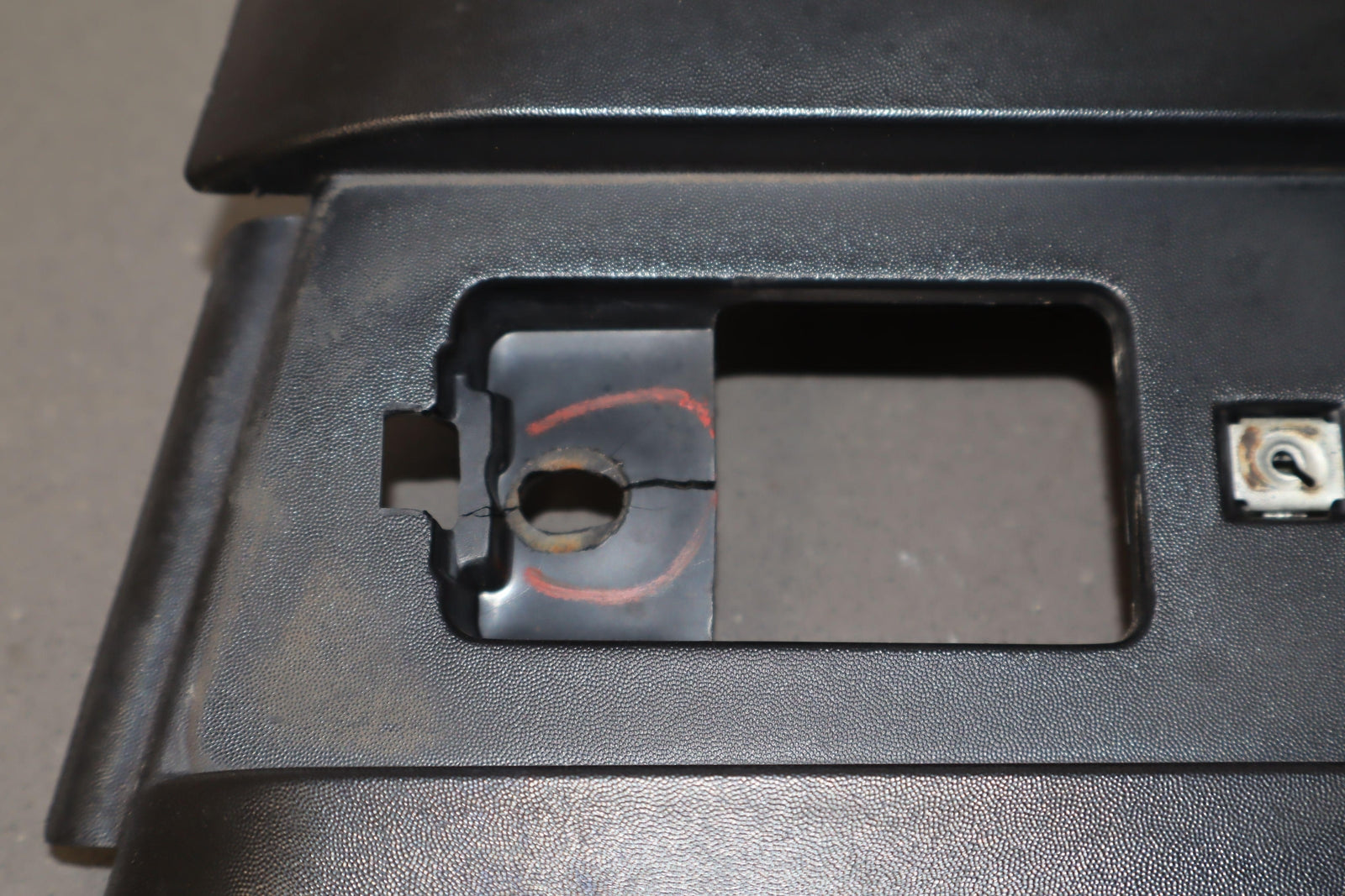 Rh Front Roof Moulding (windshield To Rear Door), Black Textured Plastic, Multiple Cracked Mounts (marked Red), Mild Sun Fade