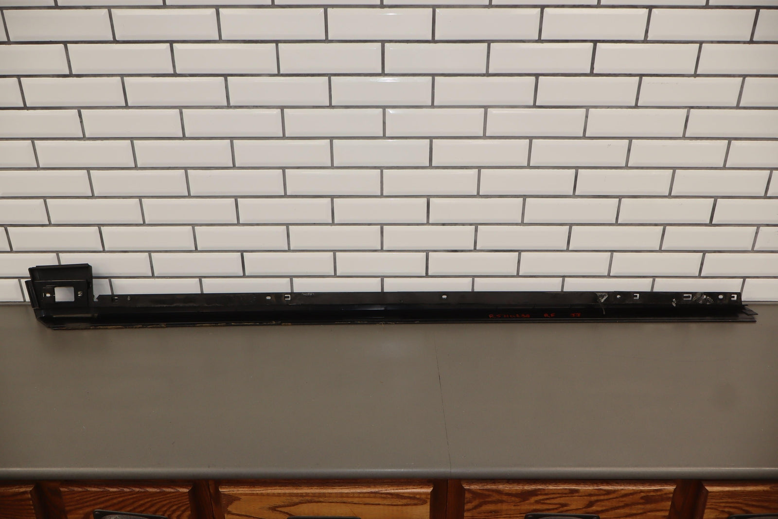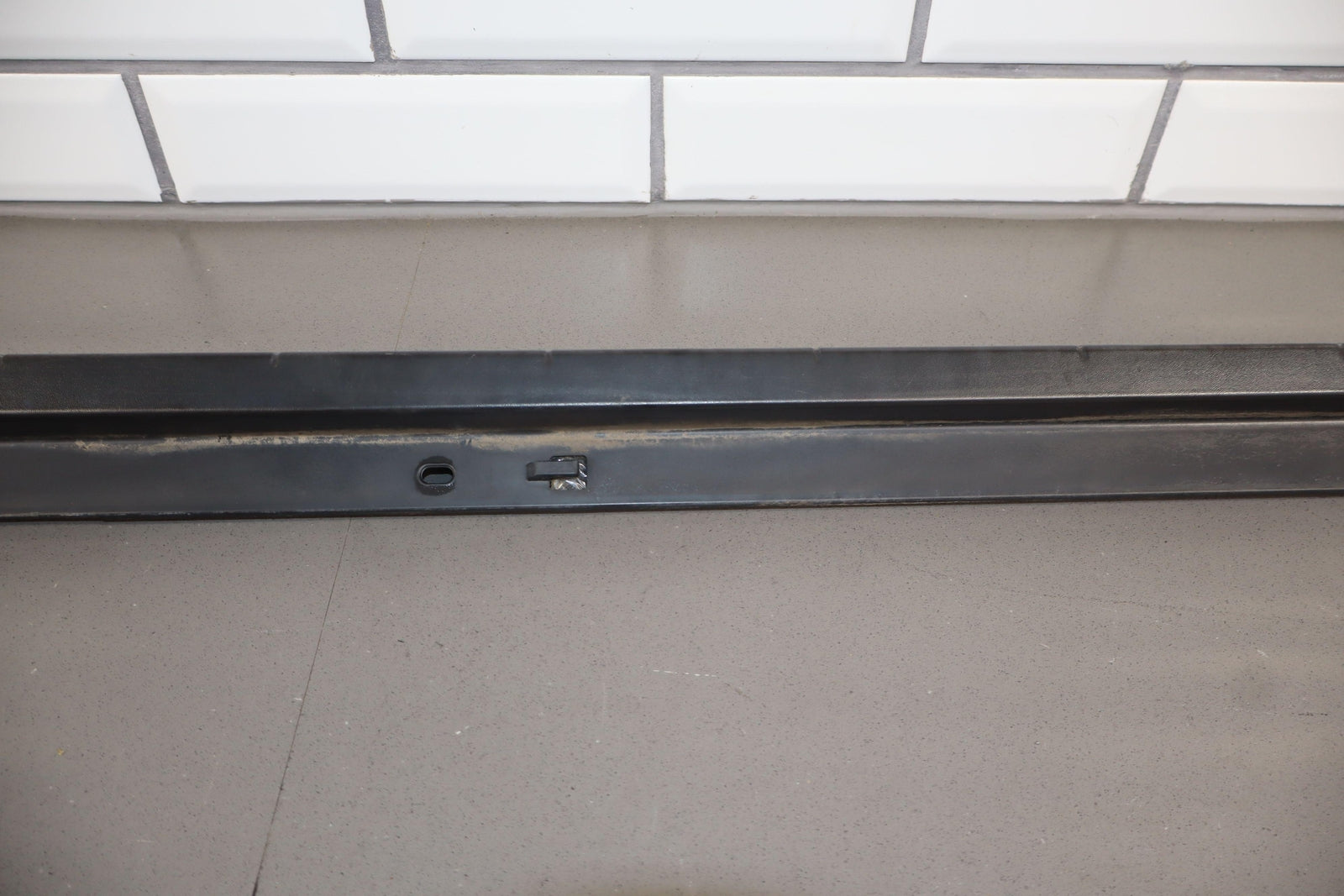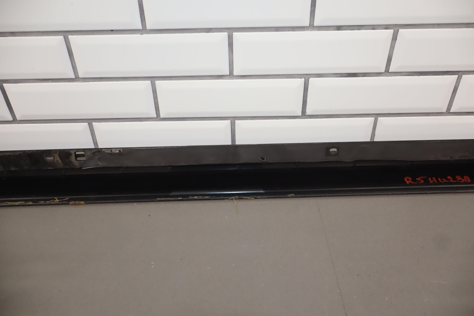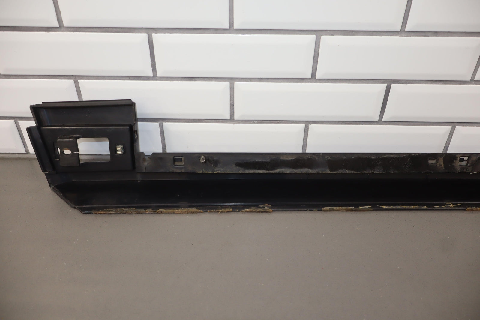 Rh Front Roof Moulding (windshield To Rear Door), Black Textured Plastic, Multiple Cracked Mounts (marked Red), Mild Sun Fade