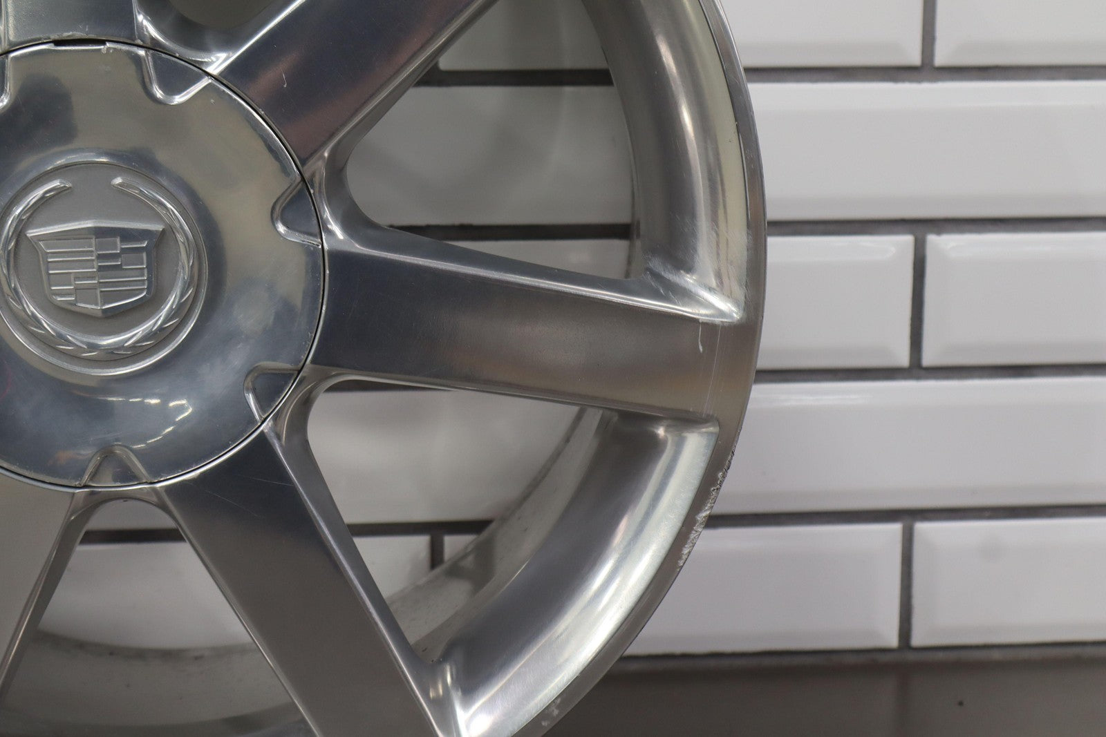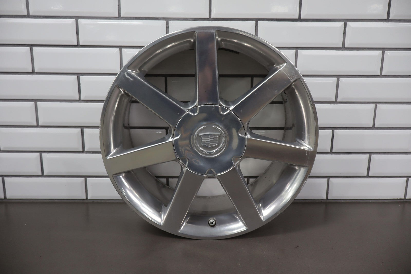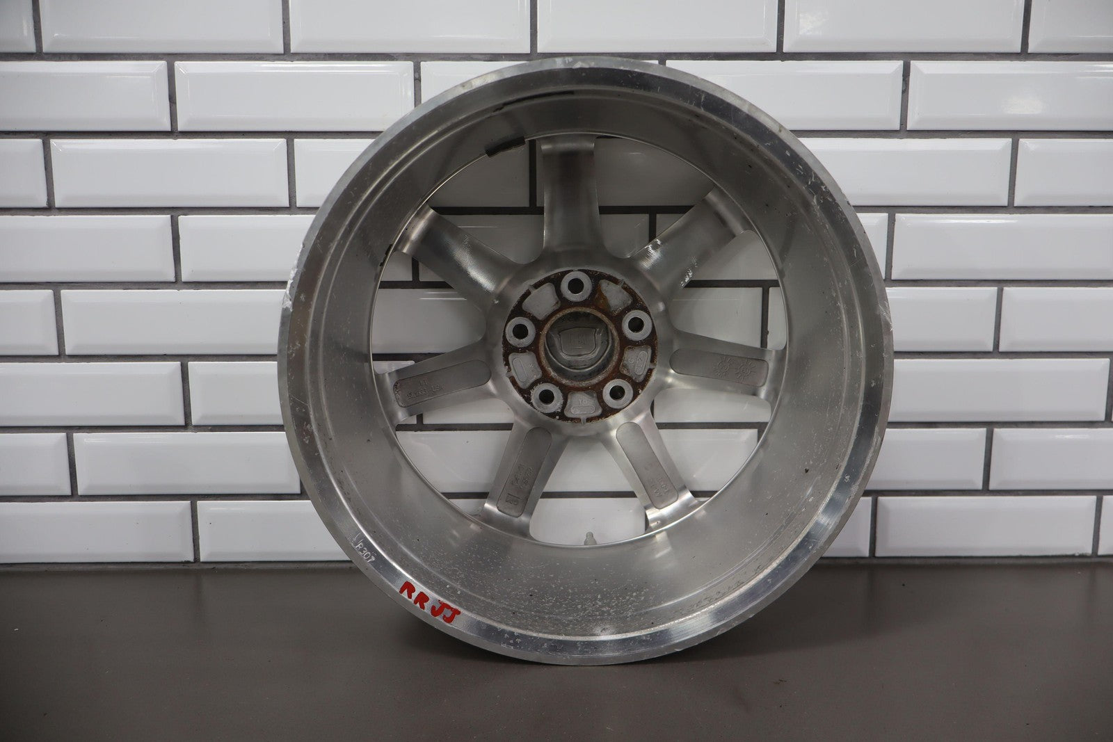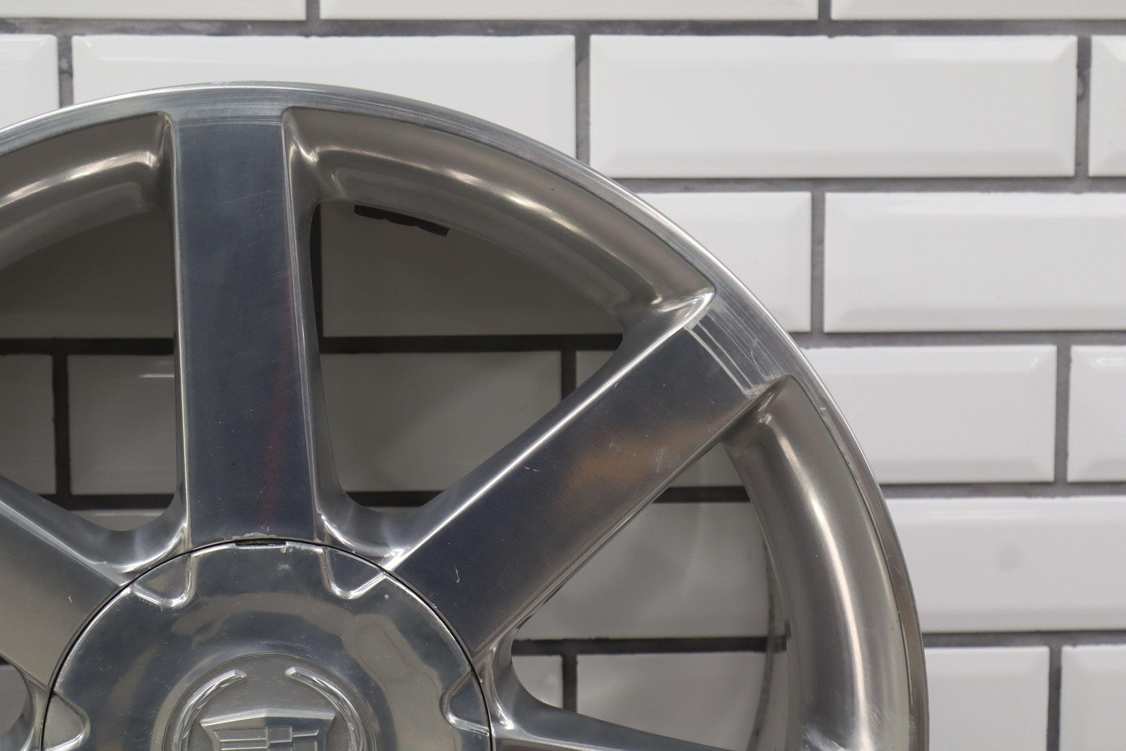 Rh Rear, 18x8 7 Spoke Polished Wheel (opt Qf8), Includes Center Cap, Decent Curb Rash, Mid Scuffs/scratches, Spun True